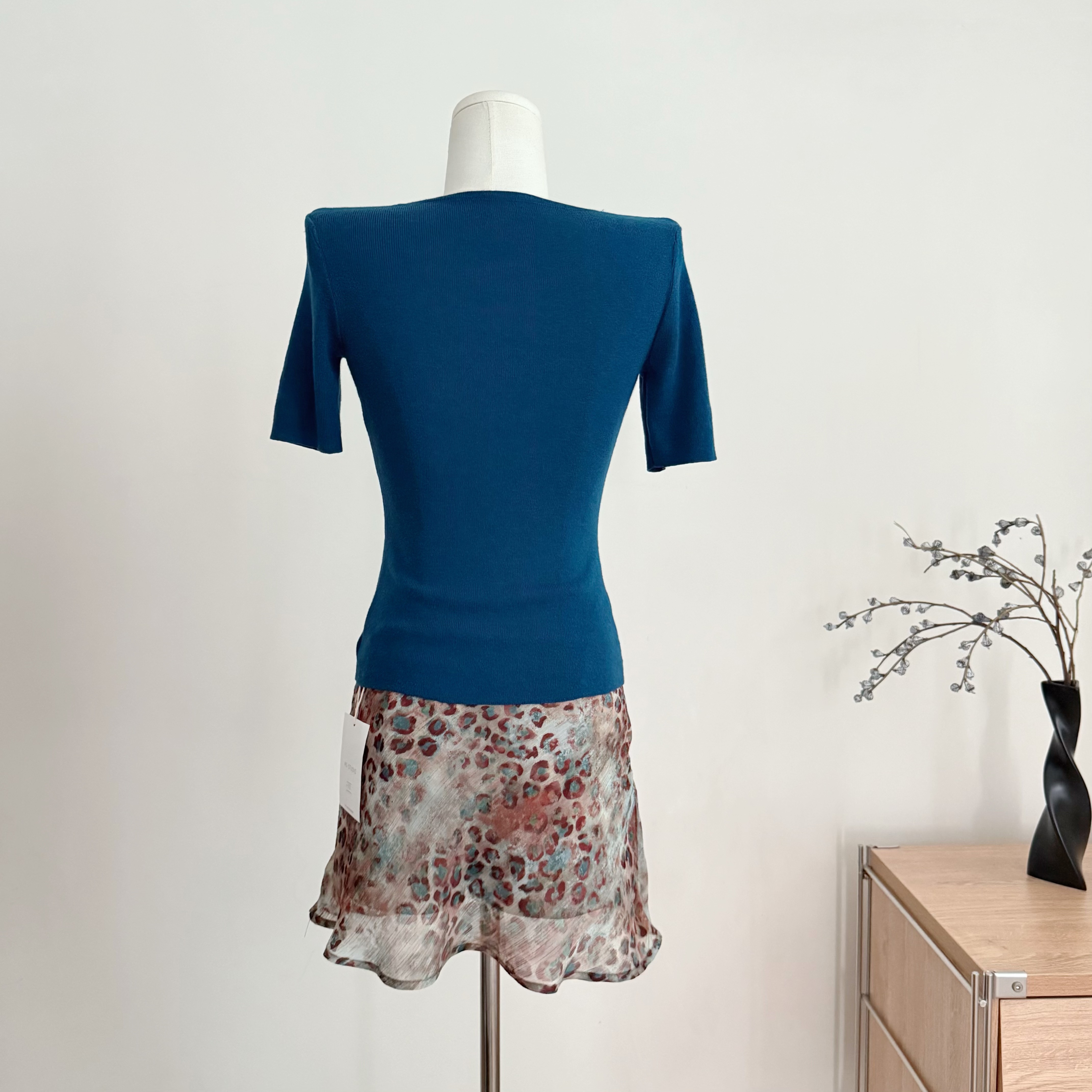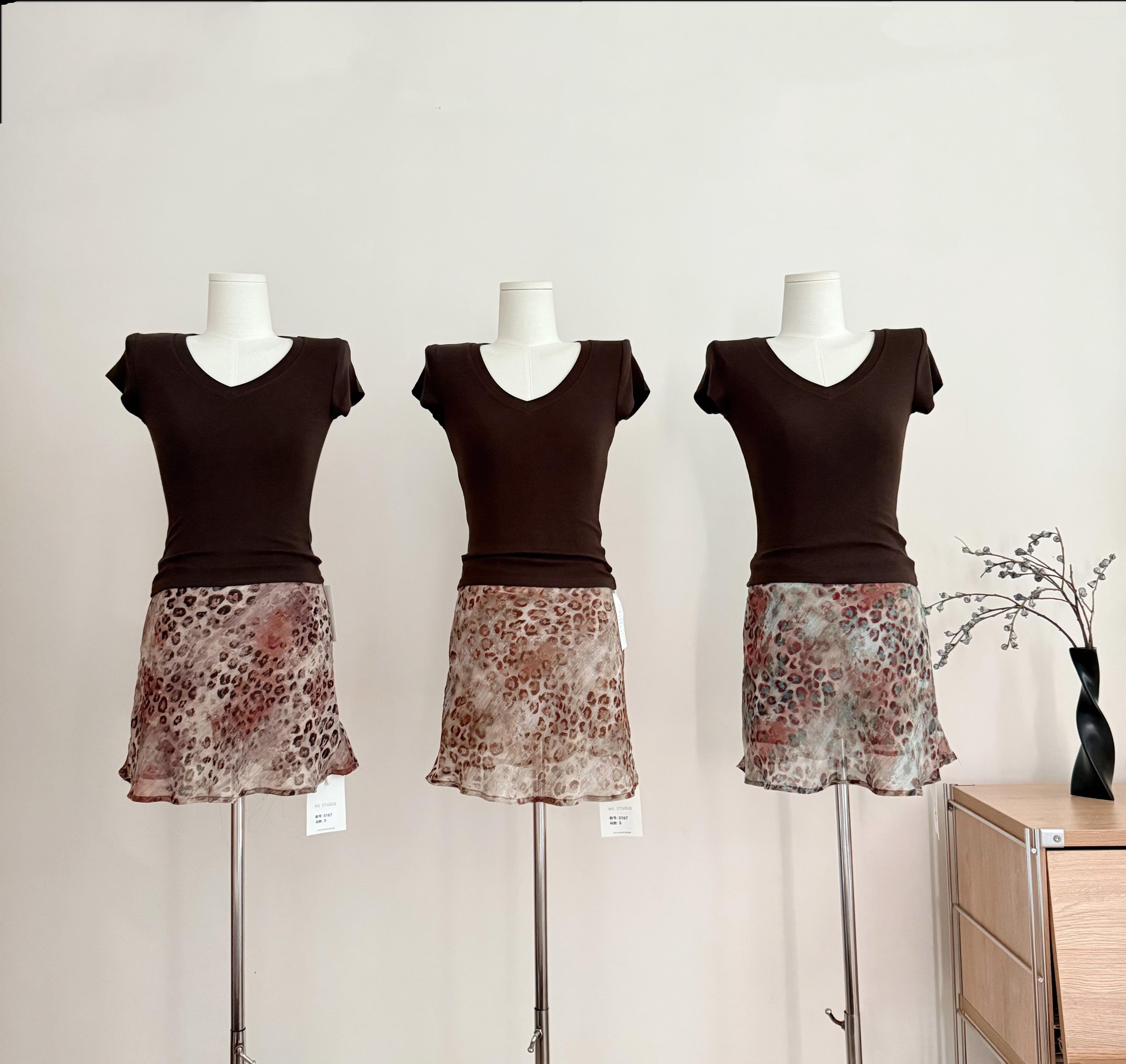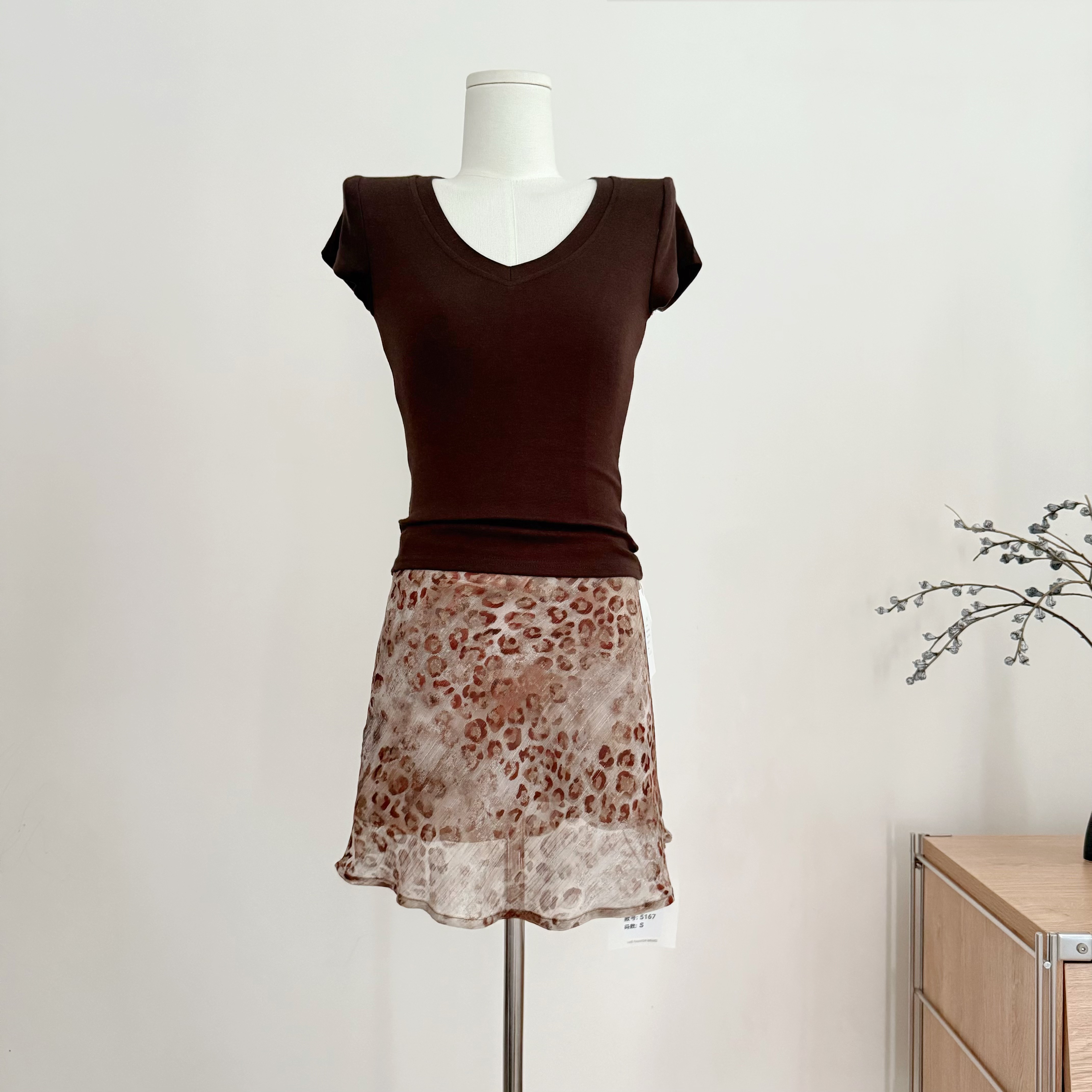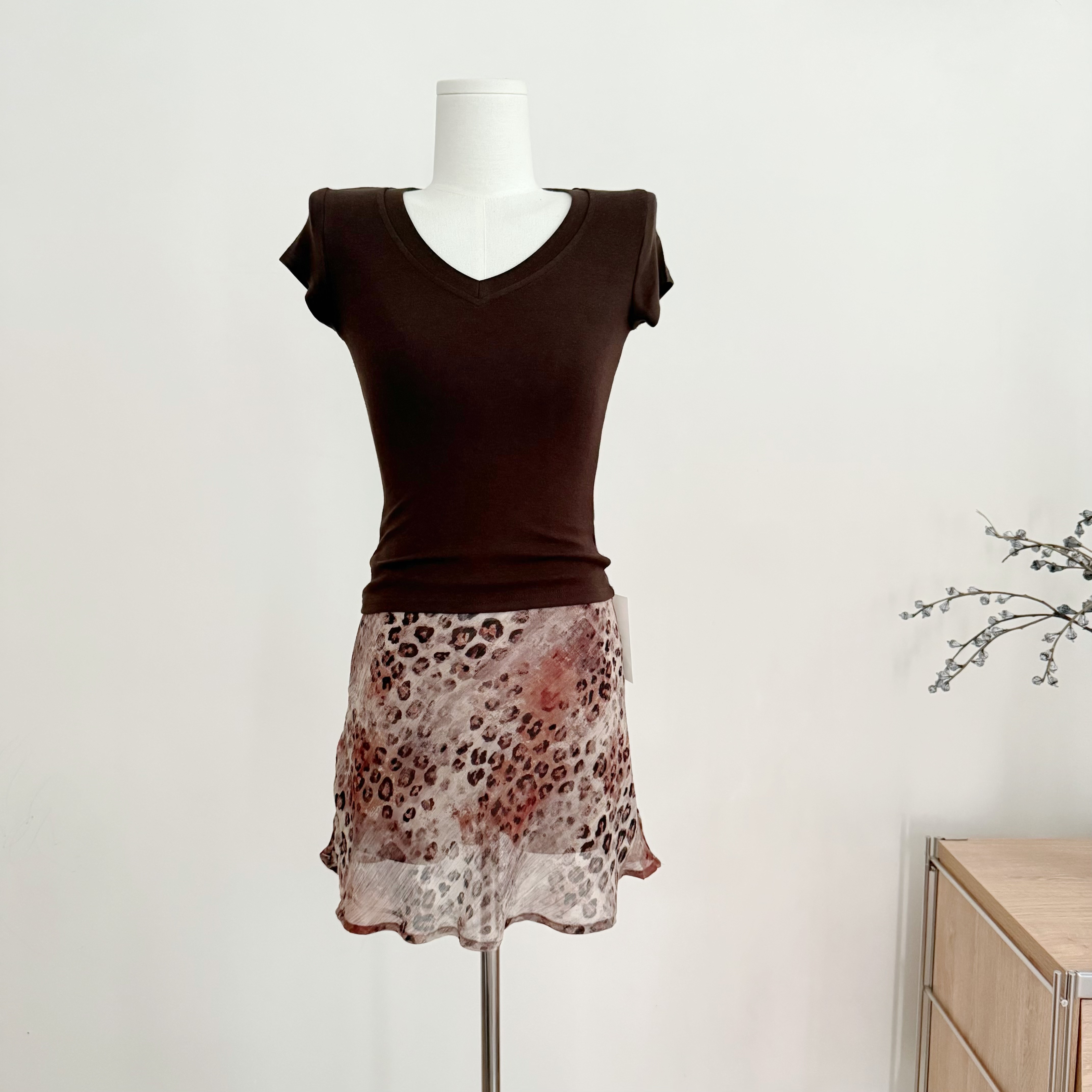 흔들어서 톤 pp 종이 사람들 다용도 세련된 라운드 넥 몸매 가꾸기 쇼트 스타일 티셔츠 펌프 로프 반신 치마 세트