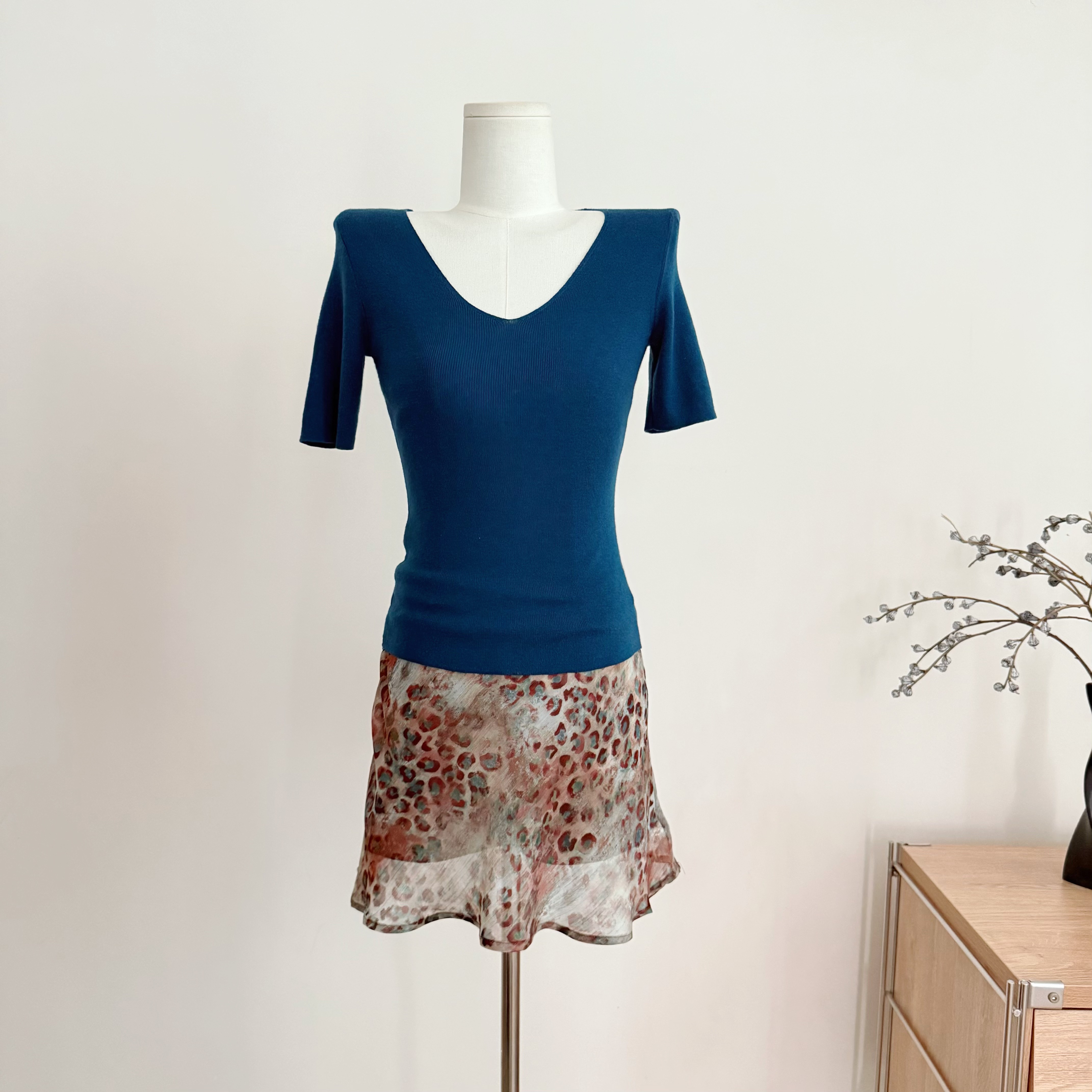샤오홍 예약하기 다우 시시 맞춤 허리 선 살인자 V넥 긍정적 인 어깨 몸매 가꾸기 슬림해 보이는 다용도 신축성 반팔 티셔츠