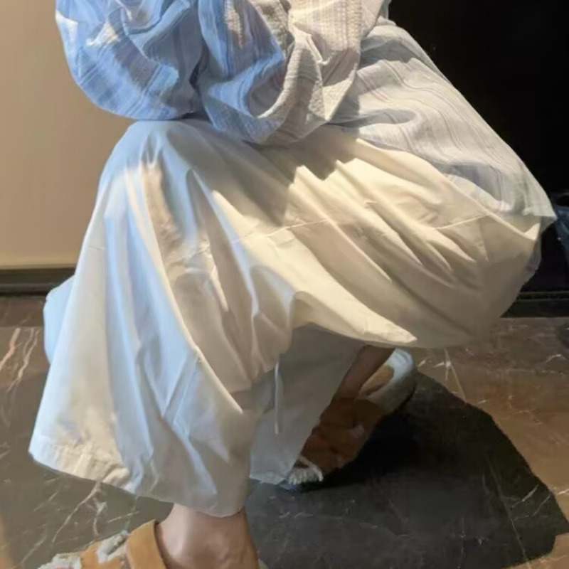화이트 주간 실크 허리밴드 워크웨어 캐주얼 바지 여성 2026 여름 새로운 고급 질감 루즈핏 도루 센스 와이드 레그 팬츠