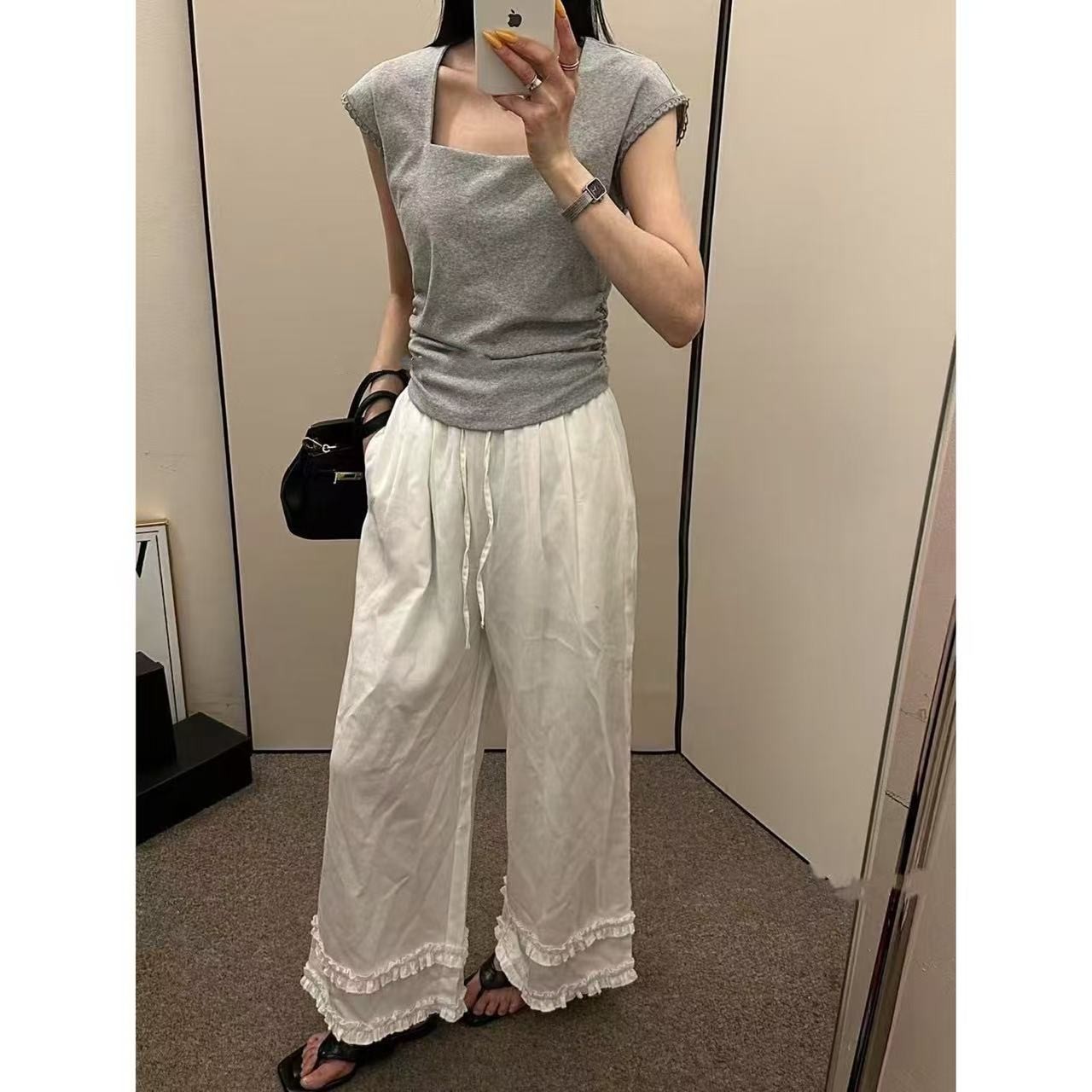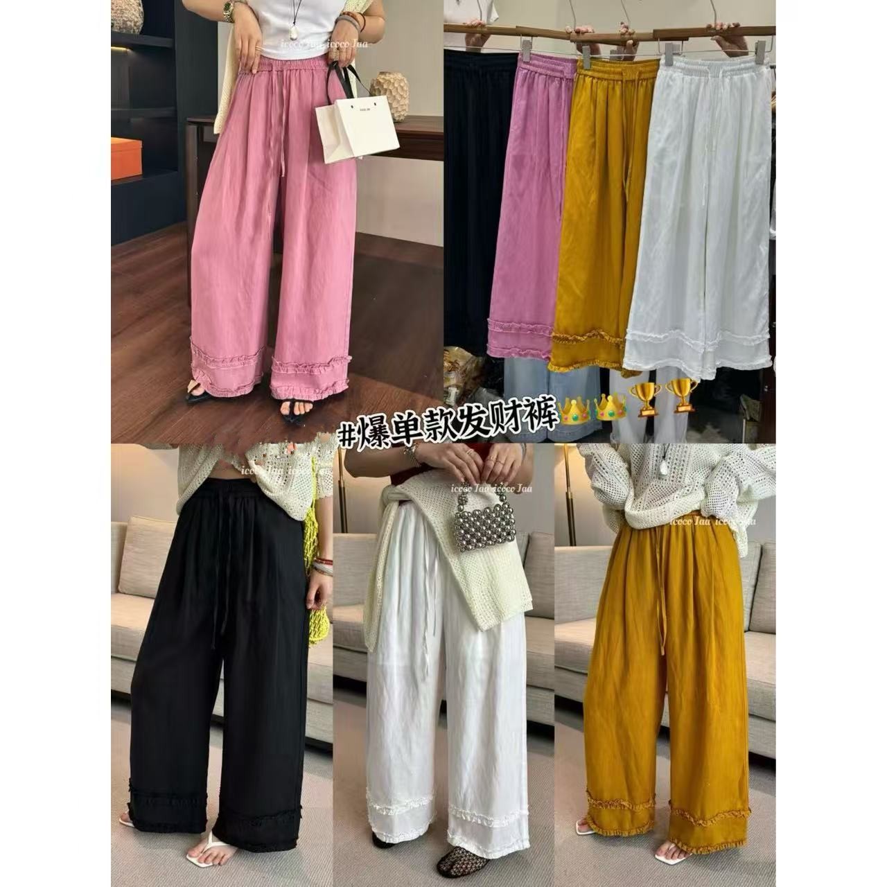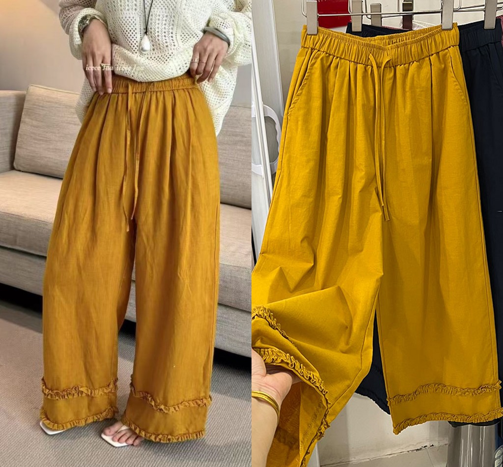 프릴 방귀 커튼 캐주얼 바지 여성 2026 여름 조거 둘 착용 달콤함 풍선 바지 작은 키 넓은 다리 길이 바지