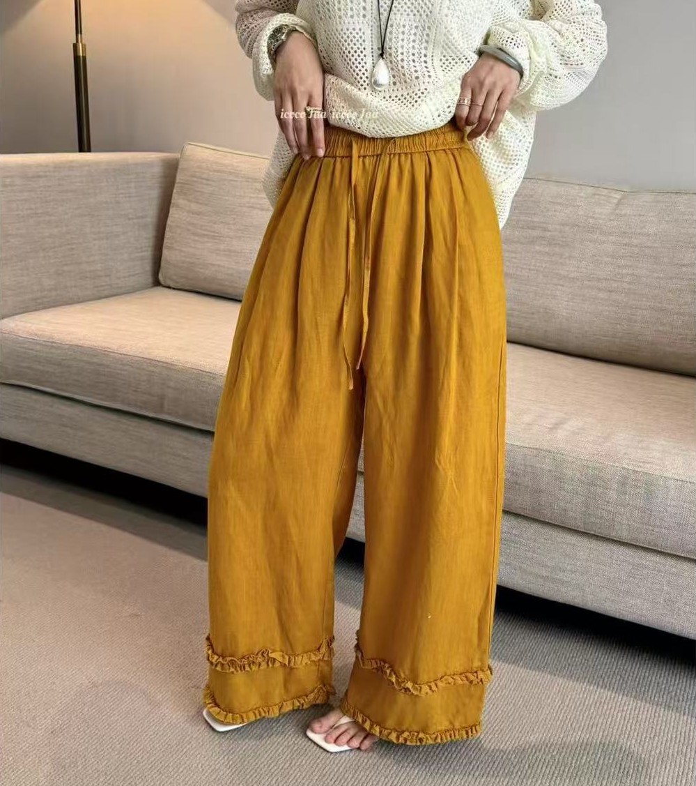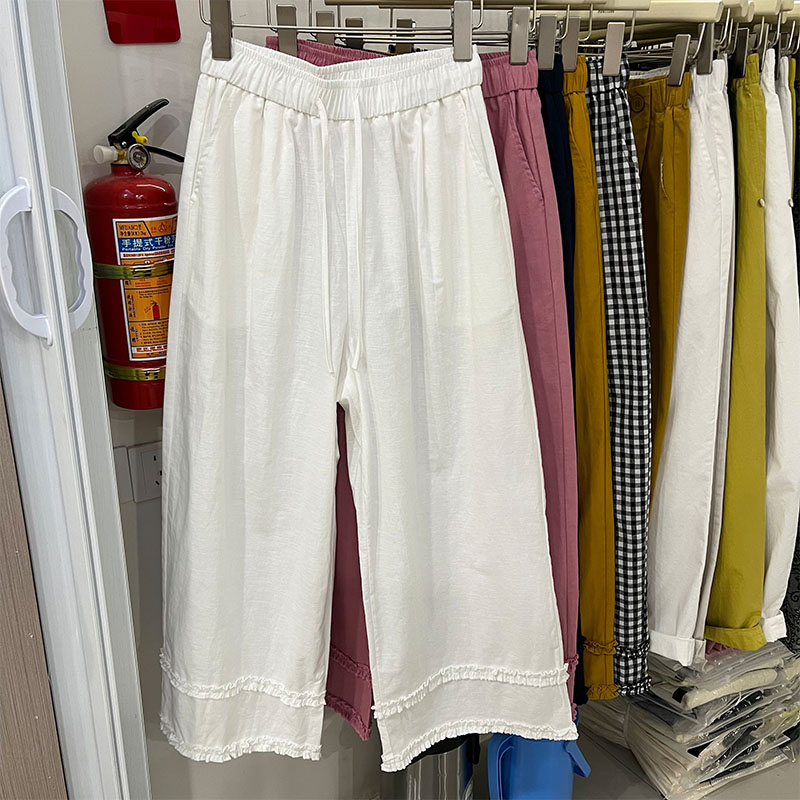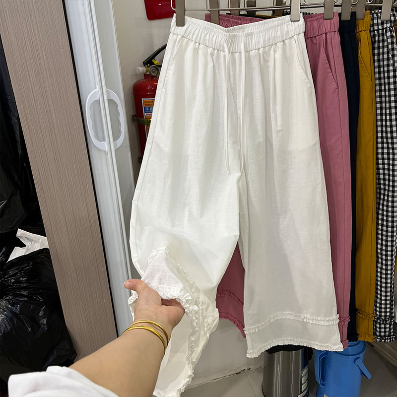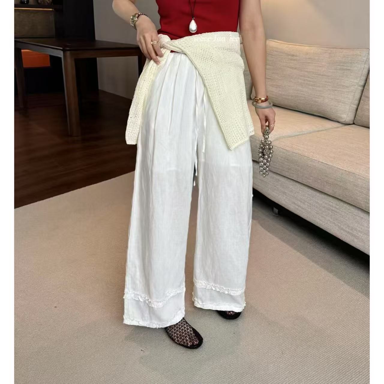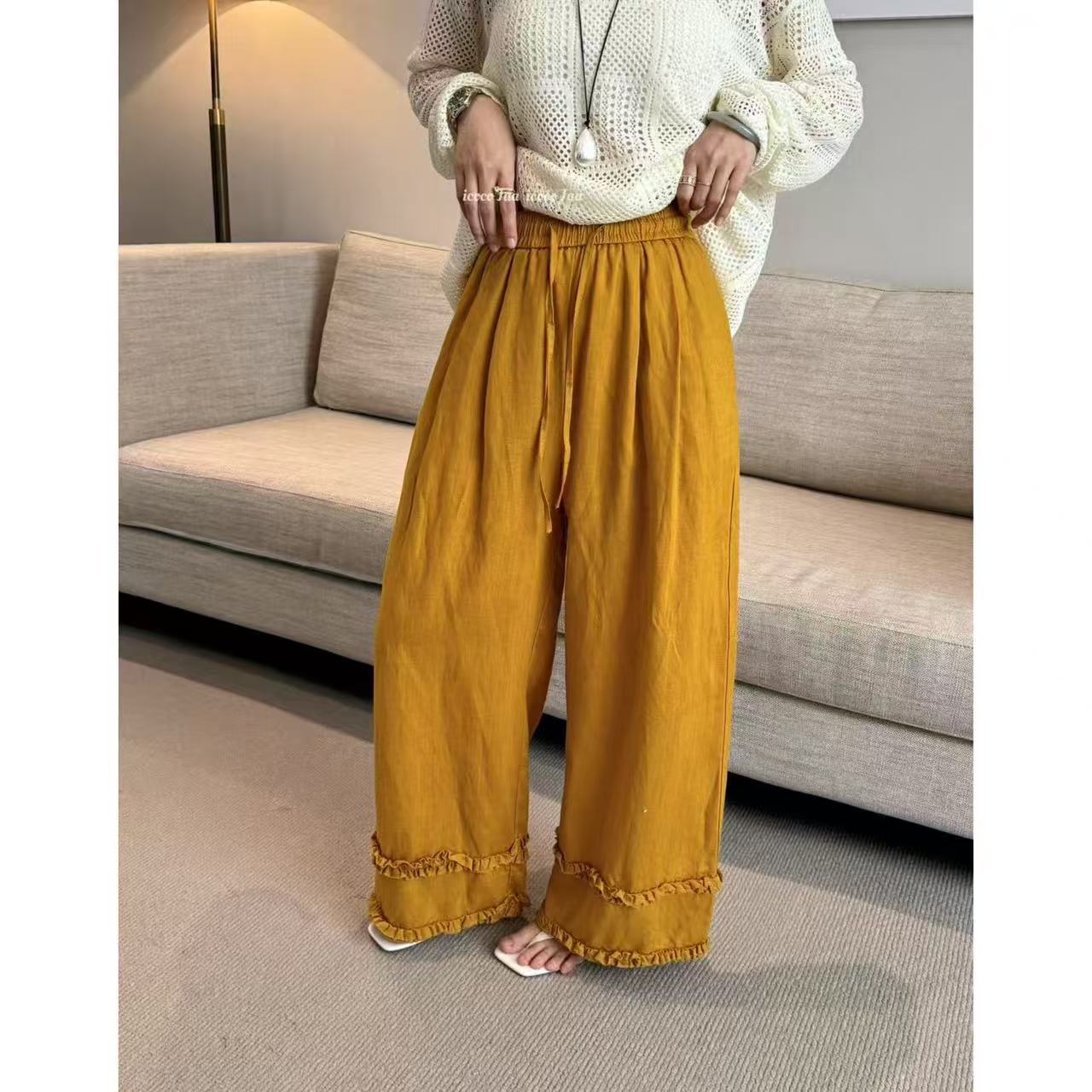 오래된 돈 바람 느긋한 마 재료 화이트 바지 여름 얇은 루즈핏 캐주얼 면 린넨 리 아마 센스 얼음 실크 와이드 레그 팬츠