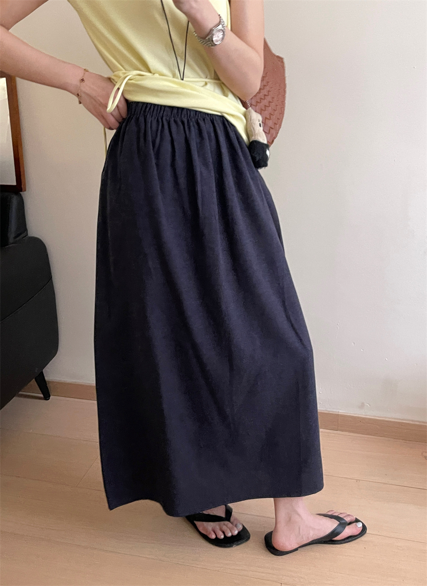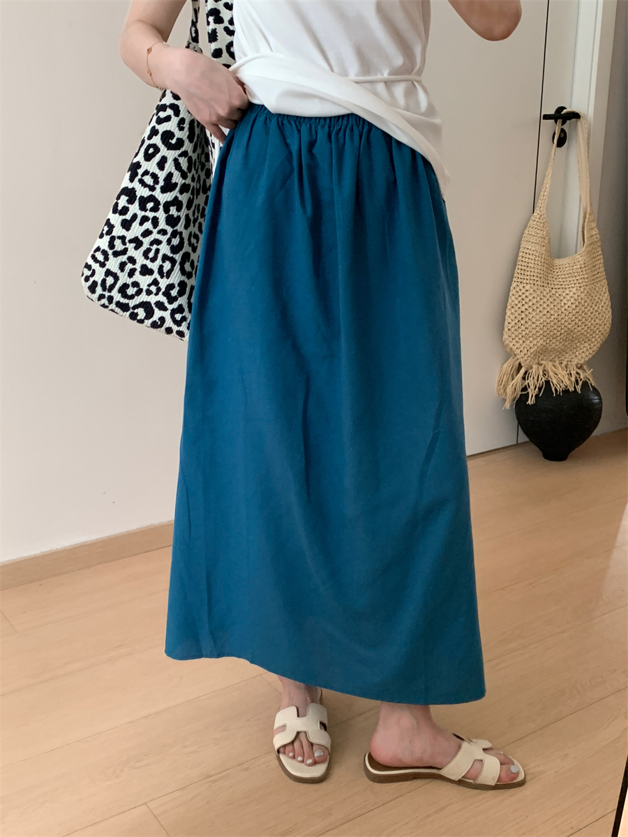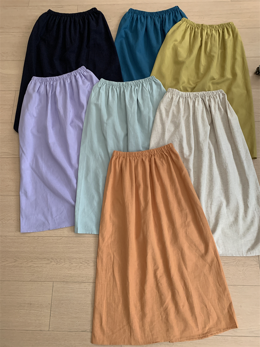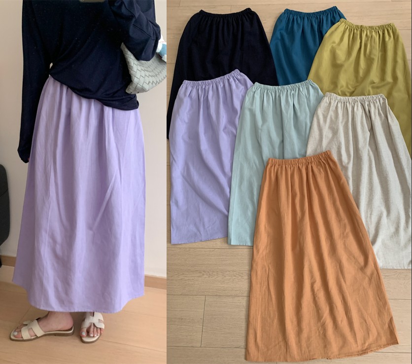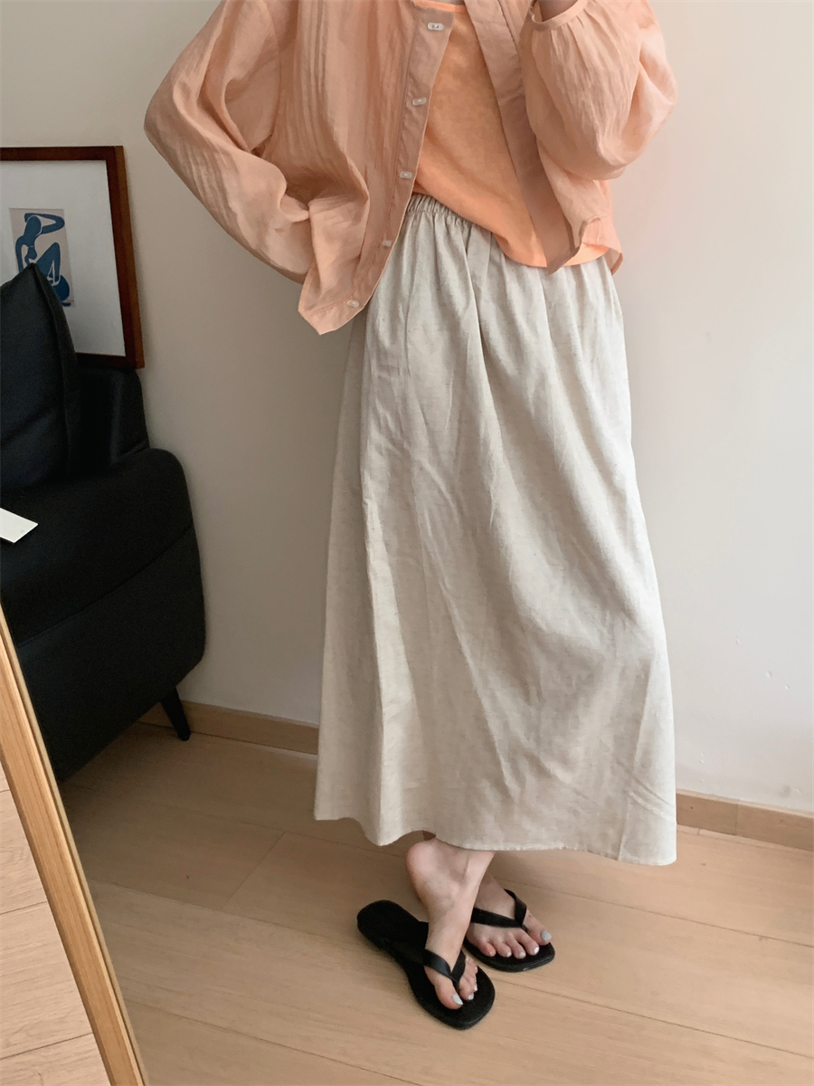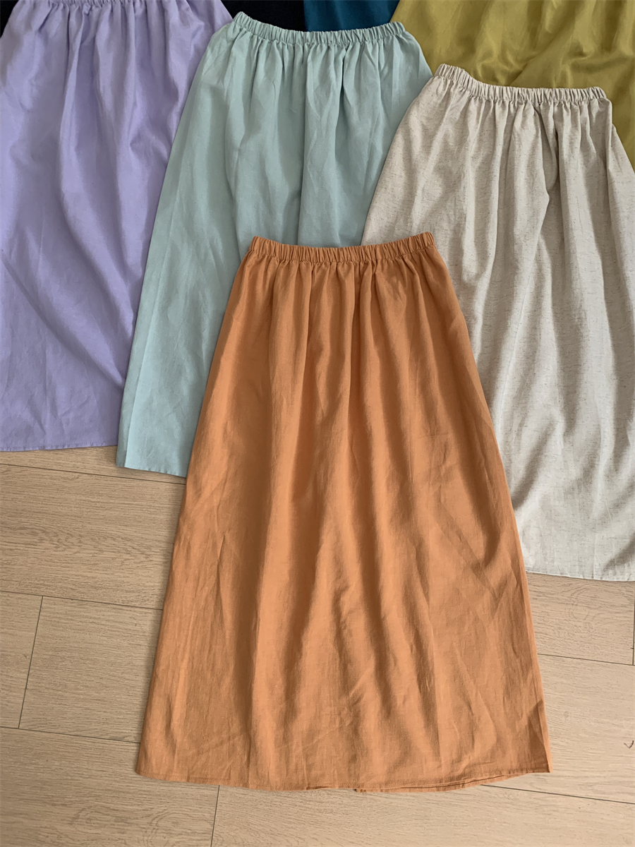 패션 캐주얼 단색 다용도 아마 반신 스커트 여성 여름 허리밴드 슬림해 보이는 롱 코트 루즈핏 A라인 스커트