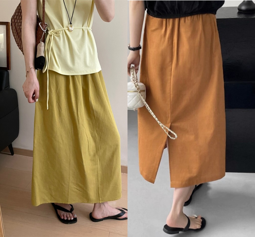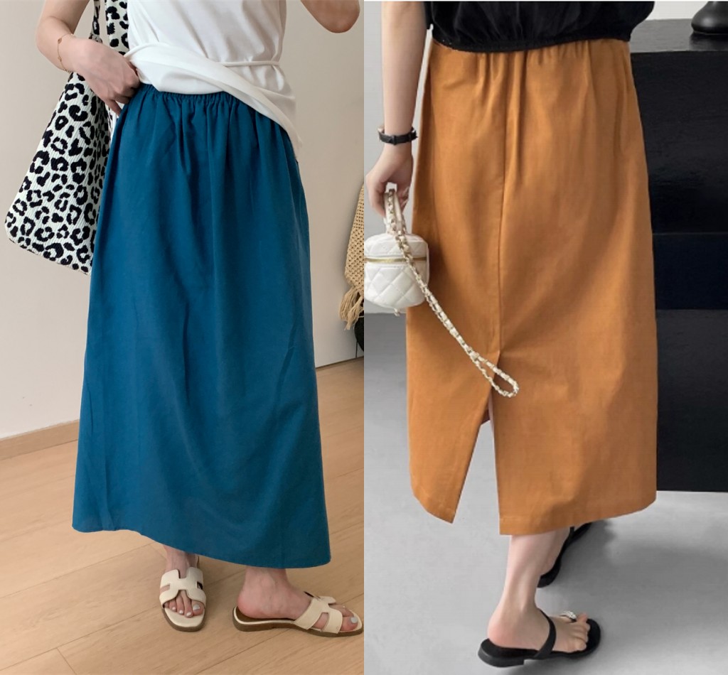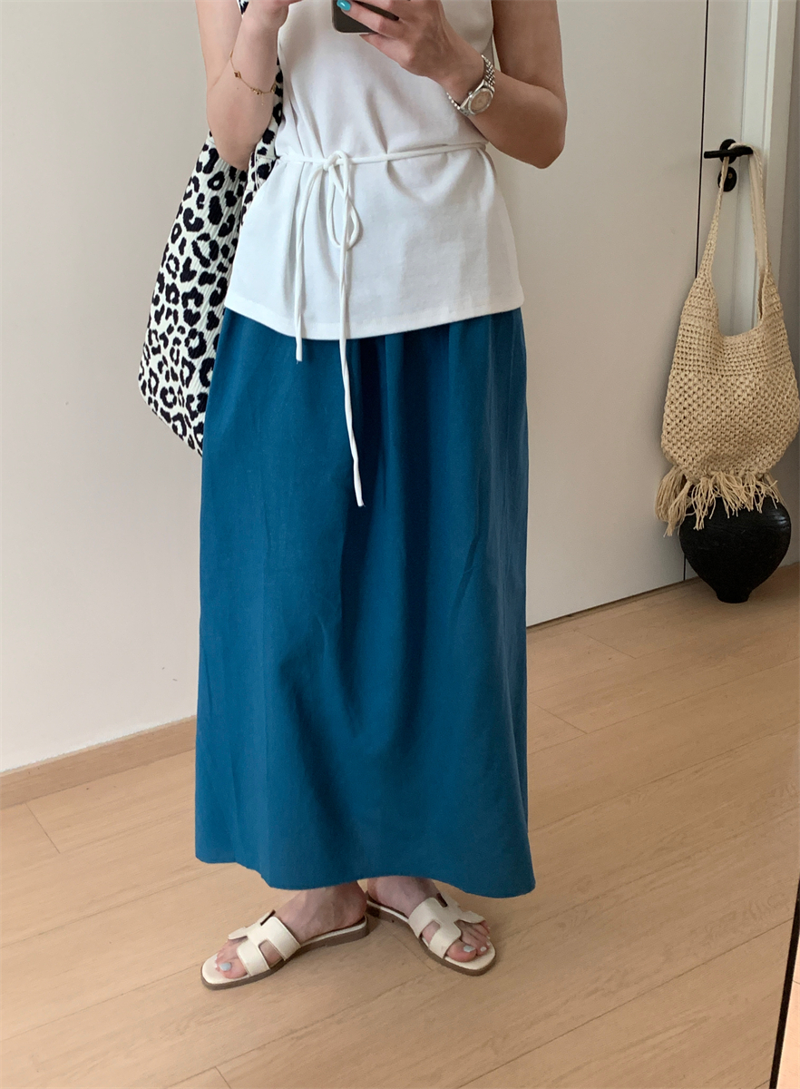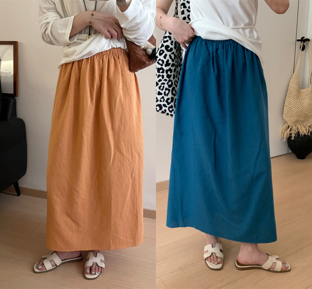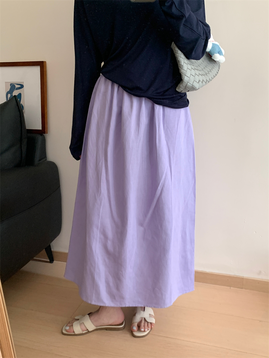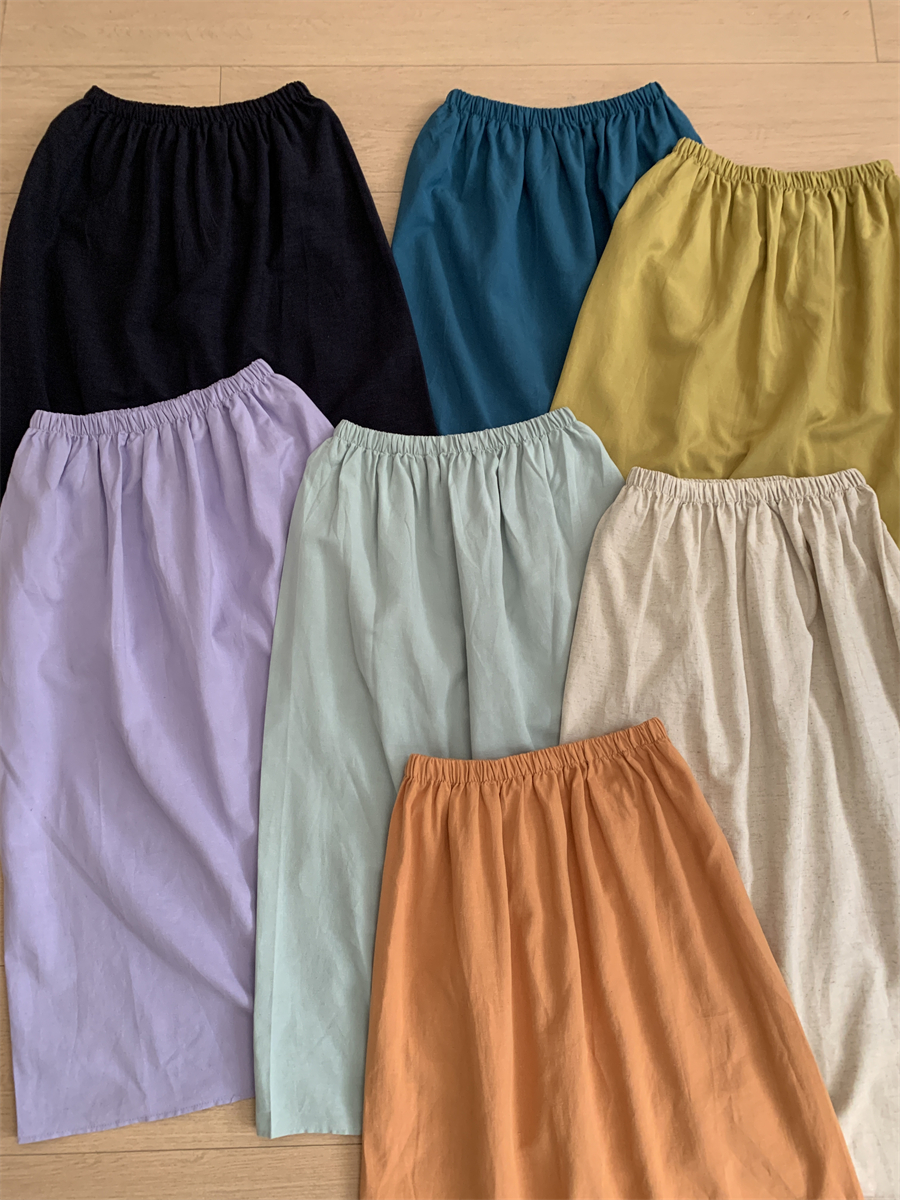 패션 캐주얼 단색 다용도 아마 반신 스커트 여성 여름 허리밴드 슬림해 보이는 롱 코트 루즈핏 A라인 스커트