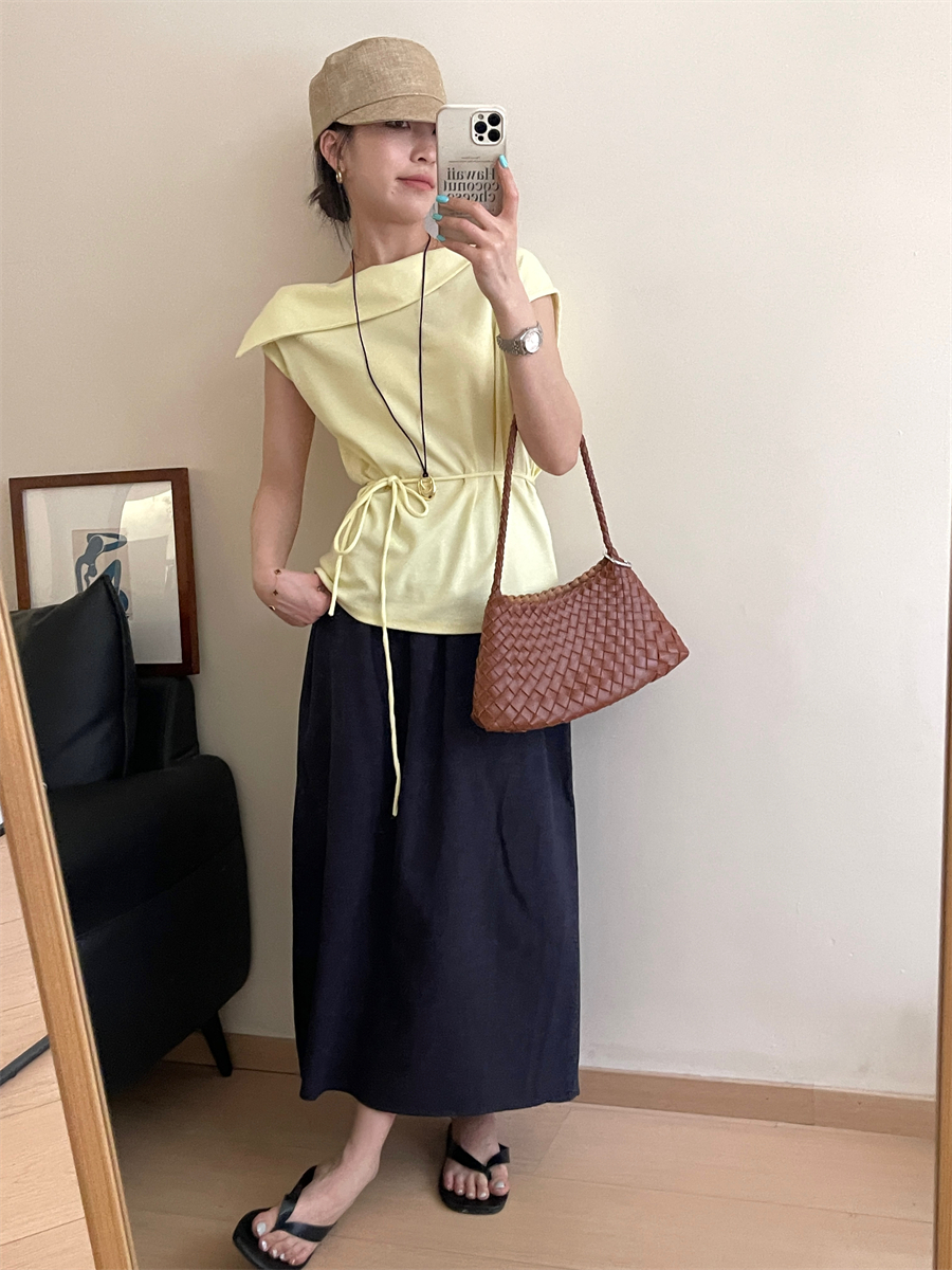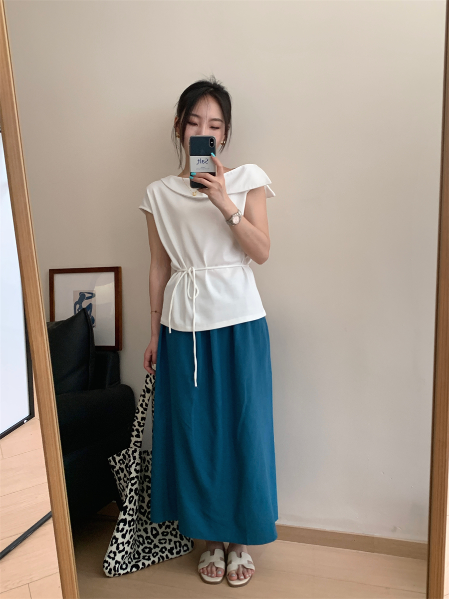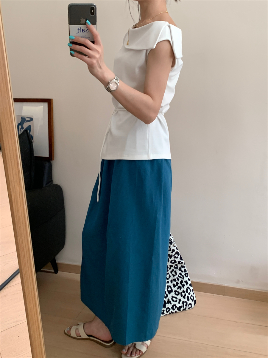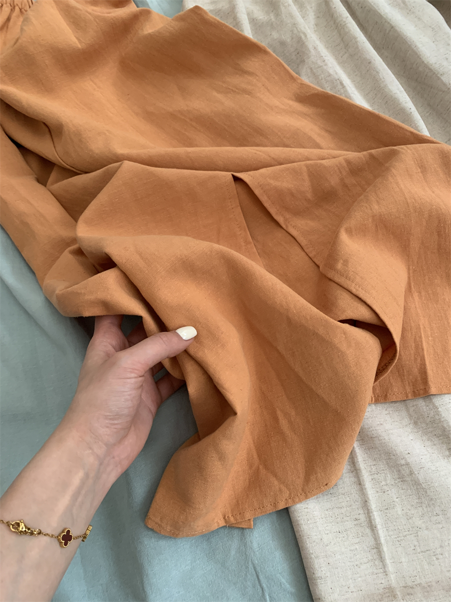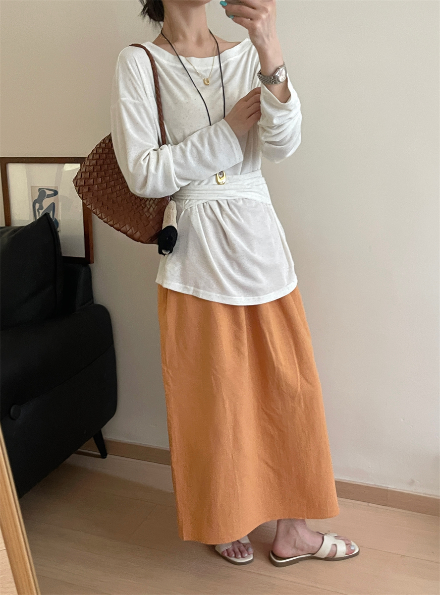 패션 캐주얼 단색 다용도 아마 반신 스커트 여성 여름 허리밴드 슬림해 보이는 롱 코트 루즈핏 A라인 스커트