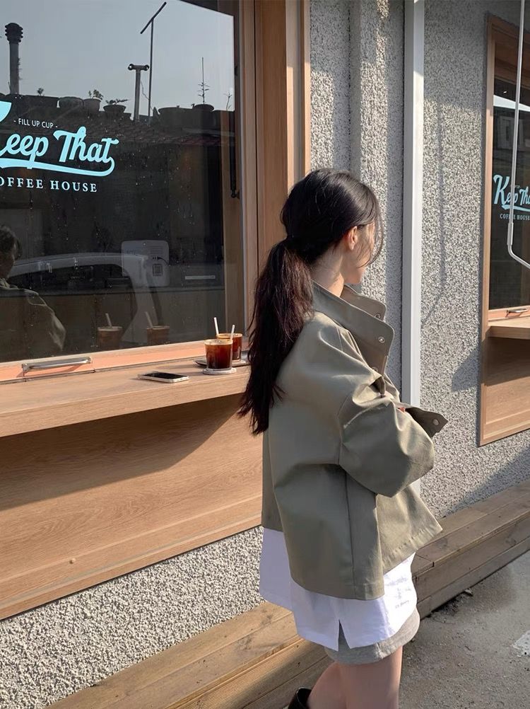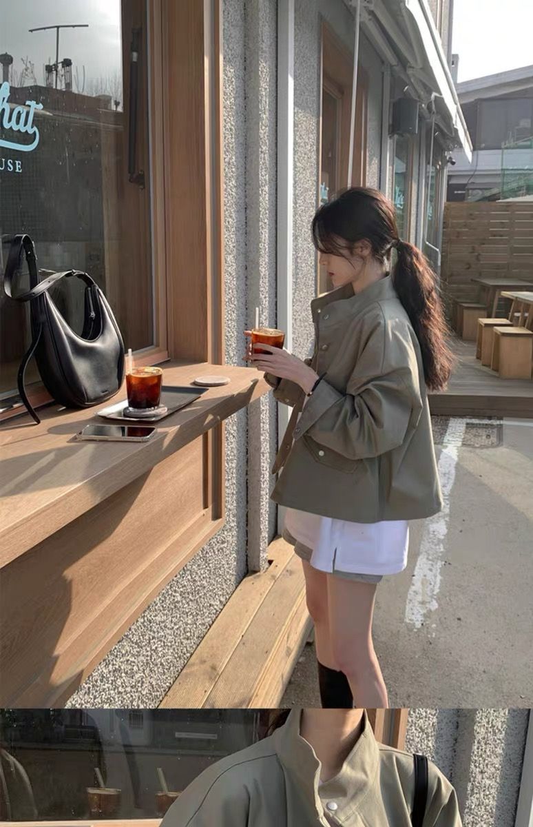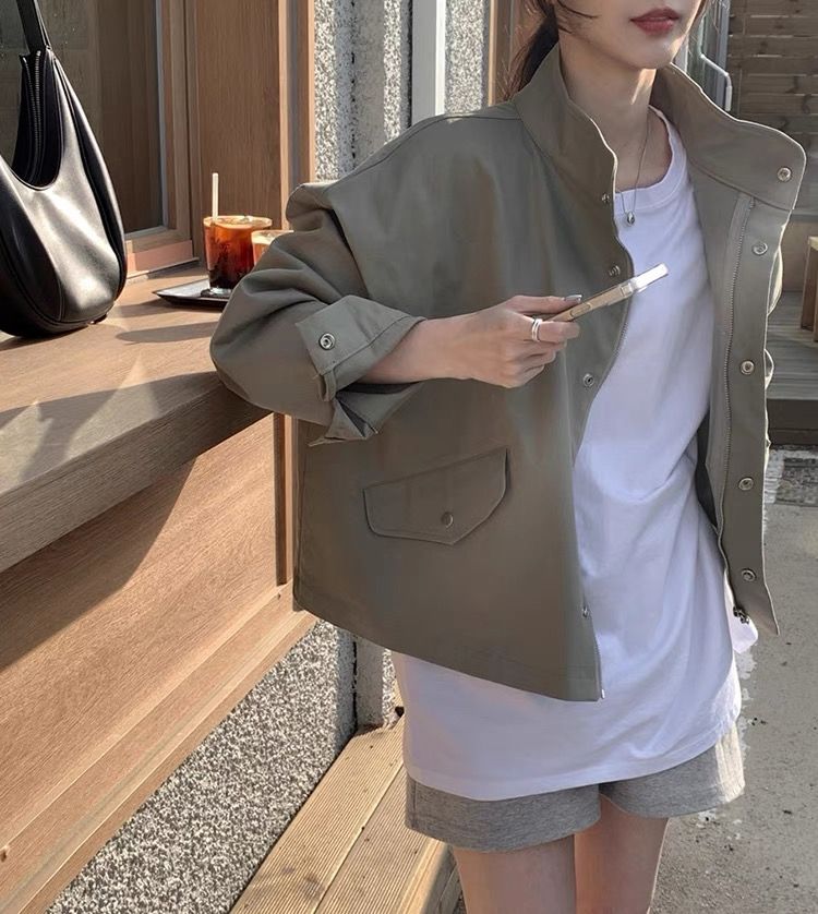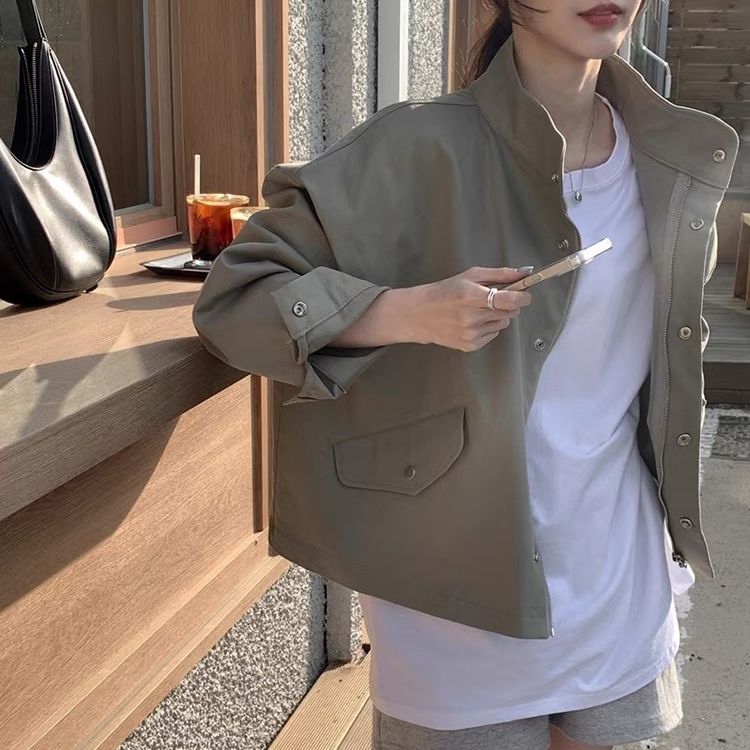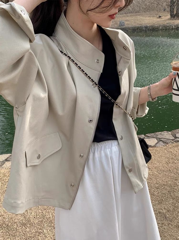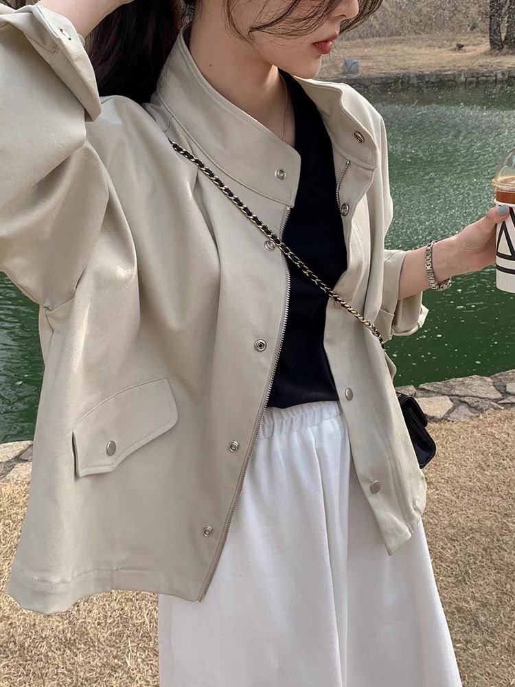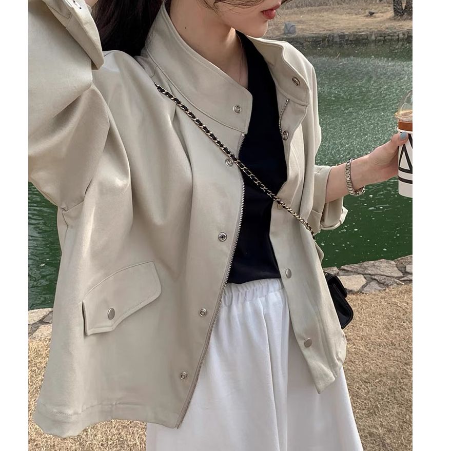 26 한국 chic 가을 레트로 항구 바람 스탠드 칼라 지퍼 디자인 루즈핏 캐주얼 다용도 긴팔 쇼트 스타일 여성 코트