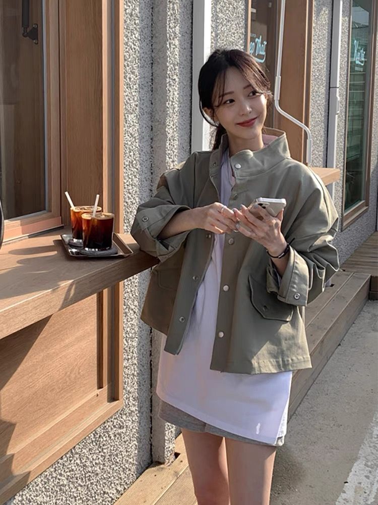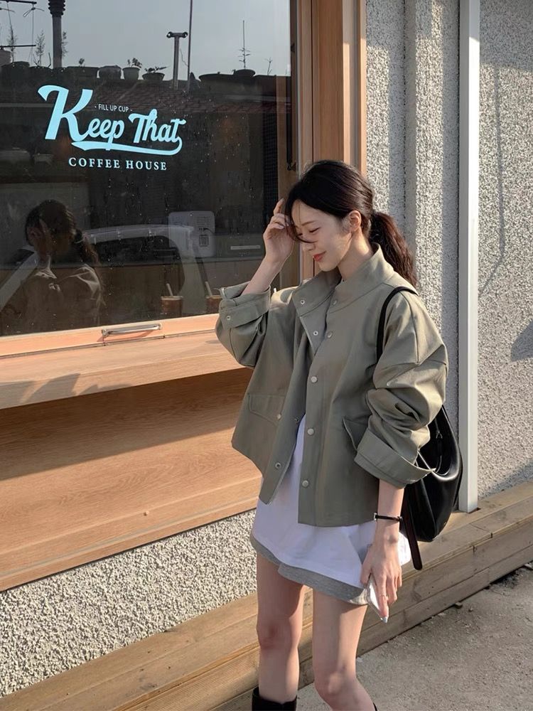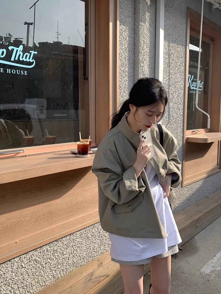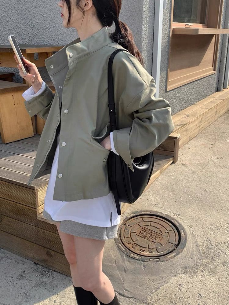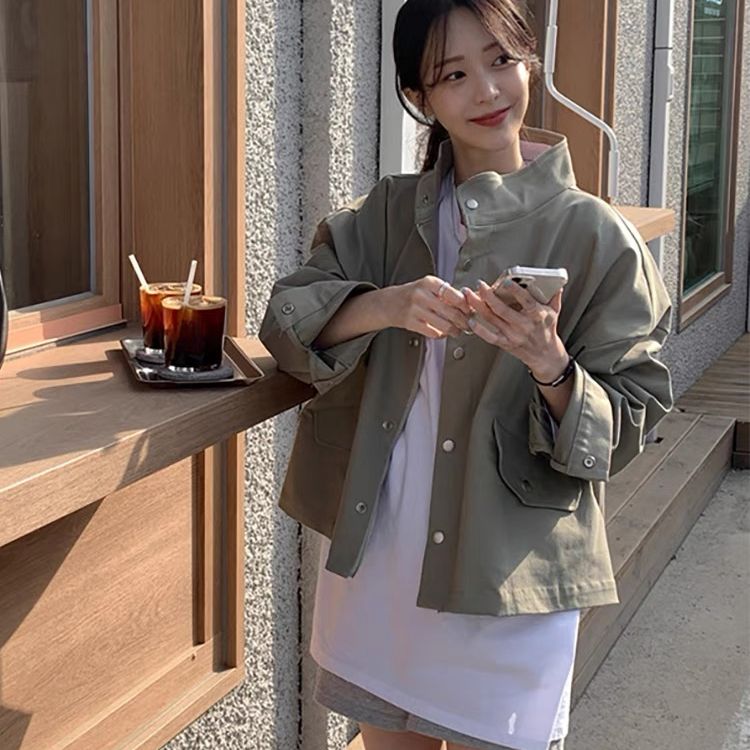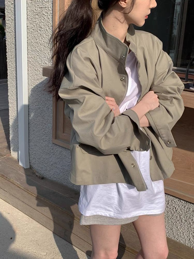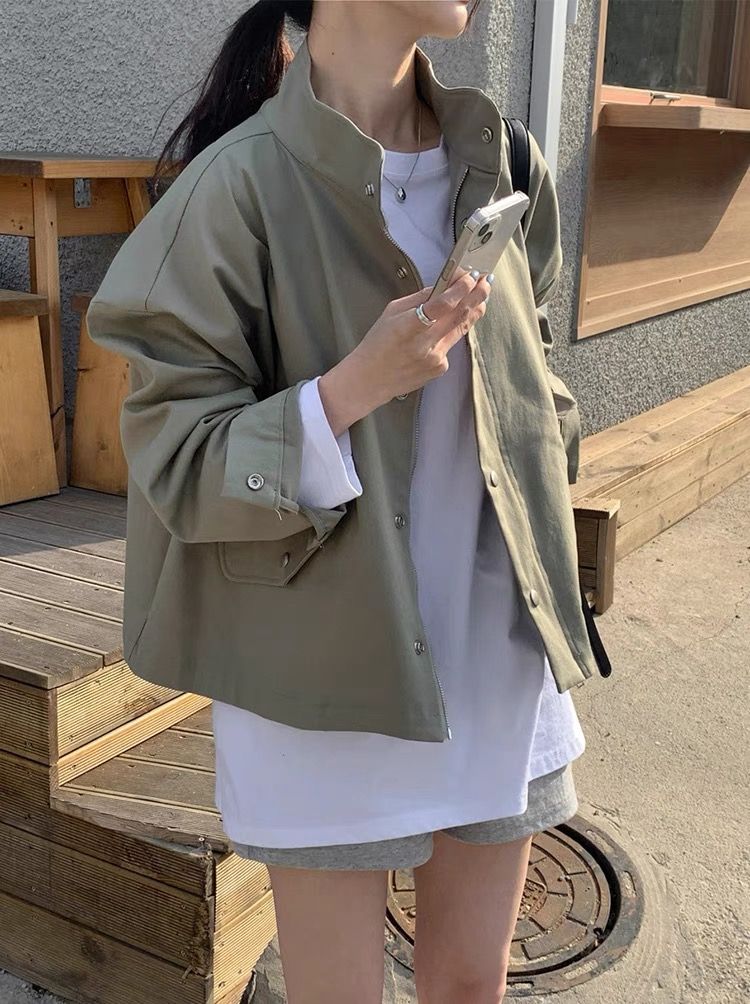 26 한국 chic 가을 레트로 항구 바람 스탠드 칼라 지퍼 디자인 루즈핏 캐주얼 다용도 긴팔 쇼트 스타일 여성 코트