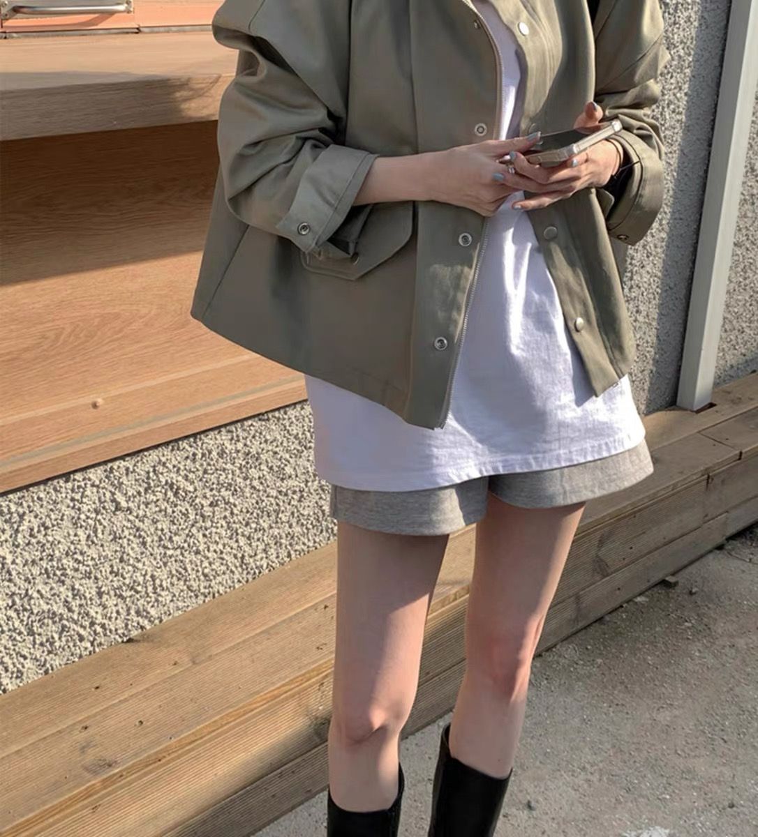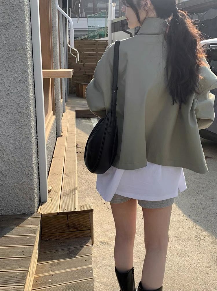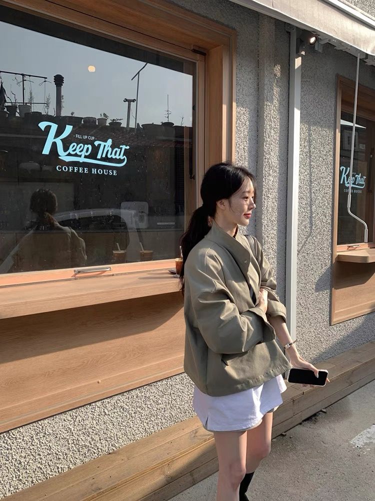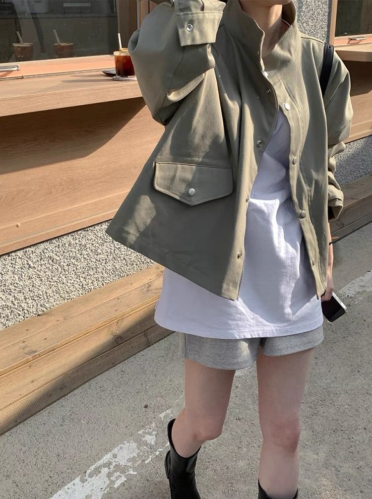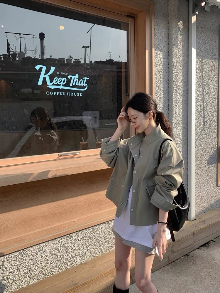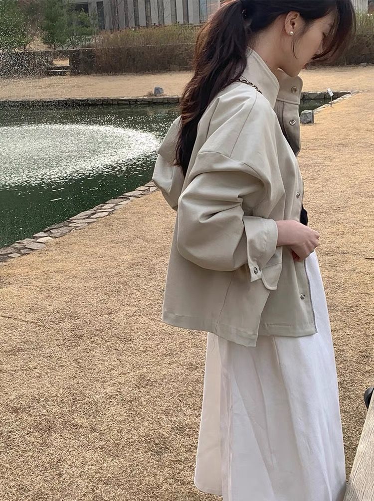 26 한국 chic 가을 레트로 항구 바람 스탠드 칼라 지퍼 디자인 루즈핏 캐주얼 다용도 긴팔 쇼트 스타일 여성 코트