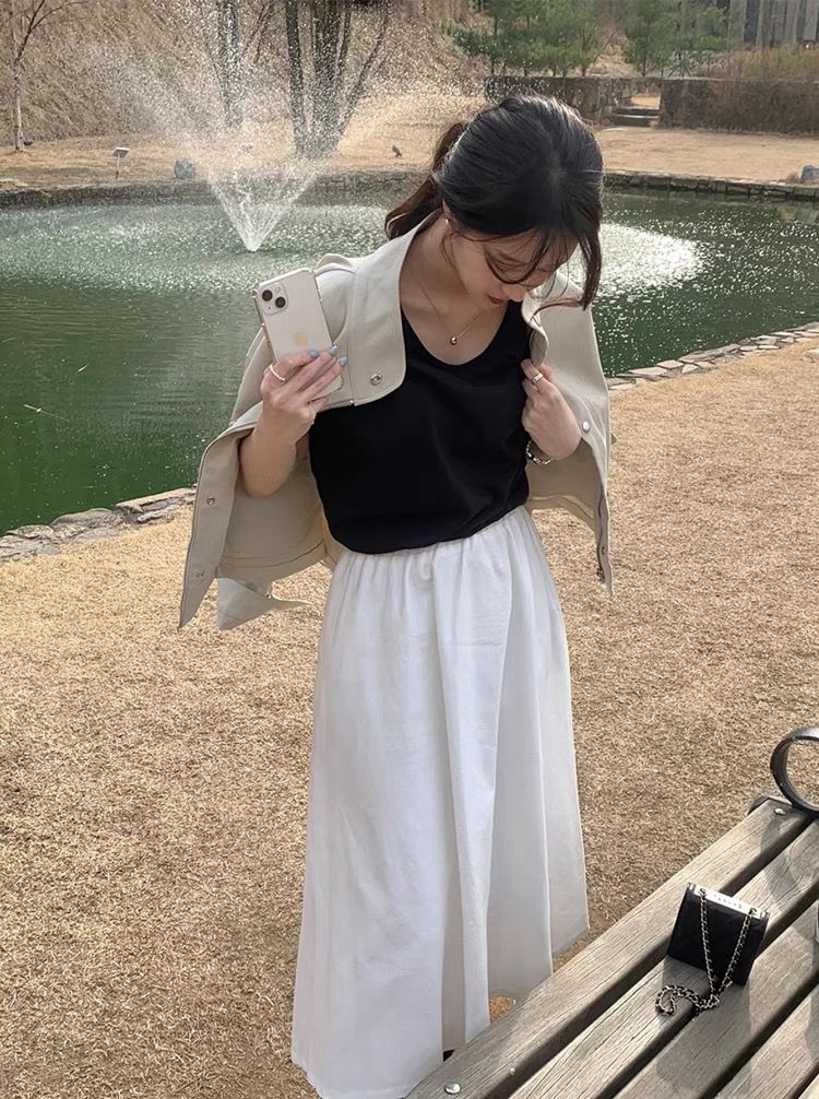 2026 새로운 여름 하이웨이스트 반신 스커트 패션 두 조각 여성 세트 빅 사이즈 민소매 얼음 실크 모방 데님 블루 조끼 맨위