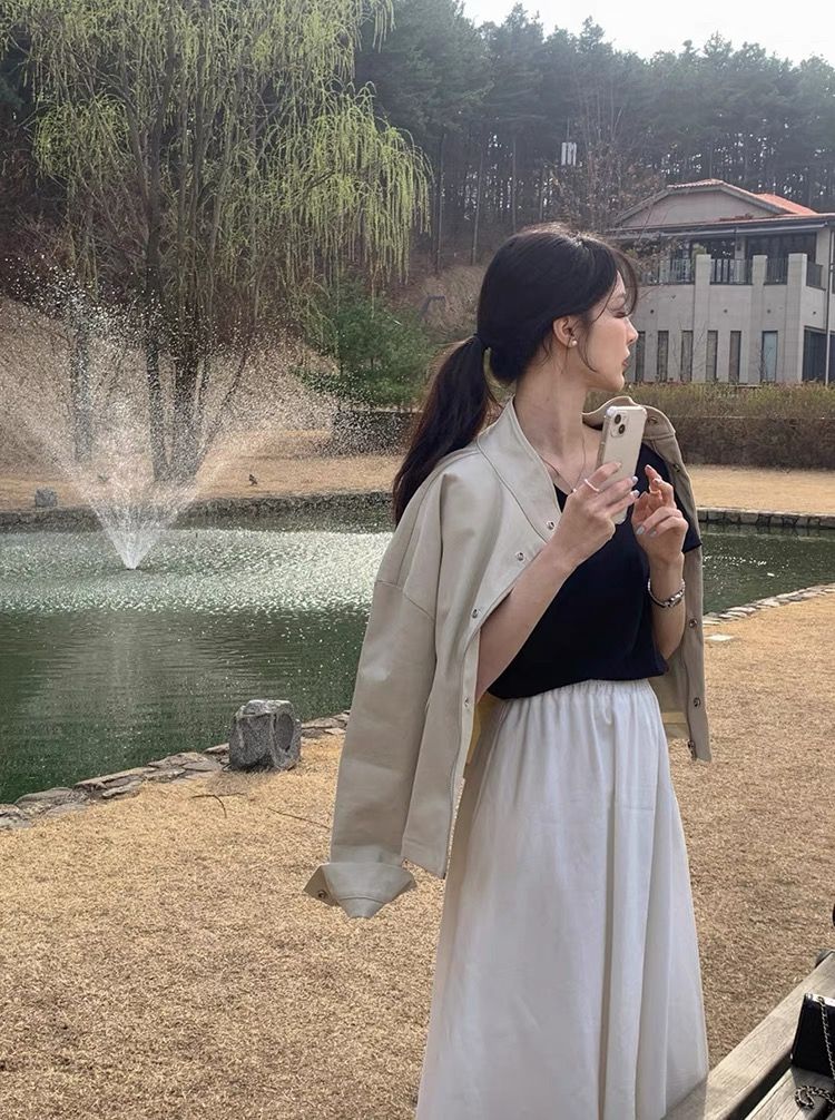 2026 봄 여름 새로운 캐주얼 자외선 차단 얇은 스타일 세트 루즈핏 작은 쇼트 스타일 긴팔 스탠드 칼라 재킷 펌프 로프 미니 스커트 여성