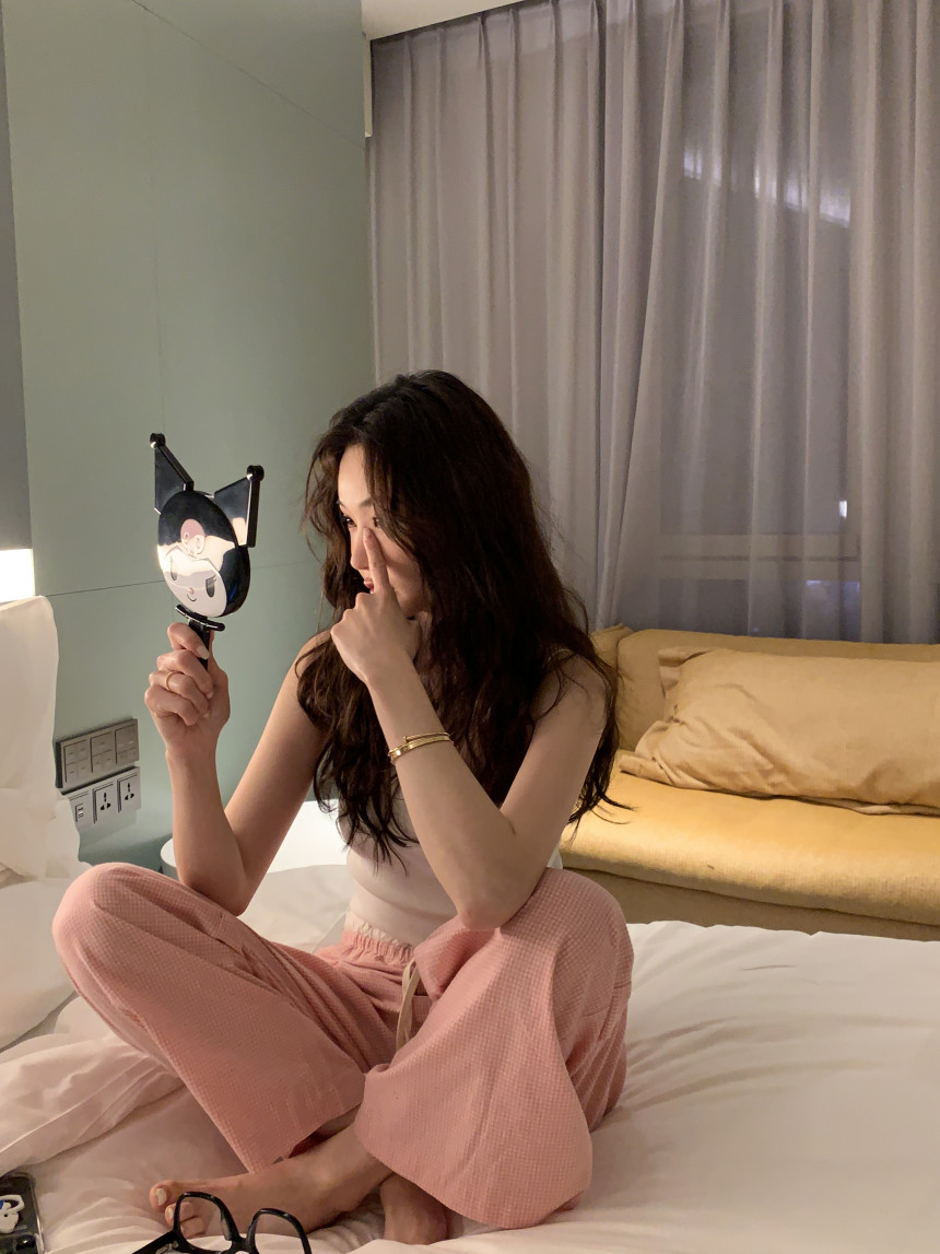아마 핑크색 2026 캐주얼 바지 여성 편안함 다용도 허리밴드 넓은 다리 길이 바지