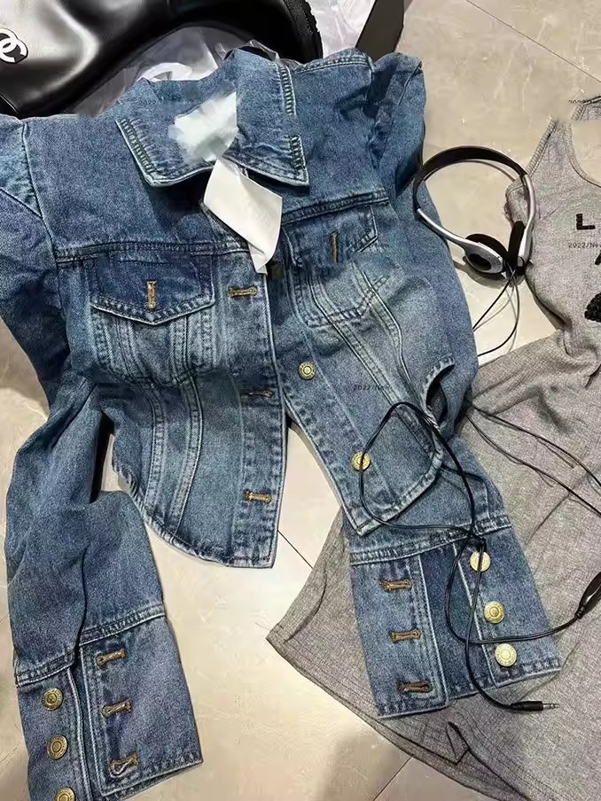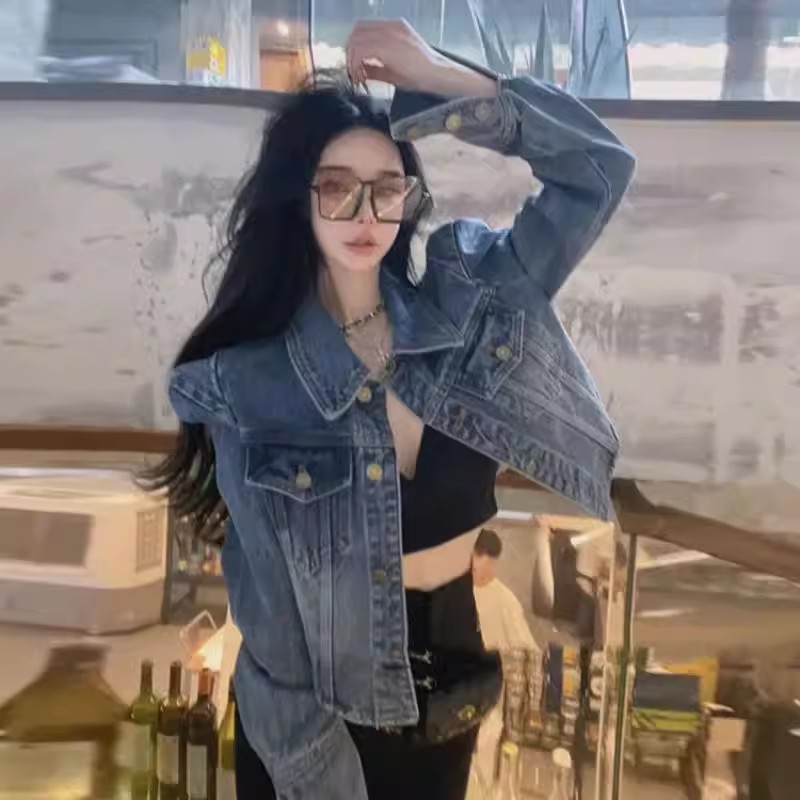 프랑스식 레트로 항구 바람 어깨 패드 디자인 센스 쇼트 스타일 데님 여성 코트 가을 겨울 외국 가스 다용도 슬림해 보이는 재킷 맨위