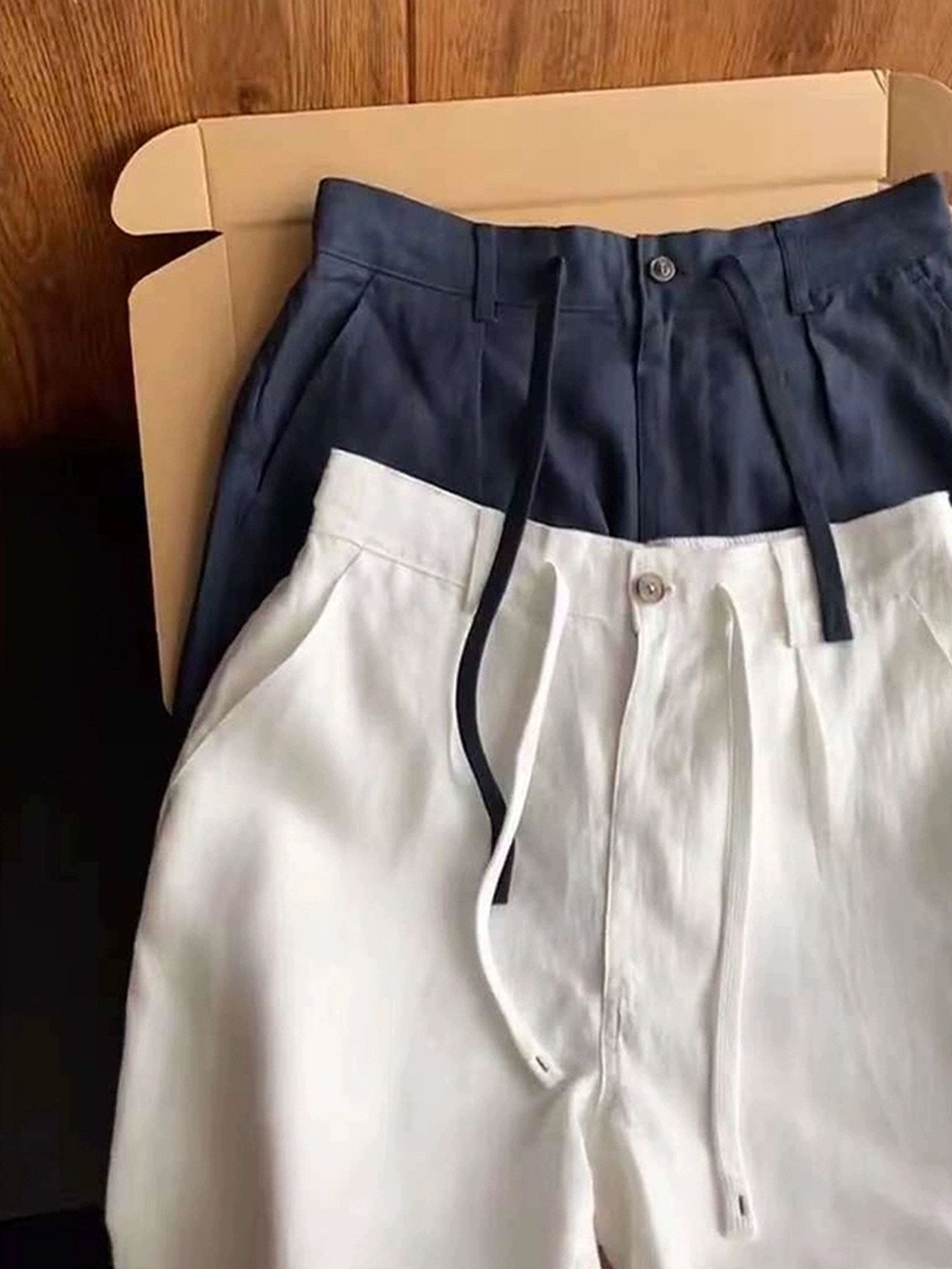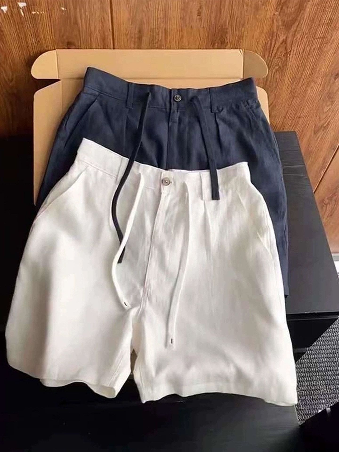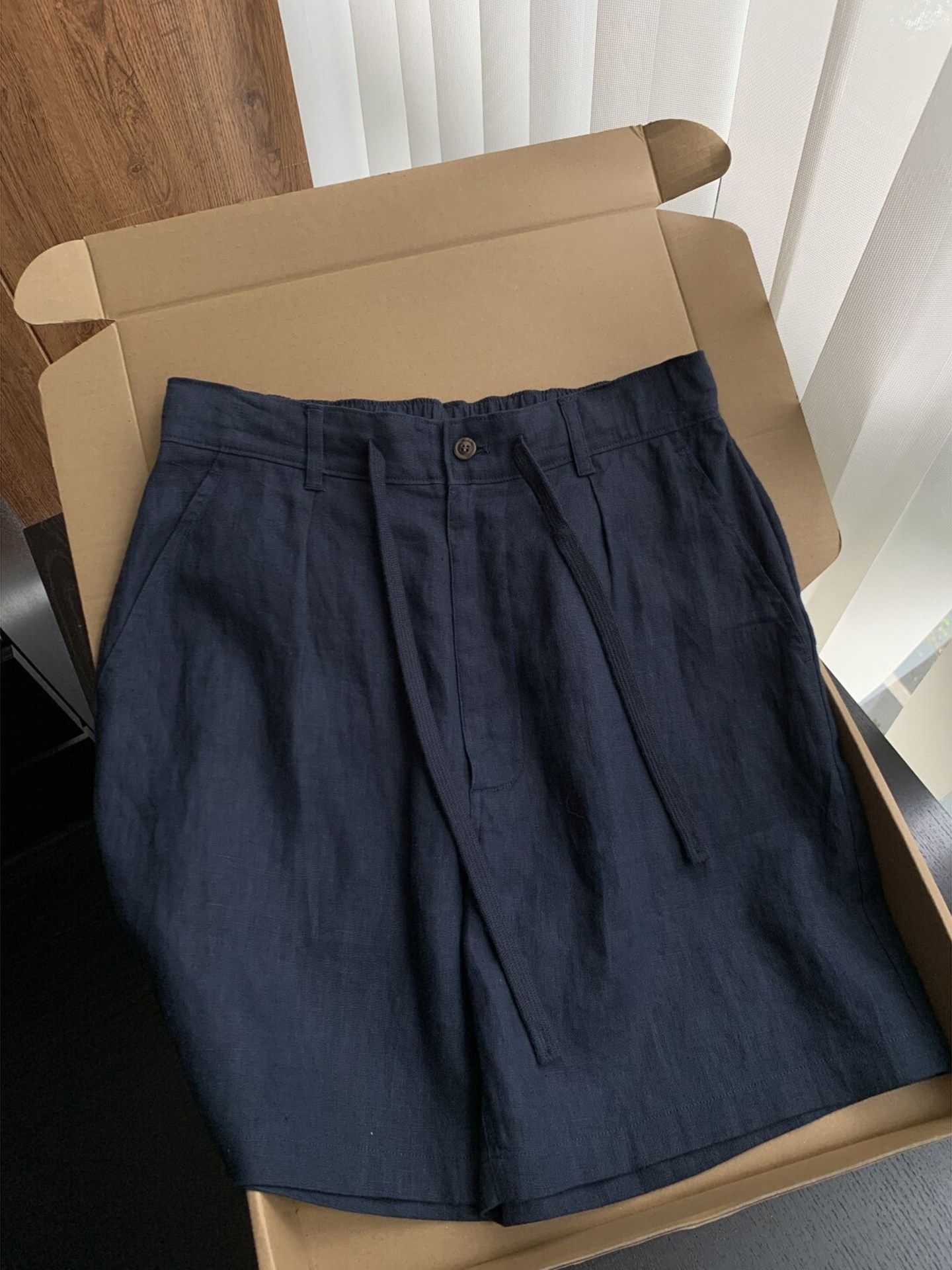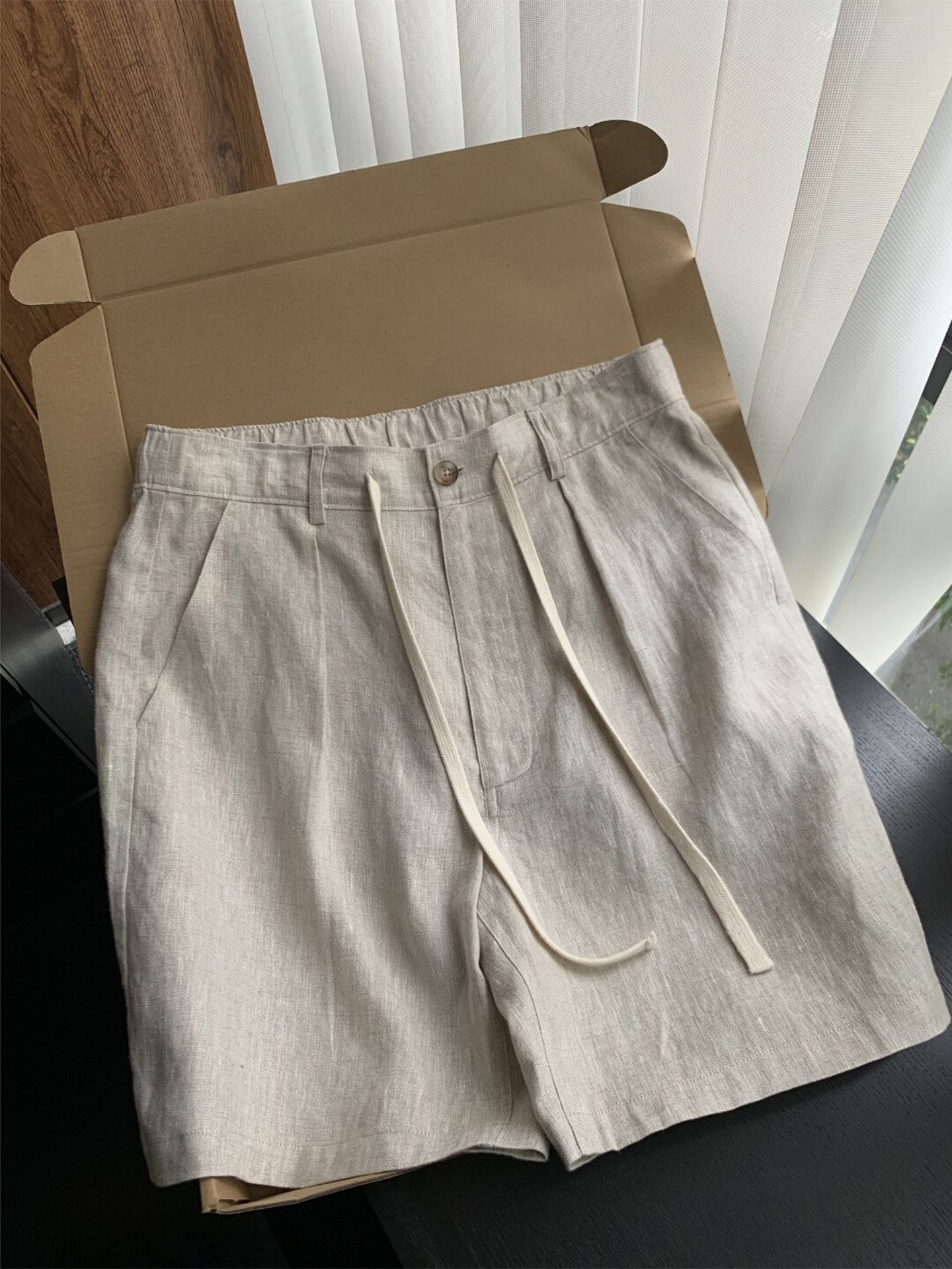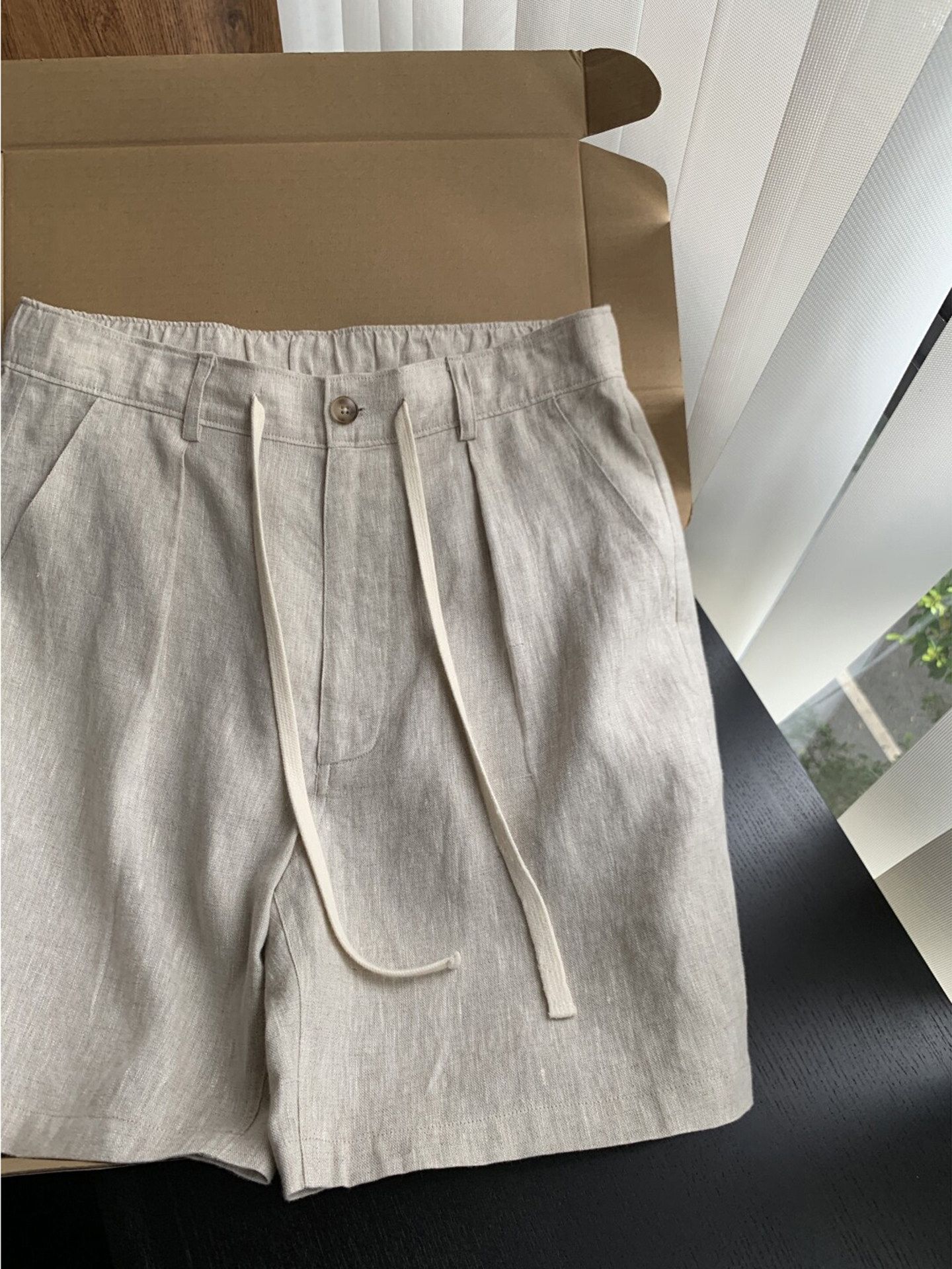 2023 아마 원단 여름 외출용 다용도 루즈핏 캐주얼 4 5 분 바지 오래된 돈 바람 아마 반바지 남자