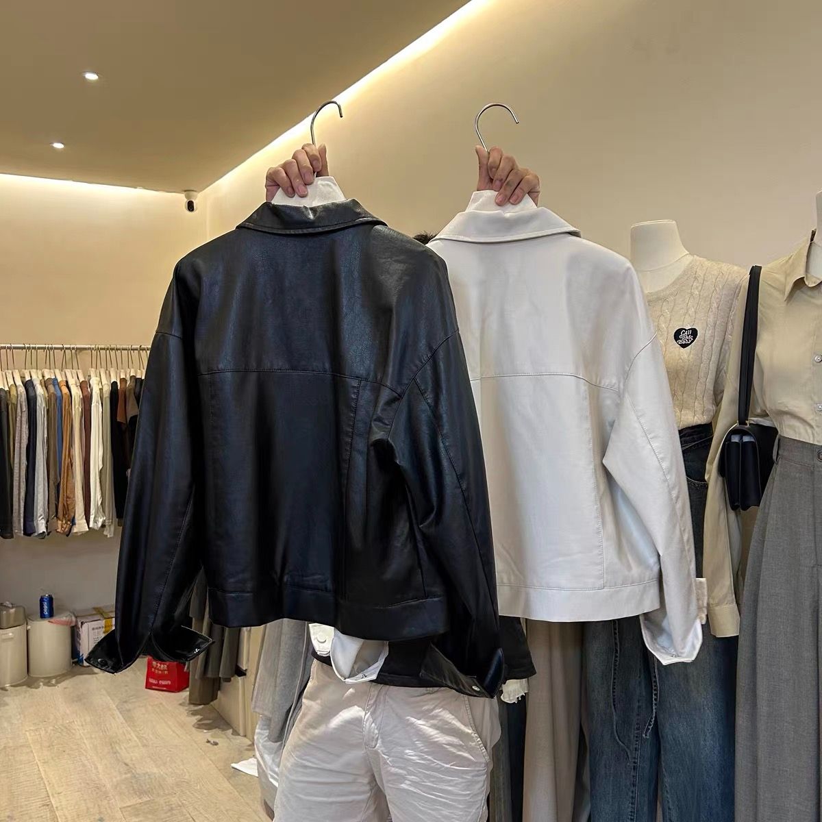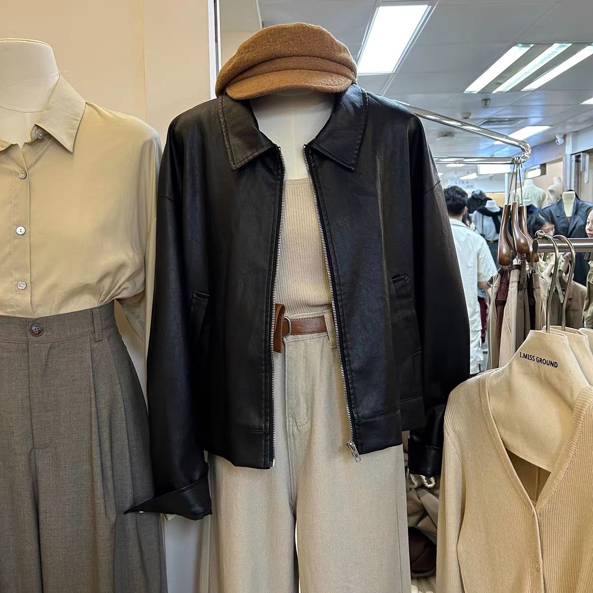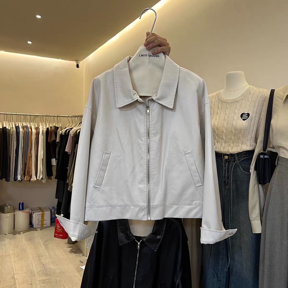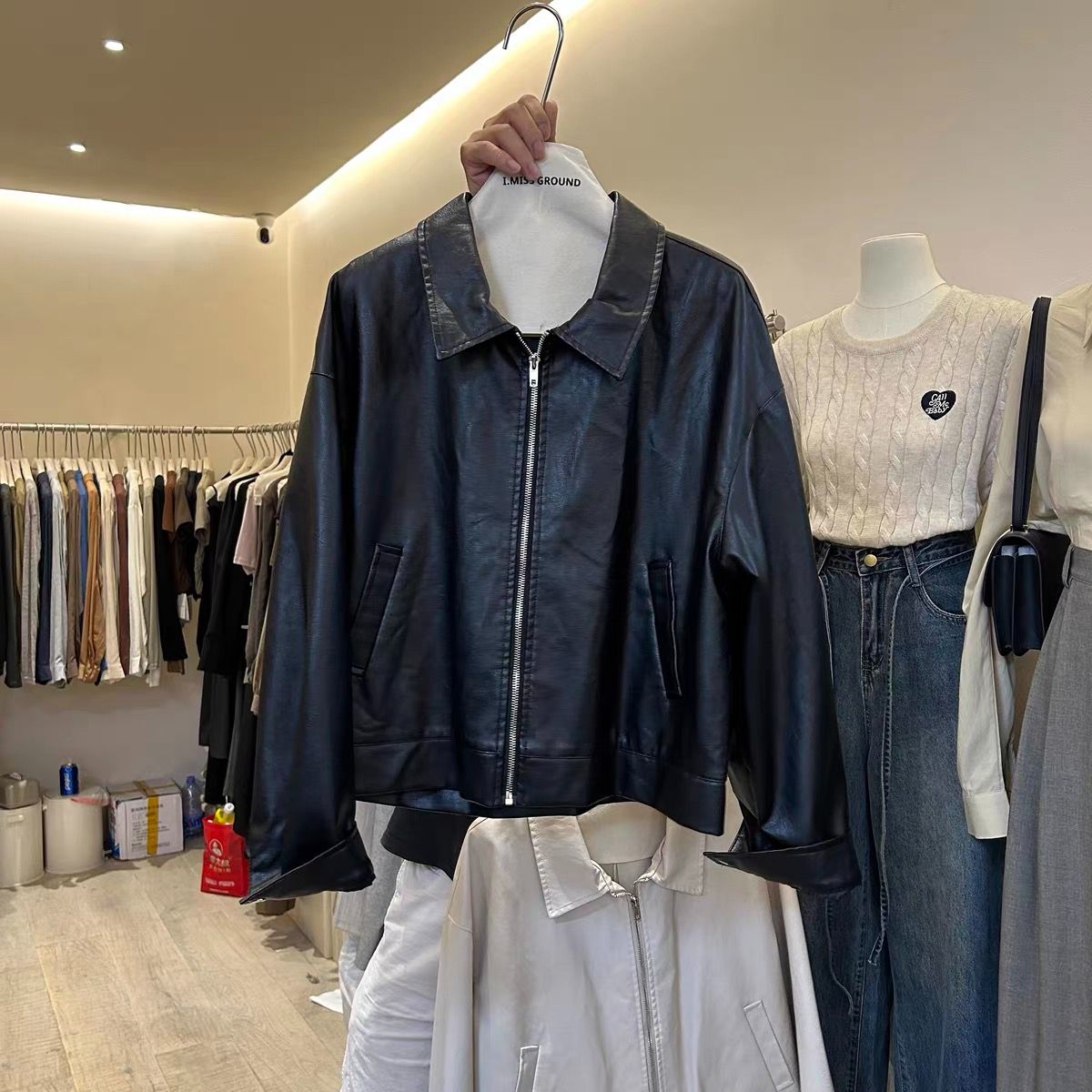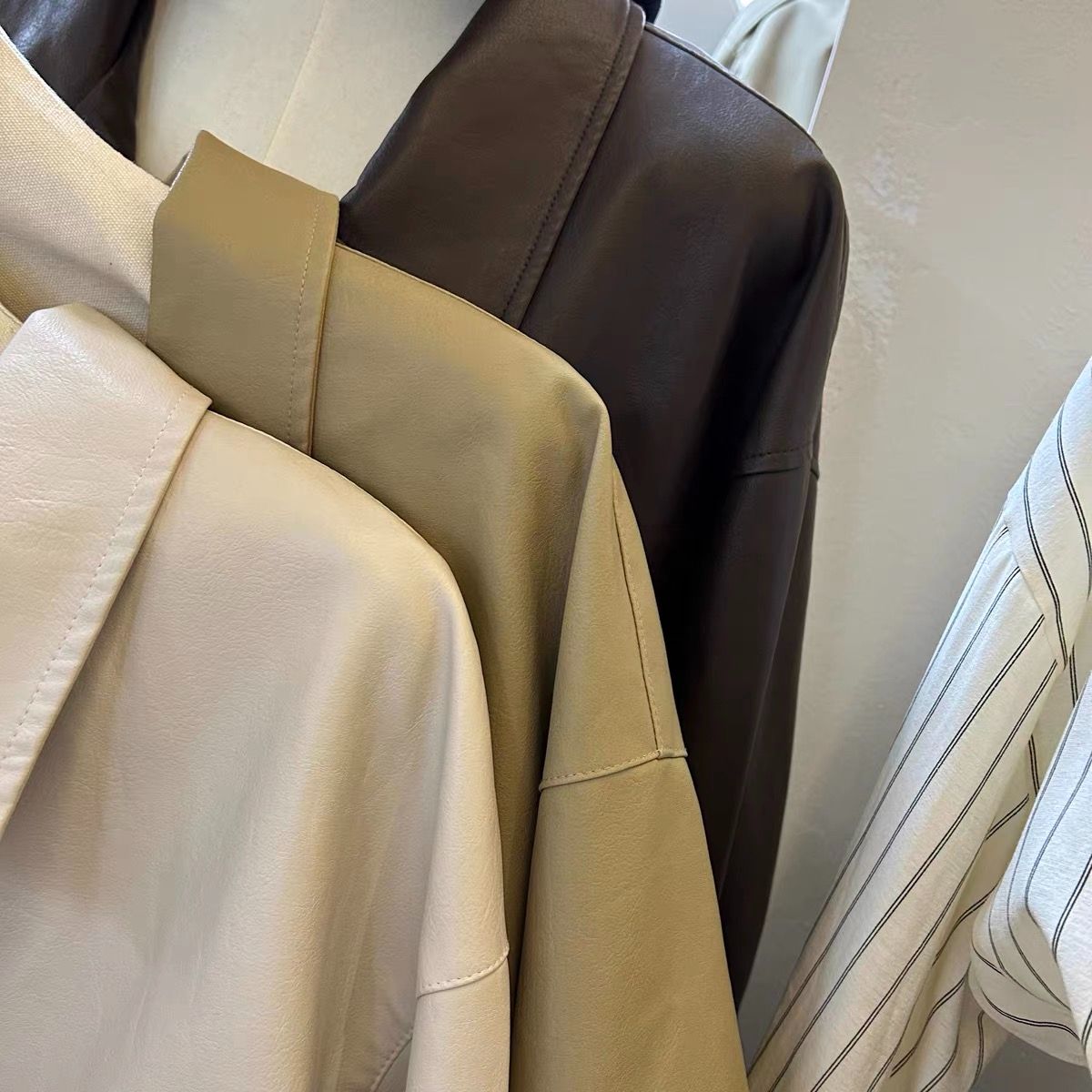 한국 동대문 2026 봄 새로운 레트로 미니멀리즘 다용도 루즈핏 캐주얼 모조 가죽 의류 재킷 여성 코트