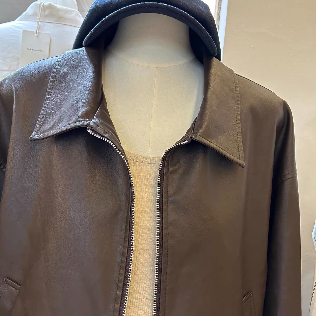 2026 새로운 봄 지퍼 폴로 칼라 pu 모조 가죽 외투 여성 짧은 루즈핏 슬림해 보이는 아메리칸 레트로 오토바이 서비스