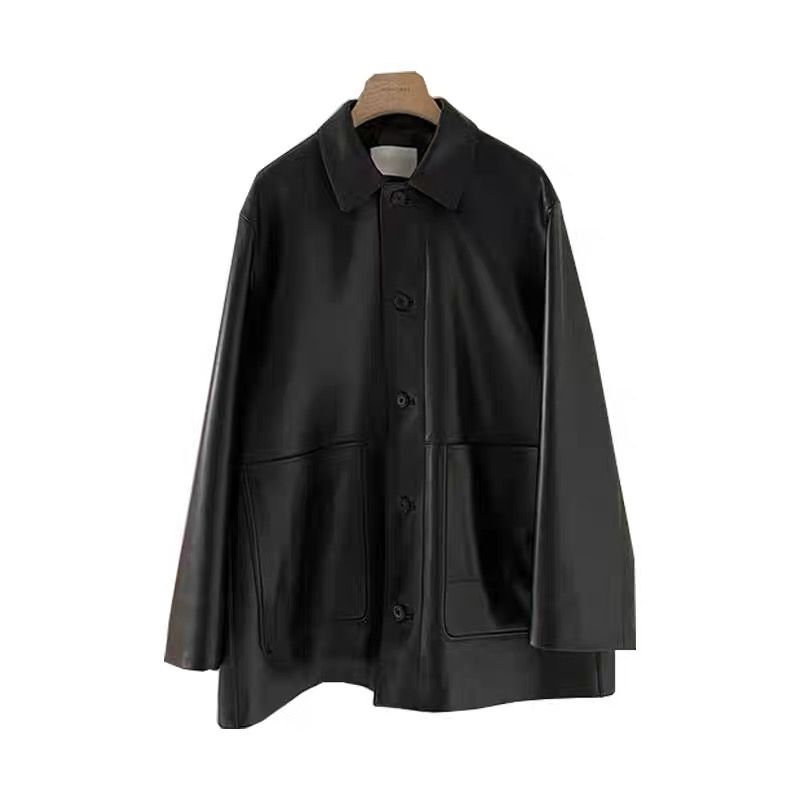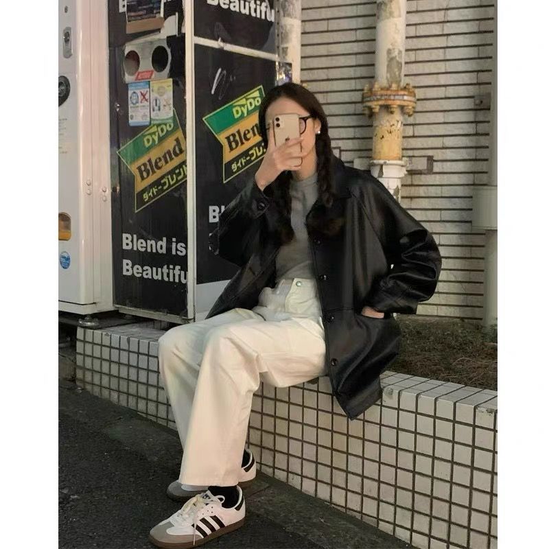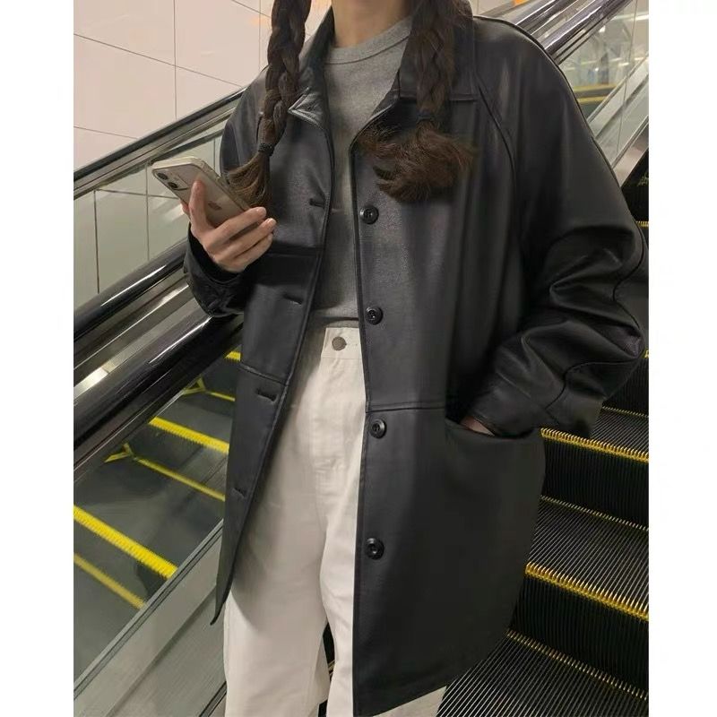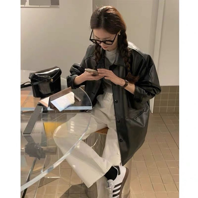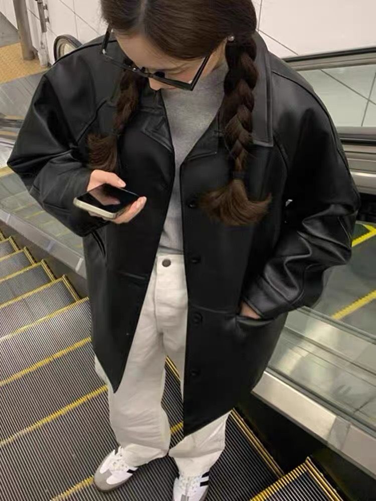 한국 동대문 2026 봄 새로운 레트로 미니멀리즘 다용도 루즈핏 캐주얼 모조 가죽 의류 재킷 여성 코트