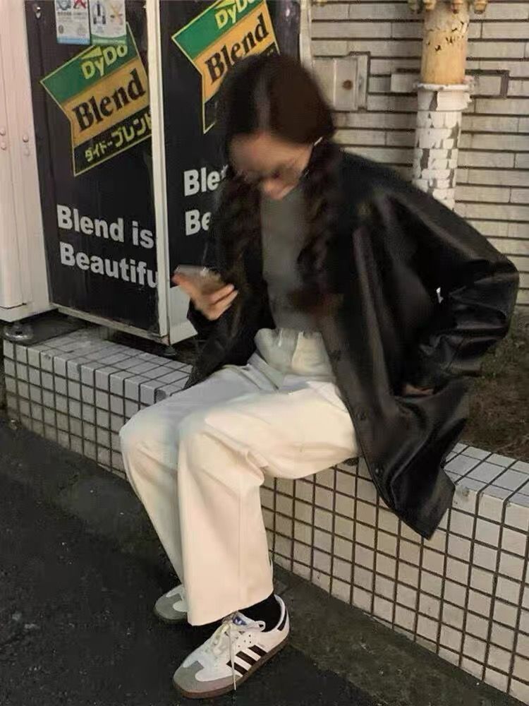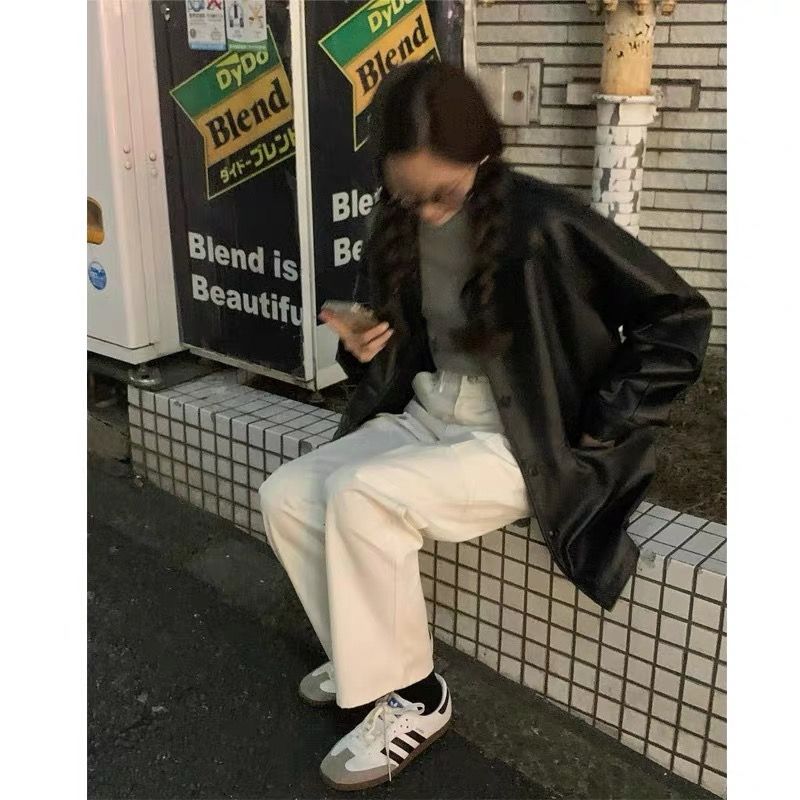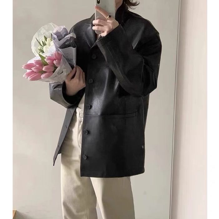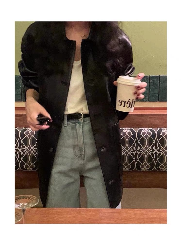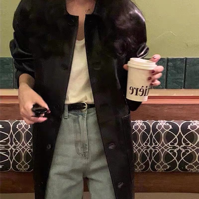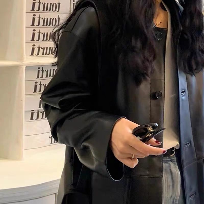 한국 동대문 2026 봄 새로운 레트로 미니멀리즘 다용도 루즈핏 캐주얼 모조 가죽 의류 재킷 여성 코트