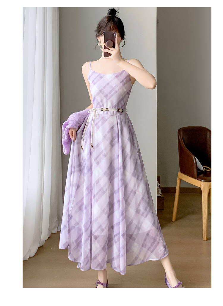 프랑스식 보라색 여성 드레스 여름 2026 새로운 작은 키 고급 센스 해변가 휴가 허리 수축 쉬폰 롱 스커트