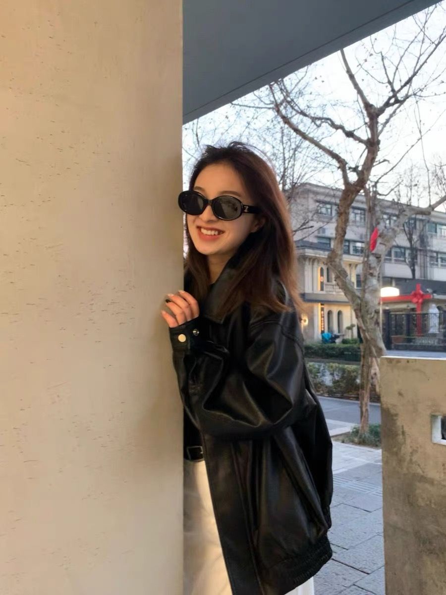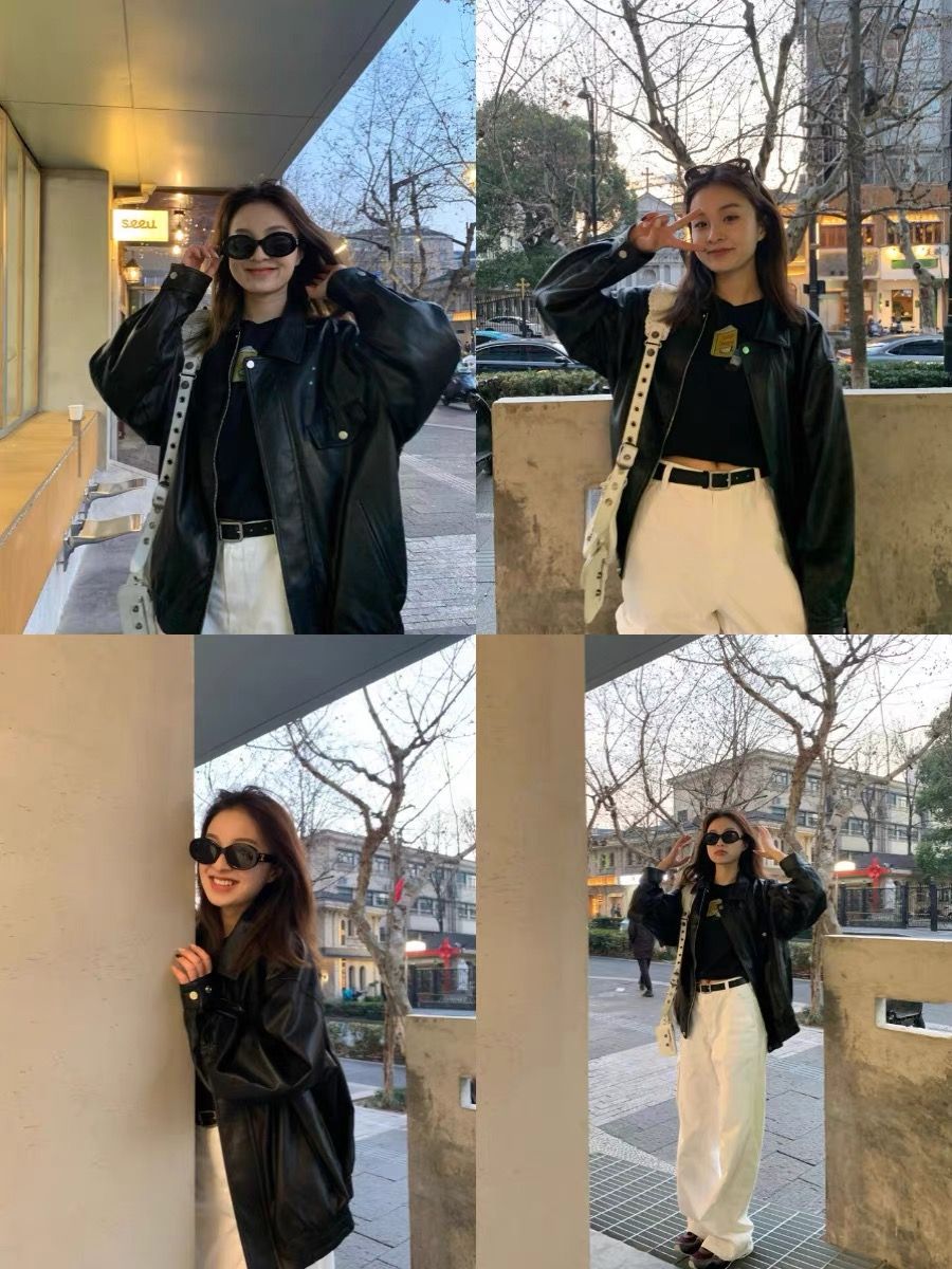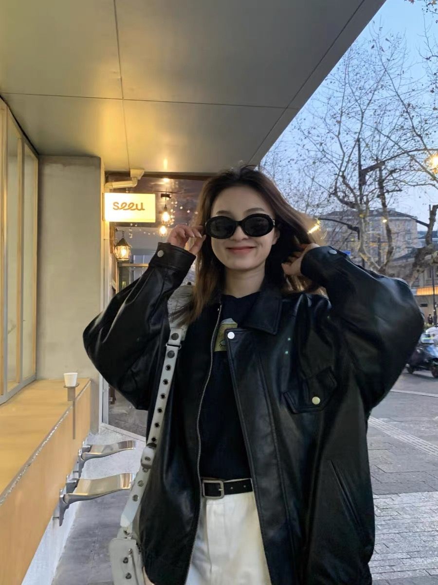 26 한국 잘 생긴 폴로 칼라 싱글 줄 버튼 가죽 재킷 여성 코트 가을 새로운 루즈핏 다용도 모조 가죽 재킷 맨위