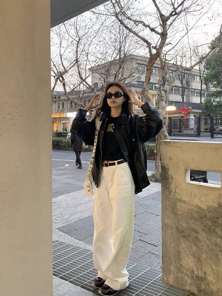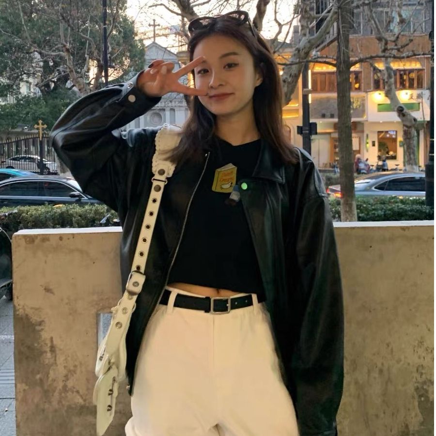2026 새로운 봄 지퍼 폴로 칼라 pu 모조 가죽 외투 여성 짧은 루즈핏 슬림해 보이는 아메리칸 레트로 오토바이 서비스