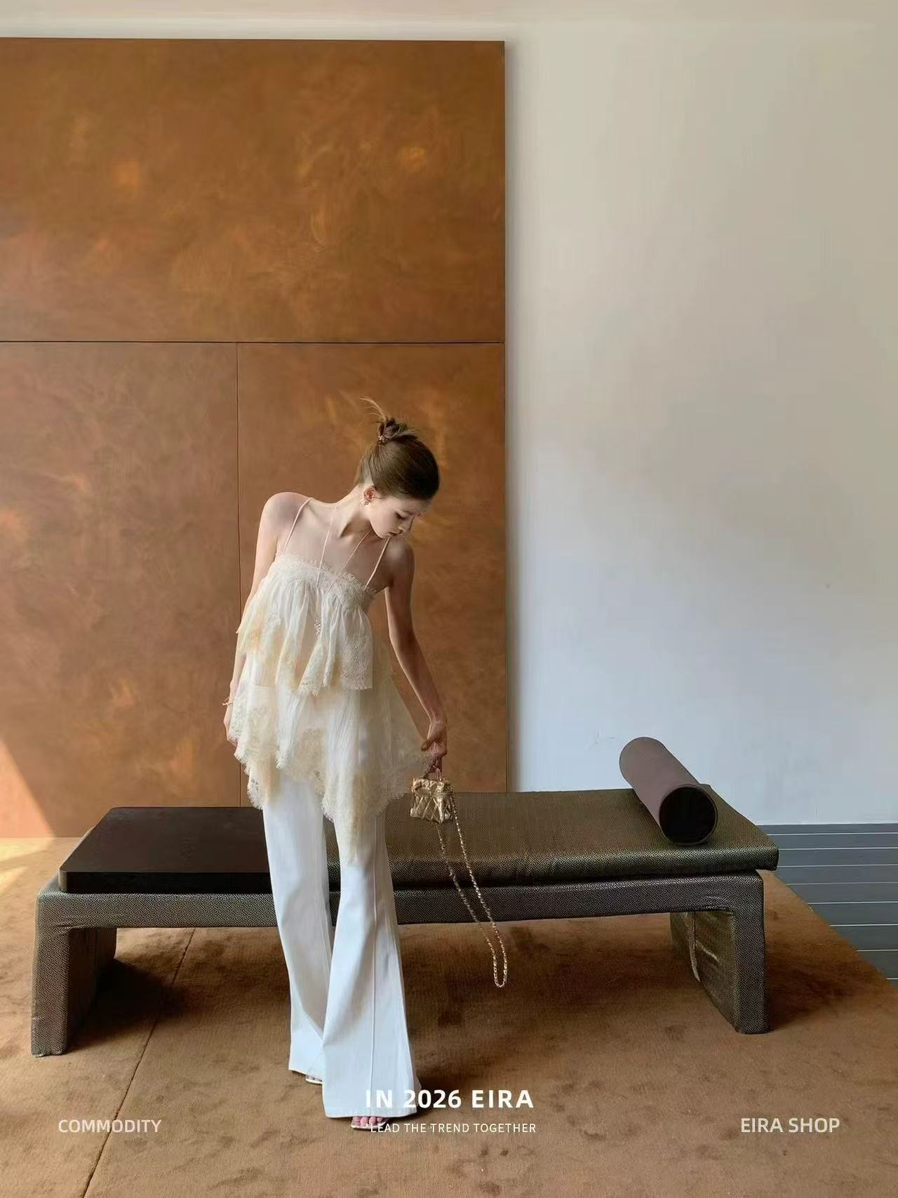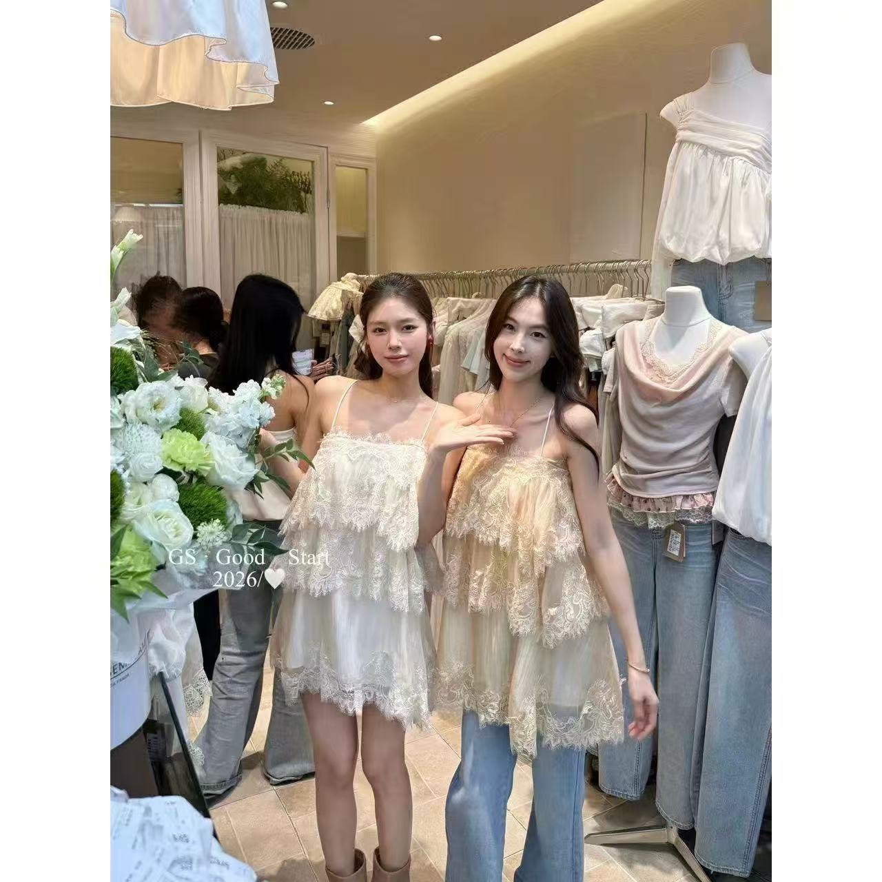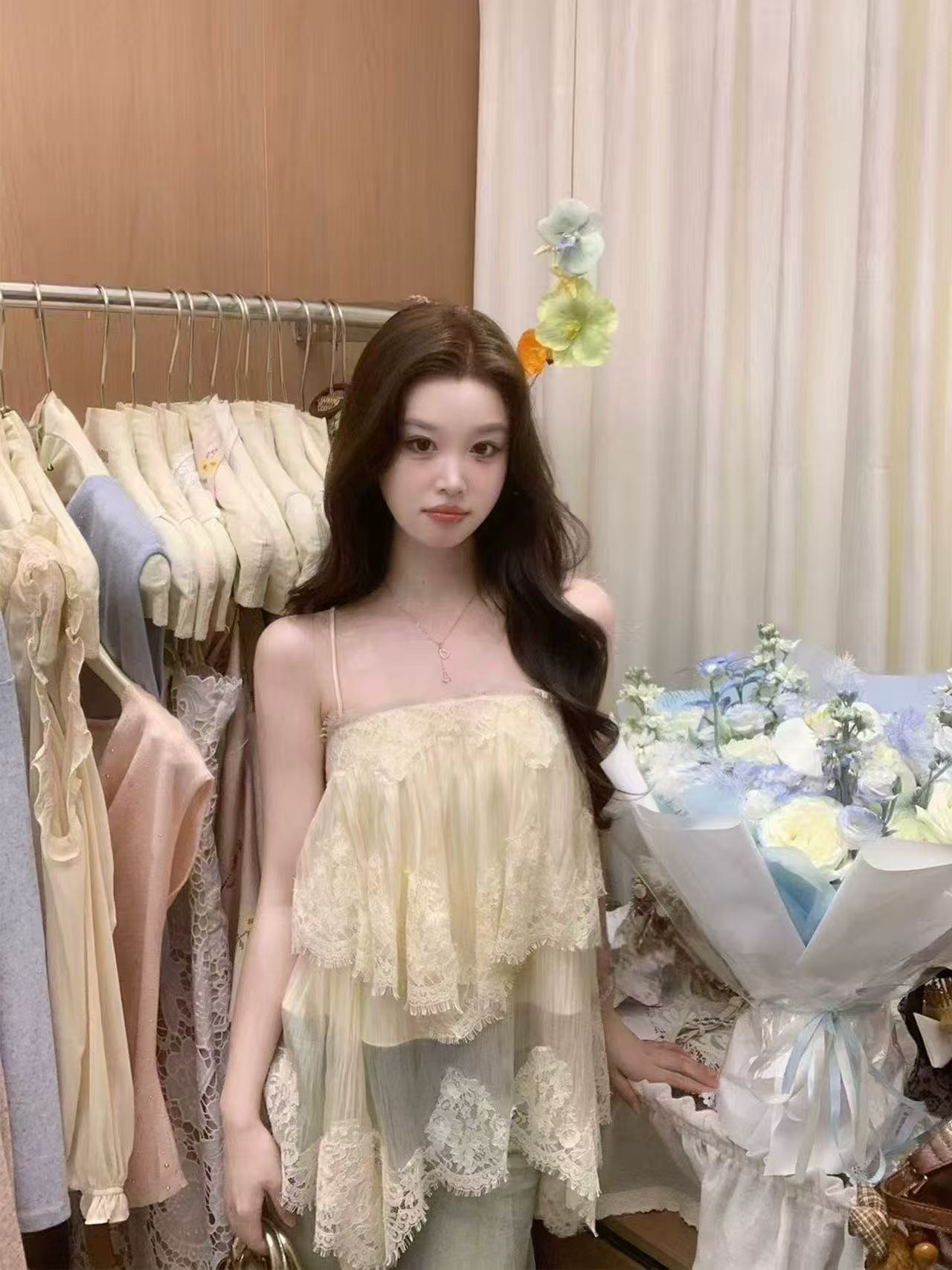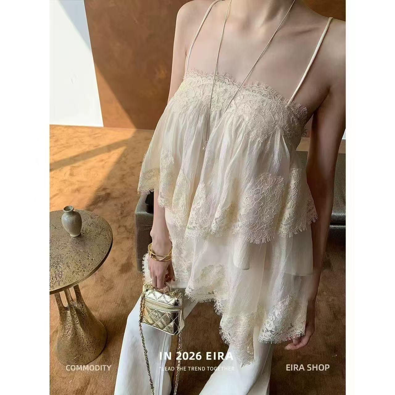 새로운 디자인 센스 부드러운 바람 무거운 작업 다중 레이어 레이스 불규칙 캐미솔