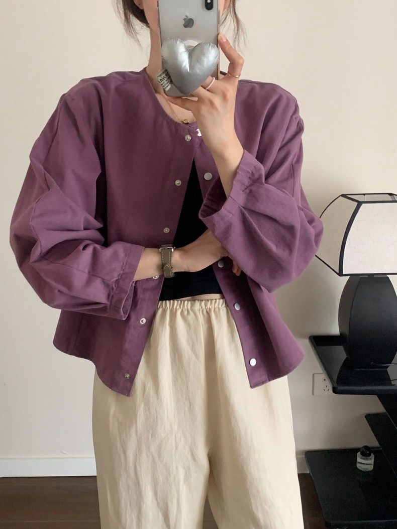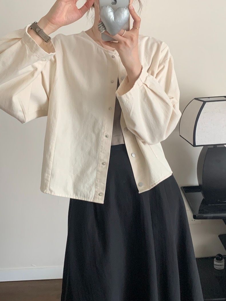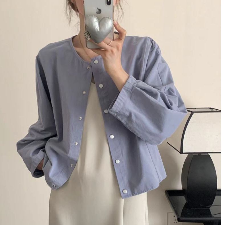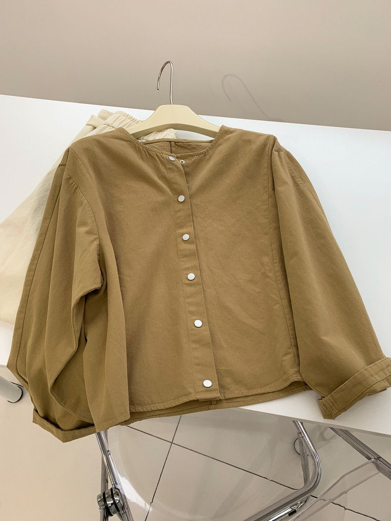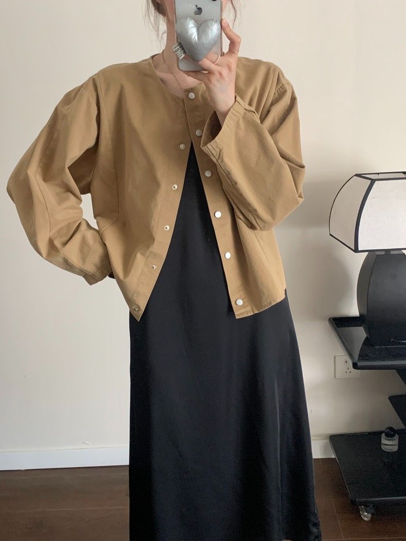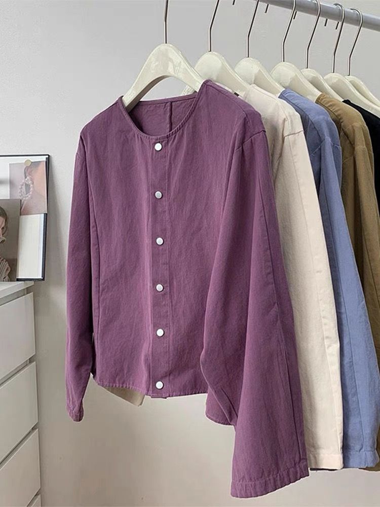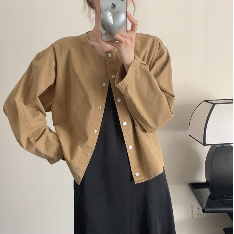 5 가지 색상 선택 사항 일본식 바람 라운드 넥 긴팔 워크웨어 여성 코트 2026 봄 새로운 작은 키 오픈 가디건 맨위
