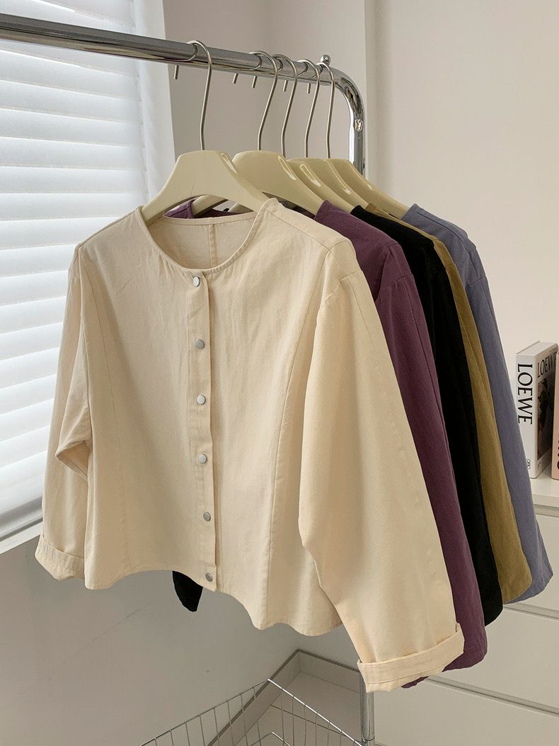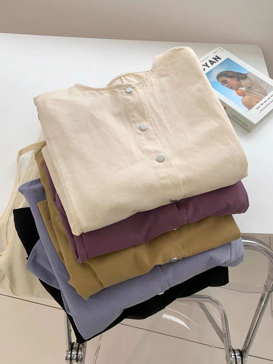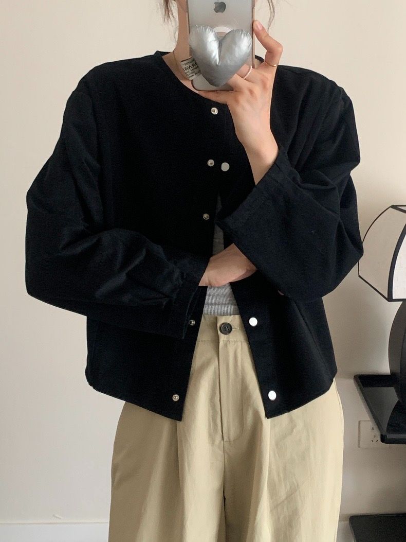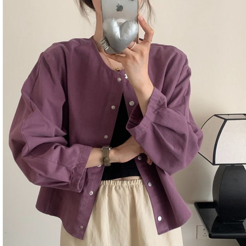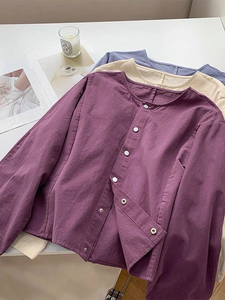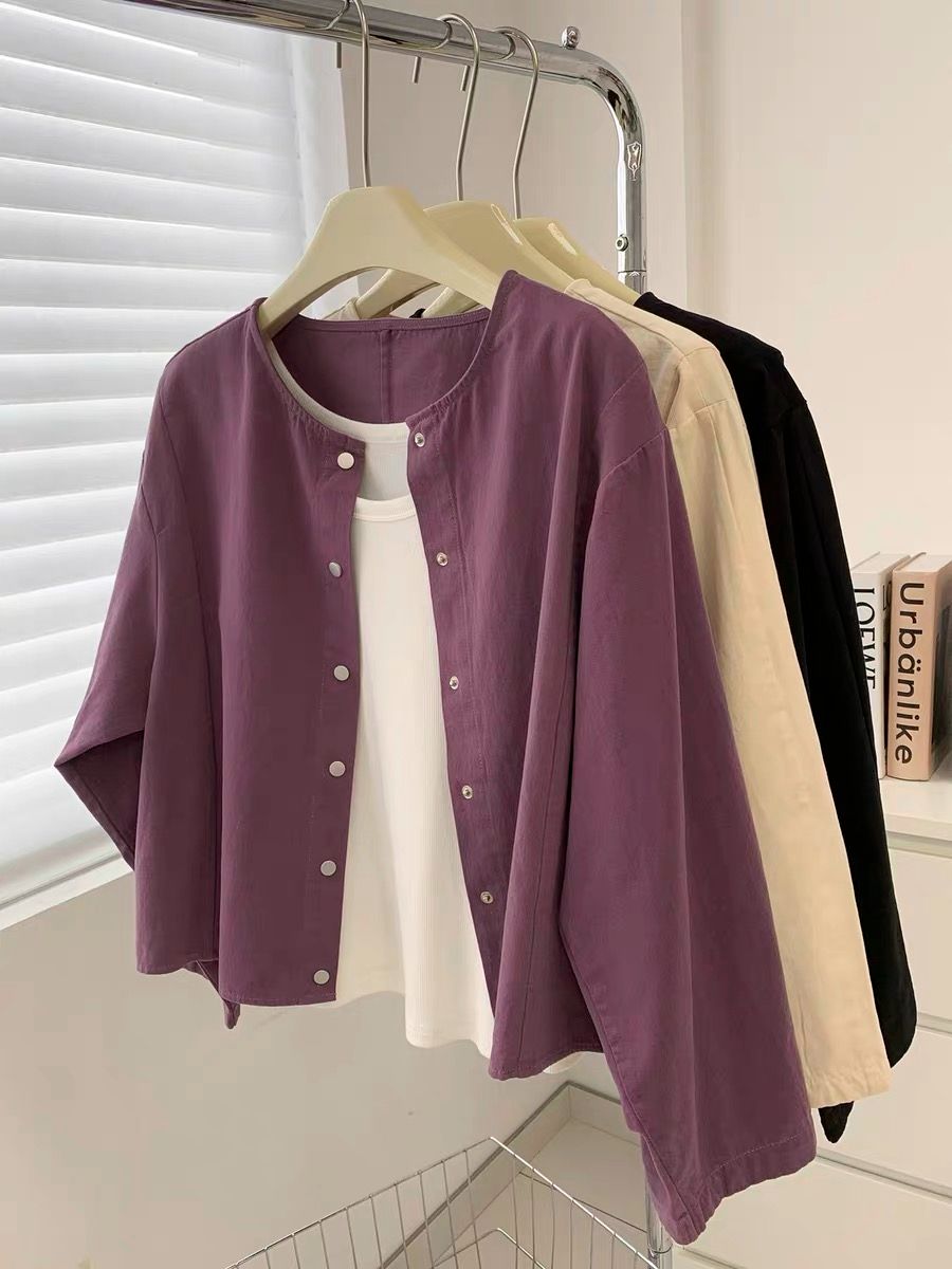 5 가지 색상 선택 사항 일본식 바람 라운드 넥 긴팔 워크웨어 여성 코트 2026 봄 새로운 작은 키 오픈 가디건 맨위