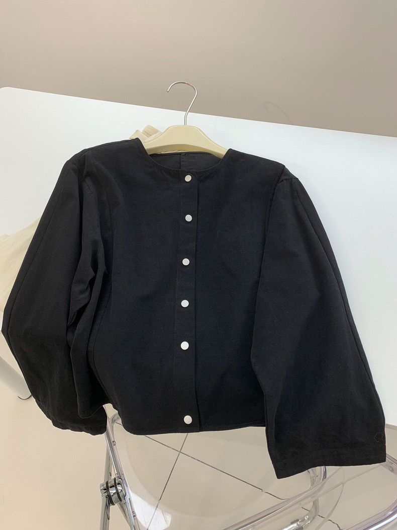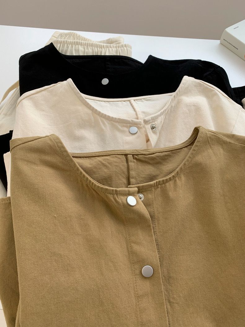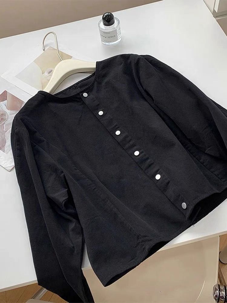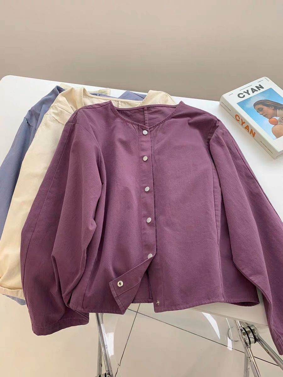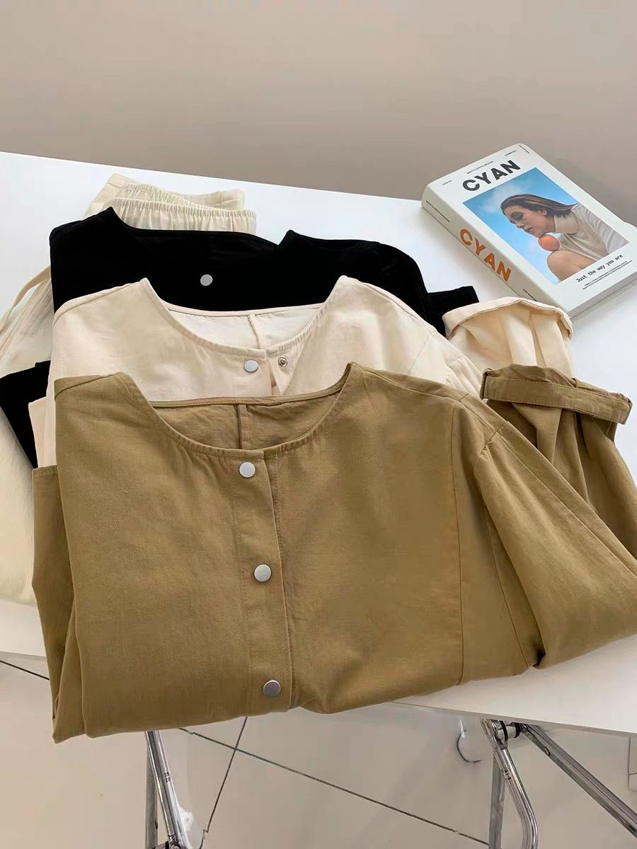한국 chic 가을 프랑스식 미니멀리즘 폴로 칼라 oversize 루즈핏 캐주얼 단색 다용도 긴팔 셔츠 맨위