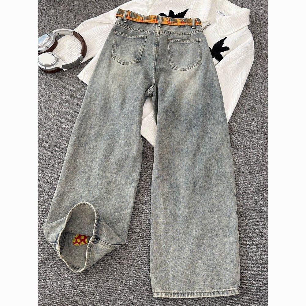 2026 봄 여름 새로운 아메리칸 레트로 워싱 마 오래된 질감 하이웨이스트 루즈핏 넓은 다리 7 점 청바지 여성 트렌디