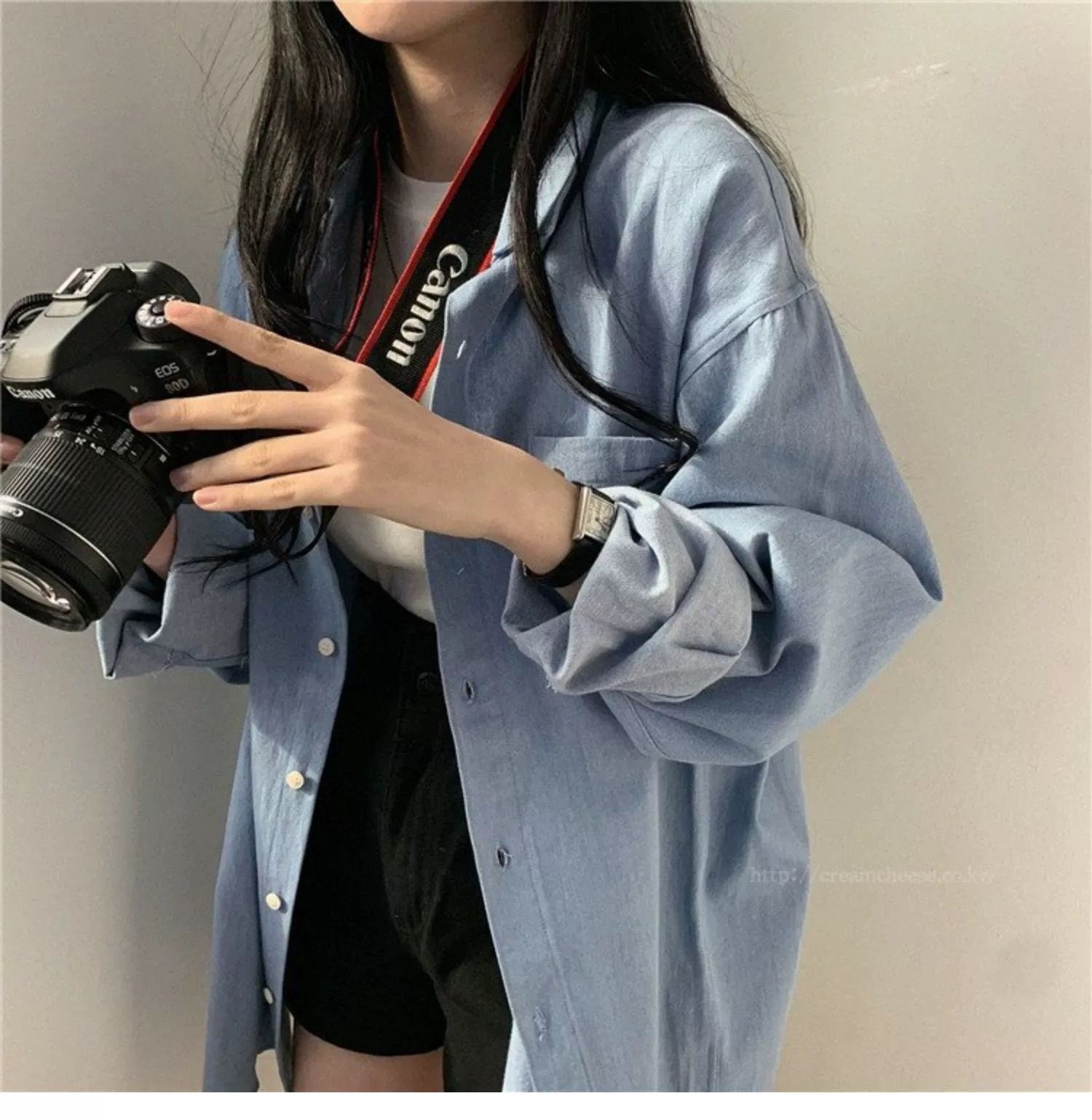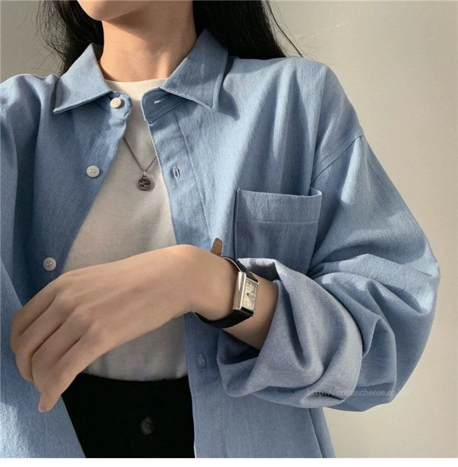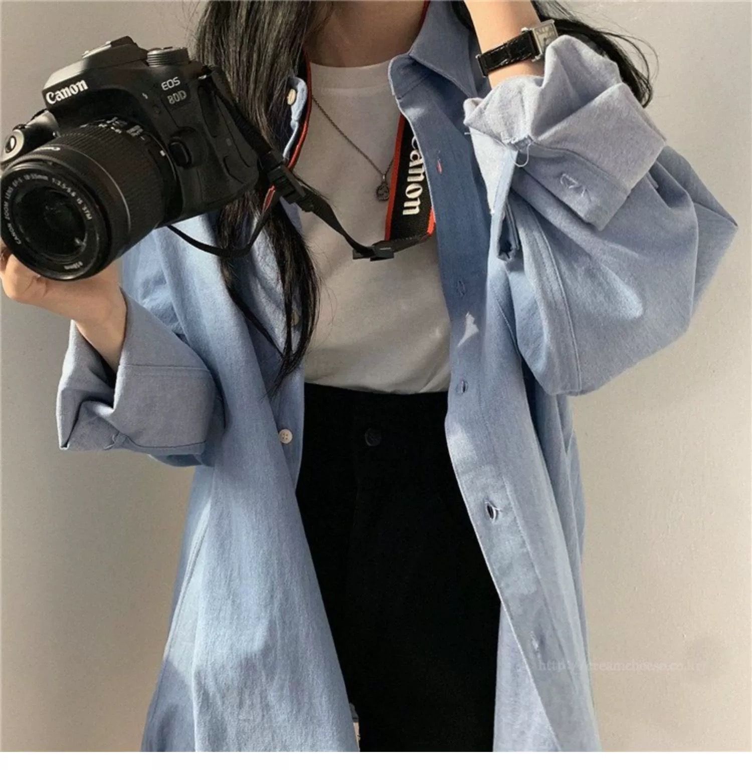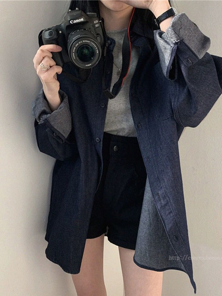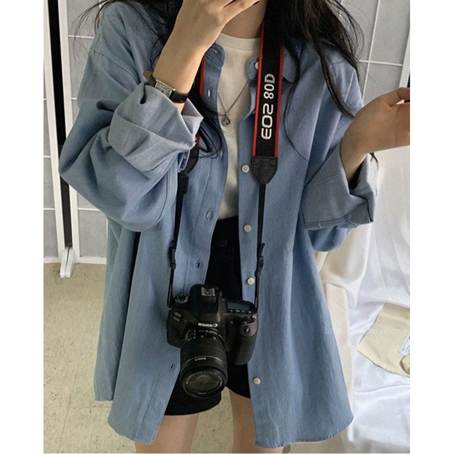한국 chic 가을 프랑스식 미니멀리즘 폴로 칼라 oversize 루즈핏 캐주얼 단색 다용도 긴팔 셔츠 맨위