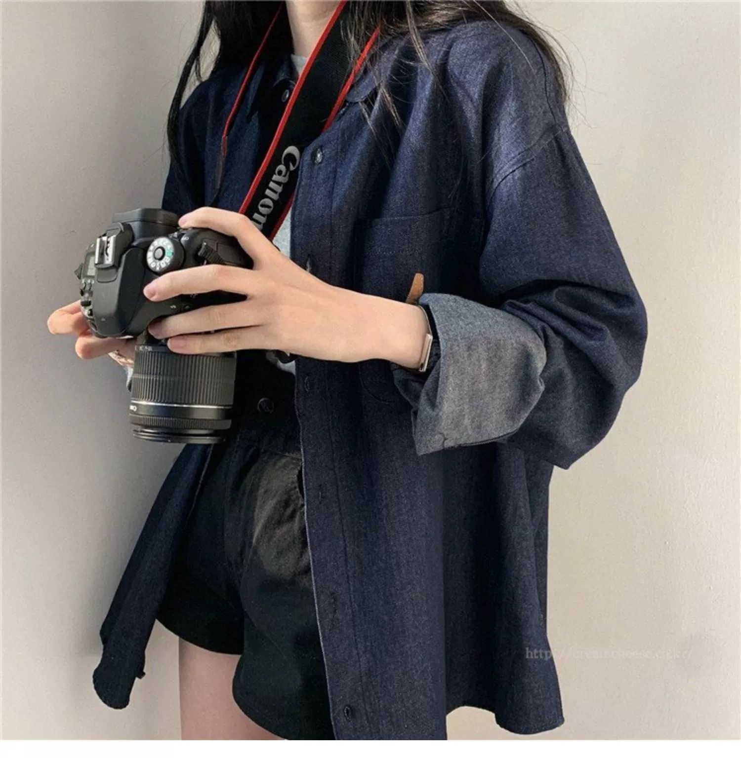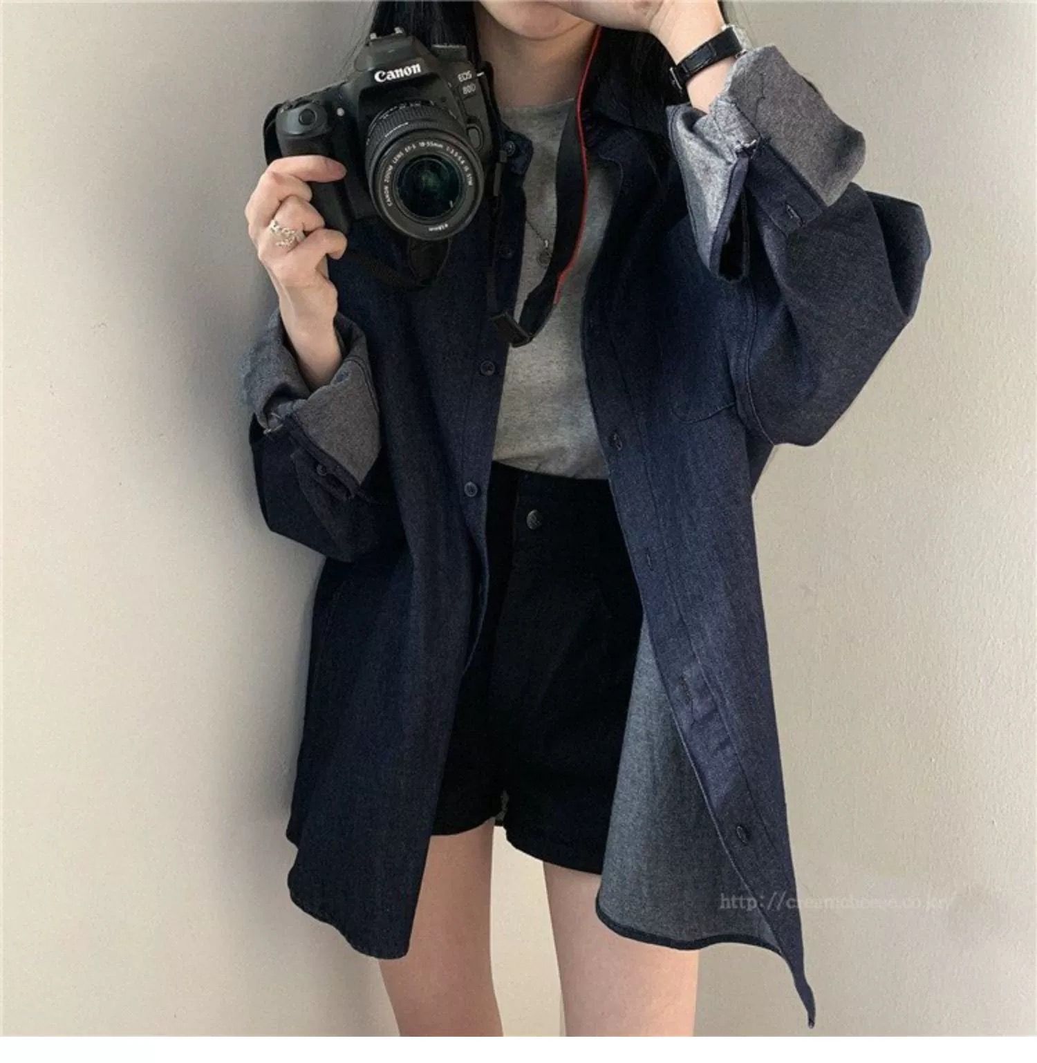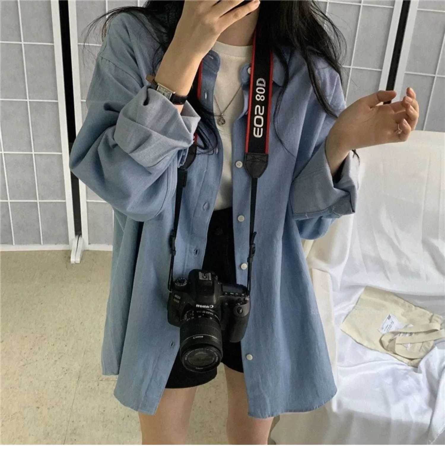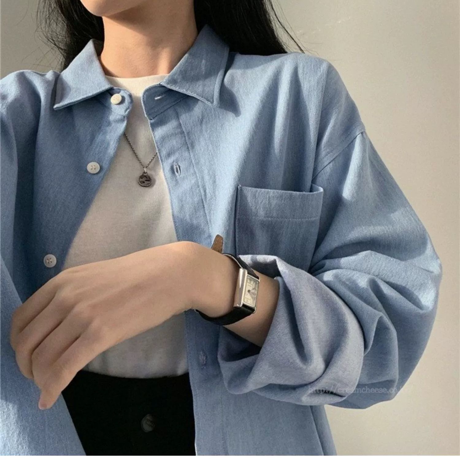 한국 chic 가을 프랑스식 미니멀리즘 폴로 칼라 oversize 루즈핏 캐주얼 단색 다용도 긴팔 셔츠 맨위