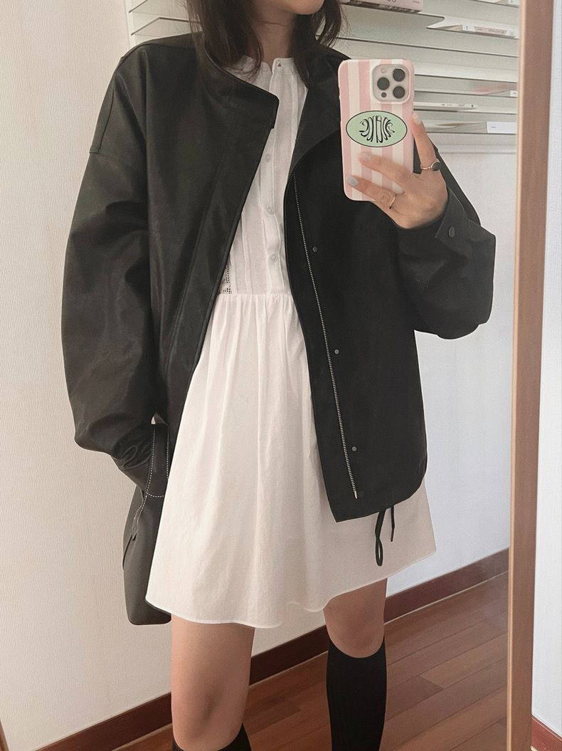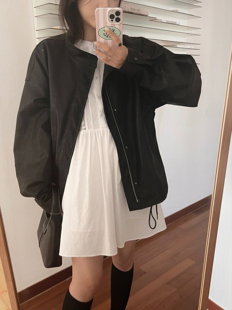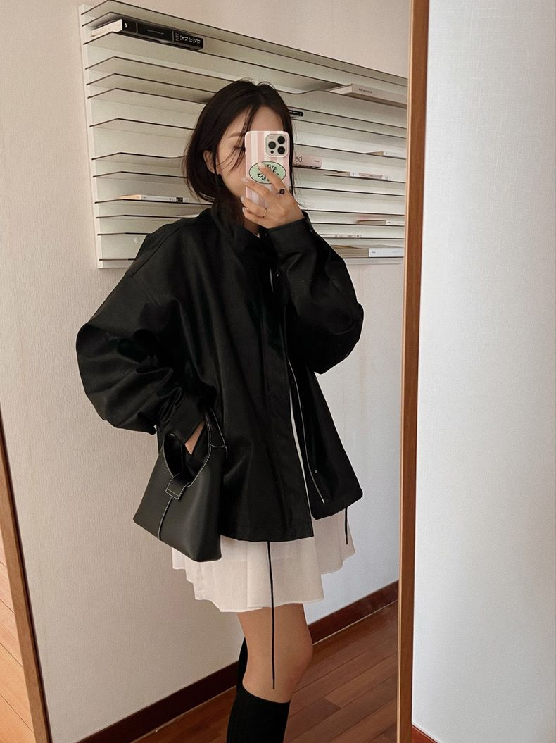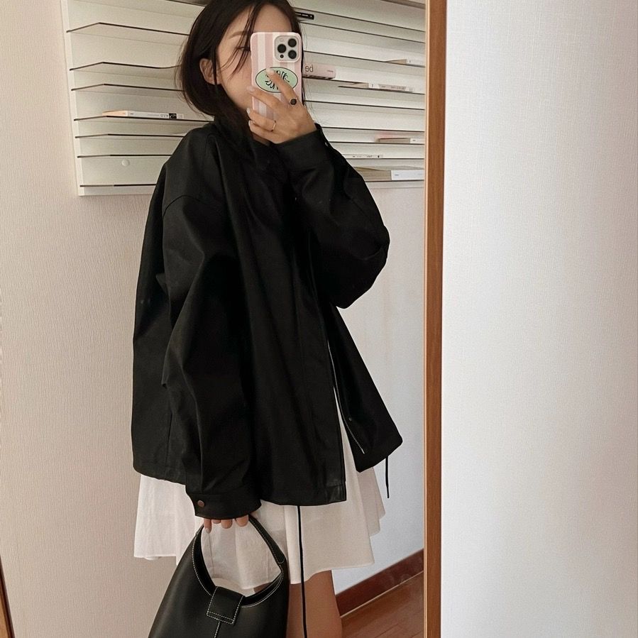 26 한국 chic 가을 레트로 항구 바람 스탠드 칼라 지퍼 디자인 루즈핏 캐주얼 다용도 긴팔 쇼트 스타일 여성 코트