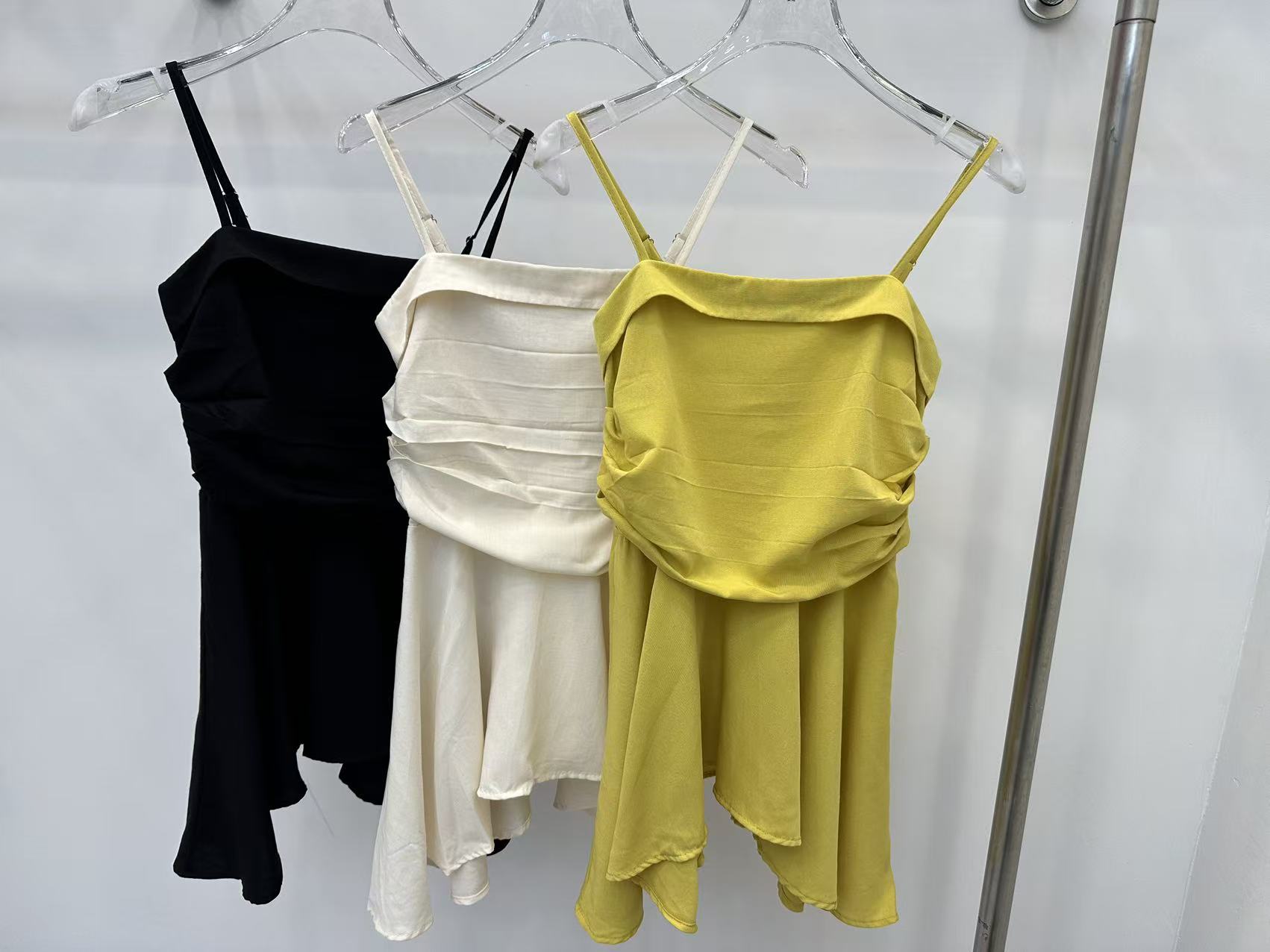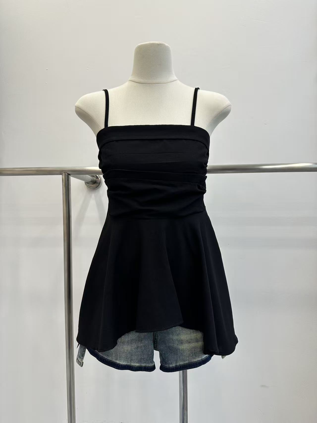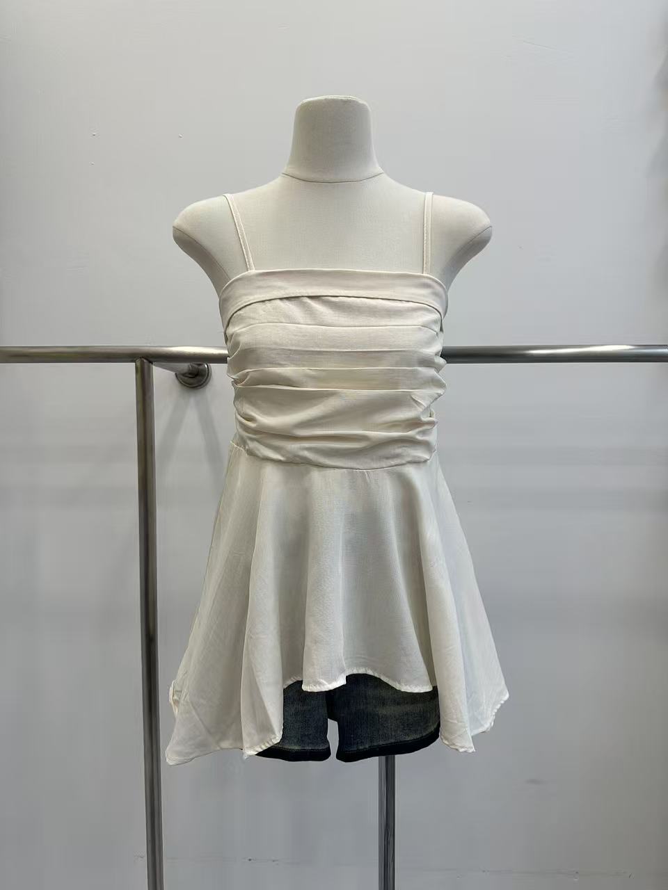 프랑스식 흔들다 칼라 페이크 레이어드 민소매 티셔츠 여성 여름 허리 수축 디자인 센스 작은 대중 스트랩 고급 센스 쇼트 스타일 맨위