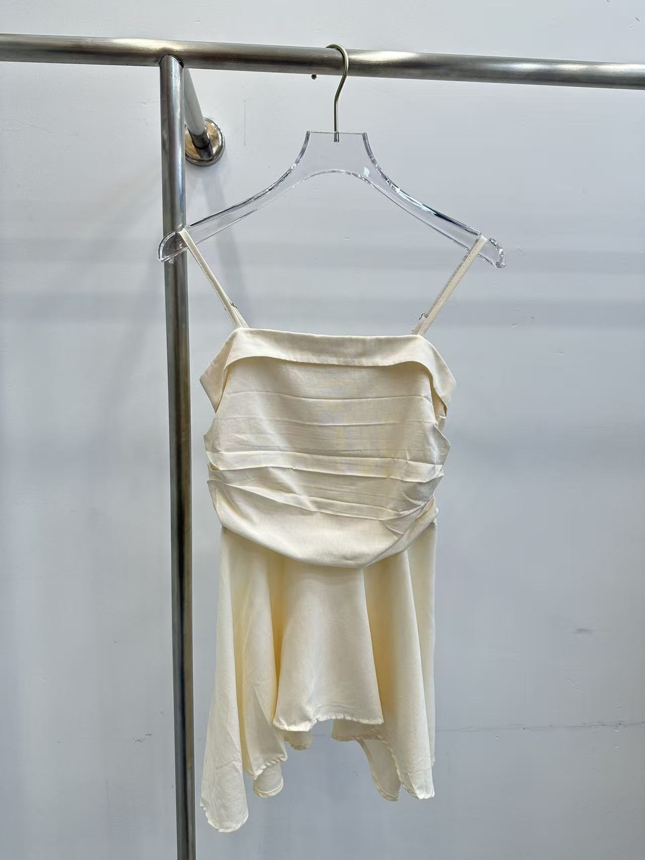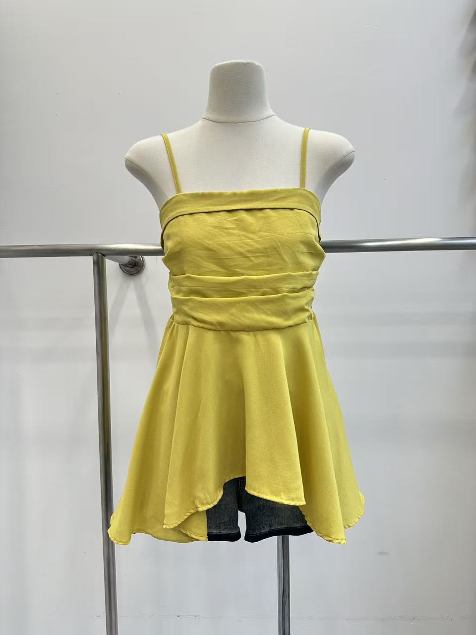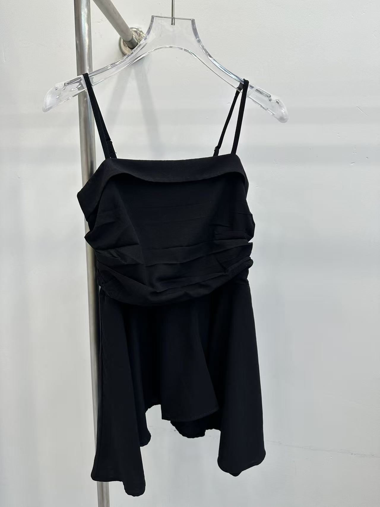 프랑스식 흔들다 칼라 페이크 레이어드 민소매 티셔츠 여성 여름 허리 수축 디자인 센스 작은 대중 스트랩 고급 센스 쇼트 스타일 맨위