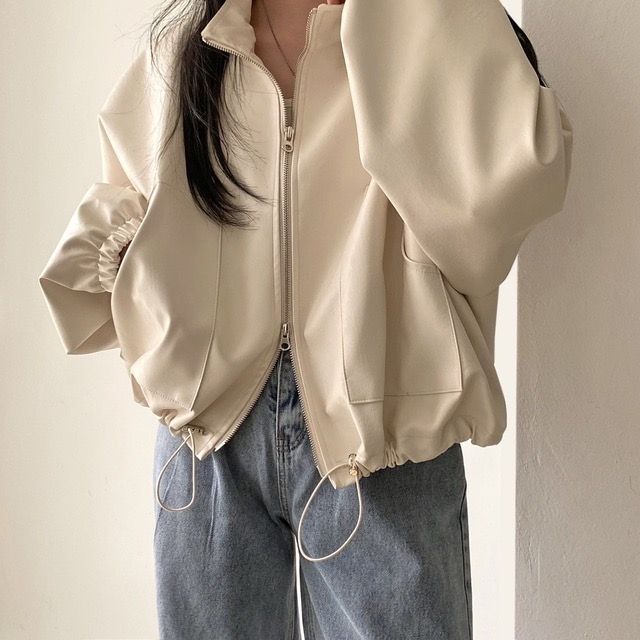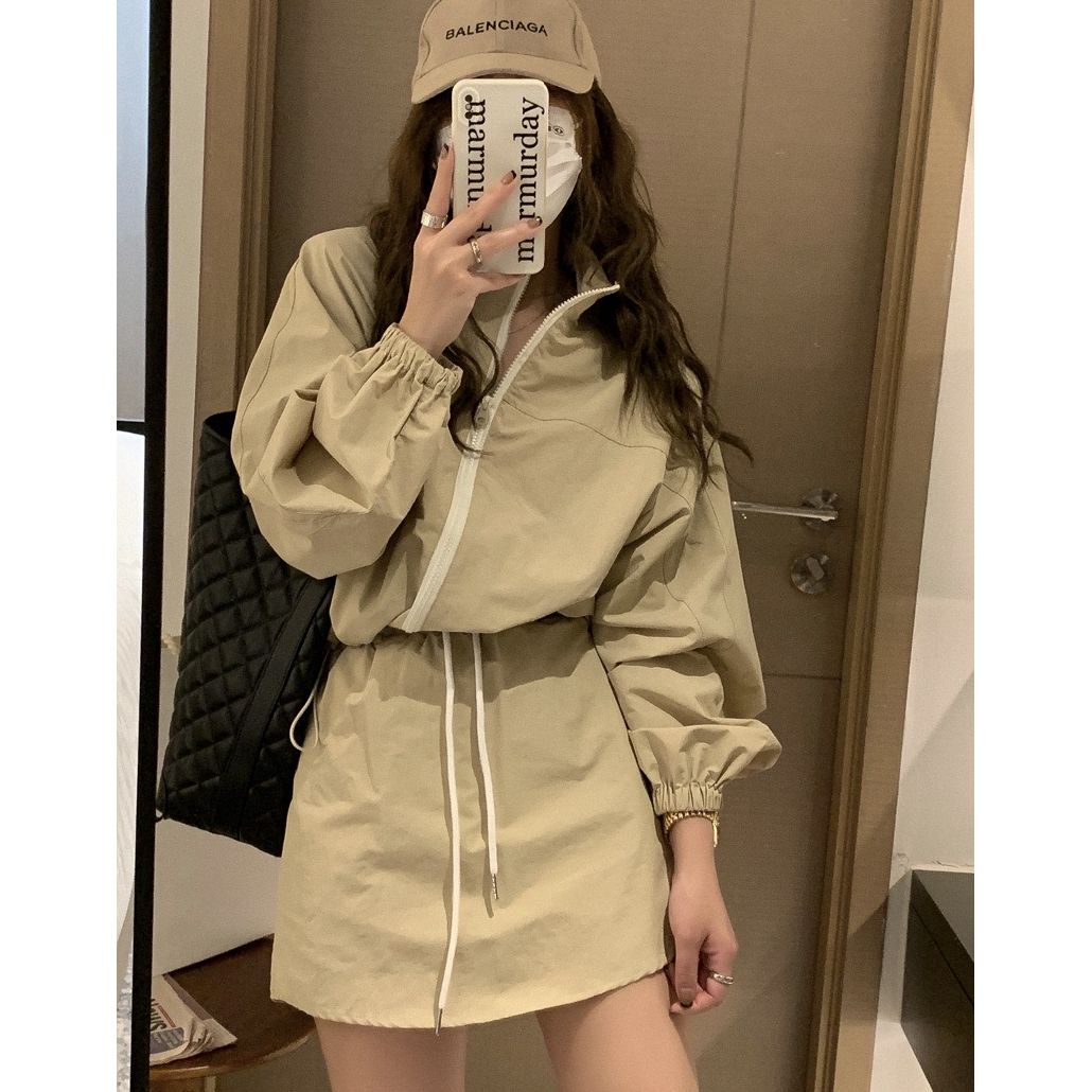 26 한국 chic 가을 레트로 항구 바람 스탠드 칼라 지퍼 디자인 루즈핏 캐주얼 다용도 긴팔 쇼트 스타일 여성 코트