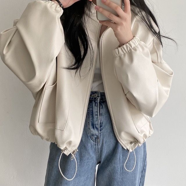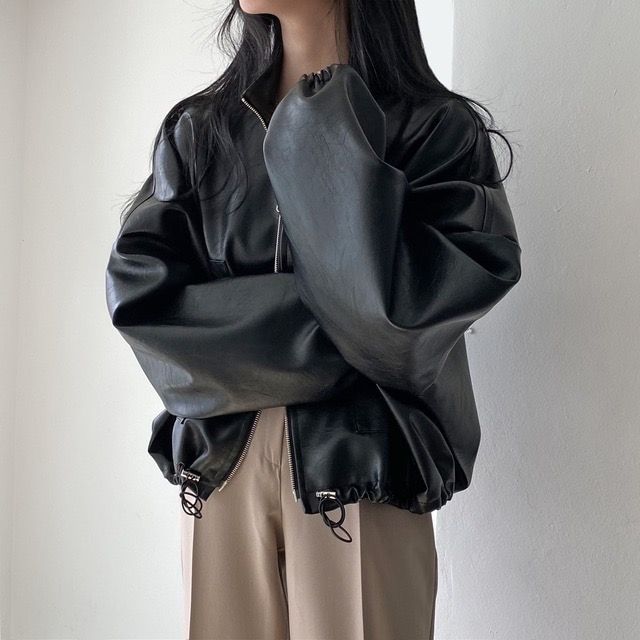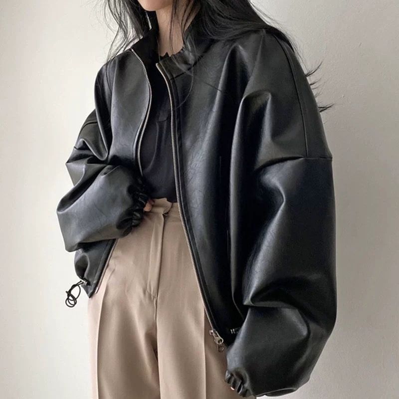 2026 새로운 봄 지퍼 폴로 칼라 pu 모조 가죽 외투 여성 짧은 루즈핏 슬림해 보이는 아메리칸 레트로 오토바이 서비스