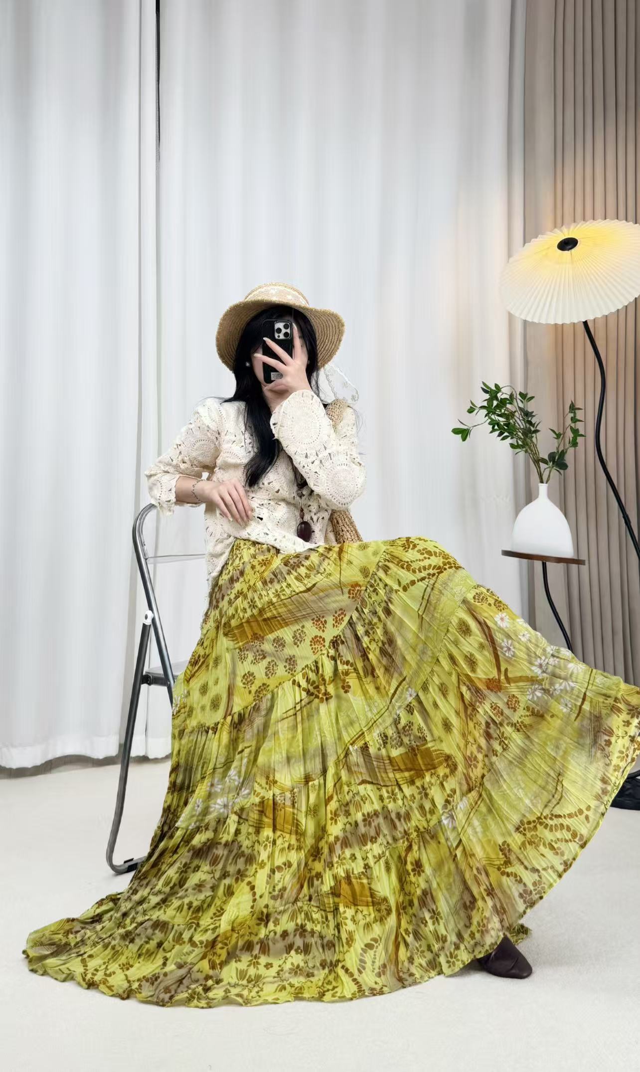 작은 대중 레트로 꽃무늬 반신 스커트 여성 2025 여름 휴가 해변 롱 스커트 슈퍼 요정 품격 쉬폰 빅 플레어 스커트 트렌디