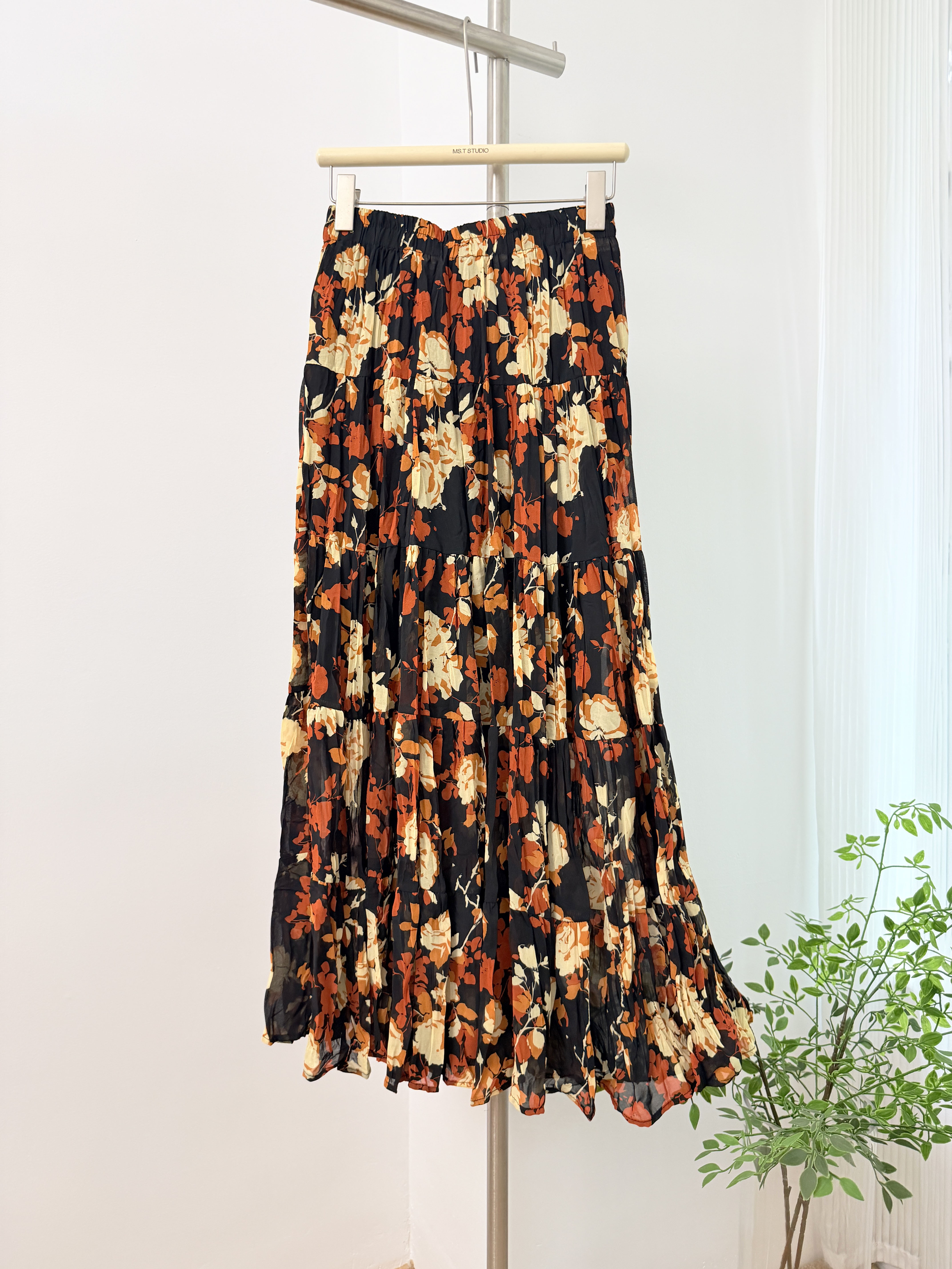 부드러운 바람 꽃무늬 쉬폰 반신 스커트 여성 2026 여름 새로운 다용도 도루 센스 큰 진자 롱 스커트 하이웨이스트 A라인 스커트