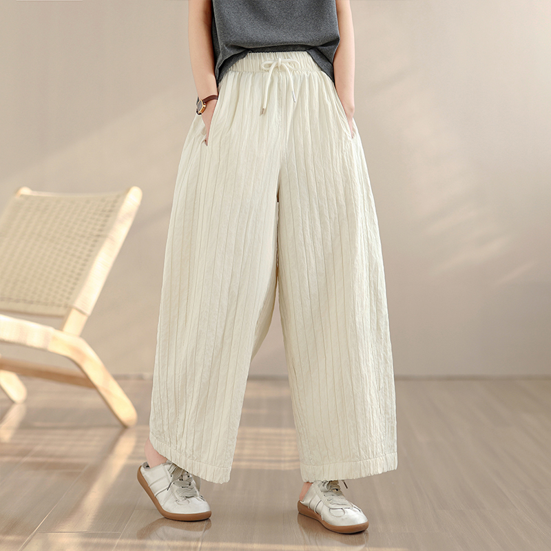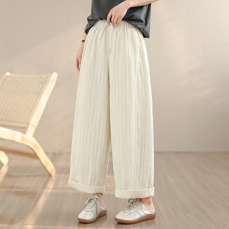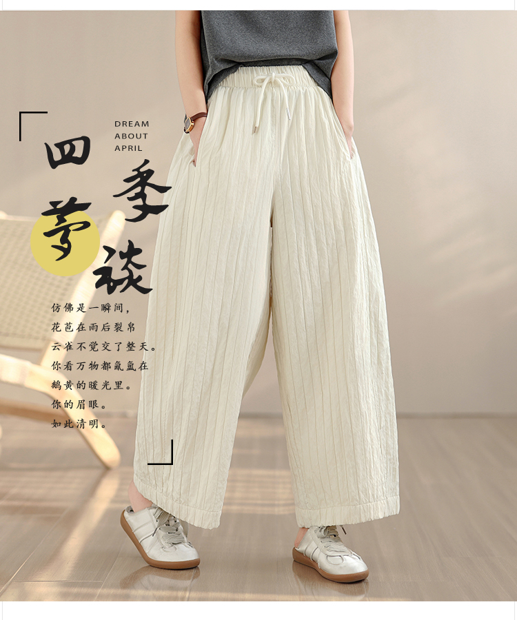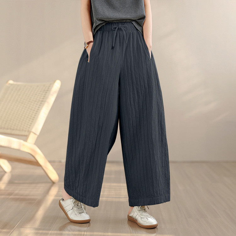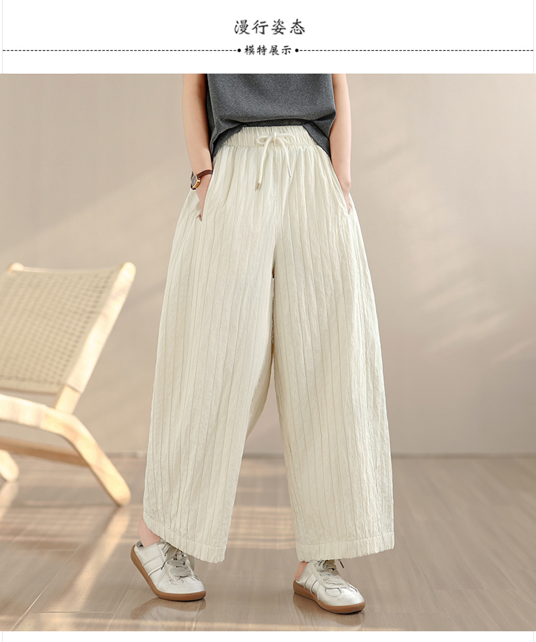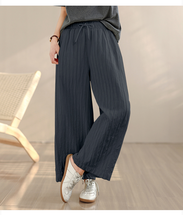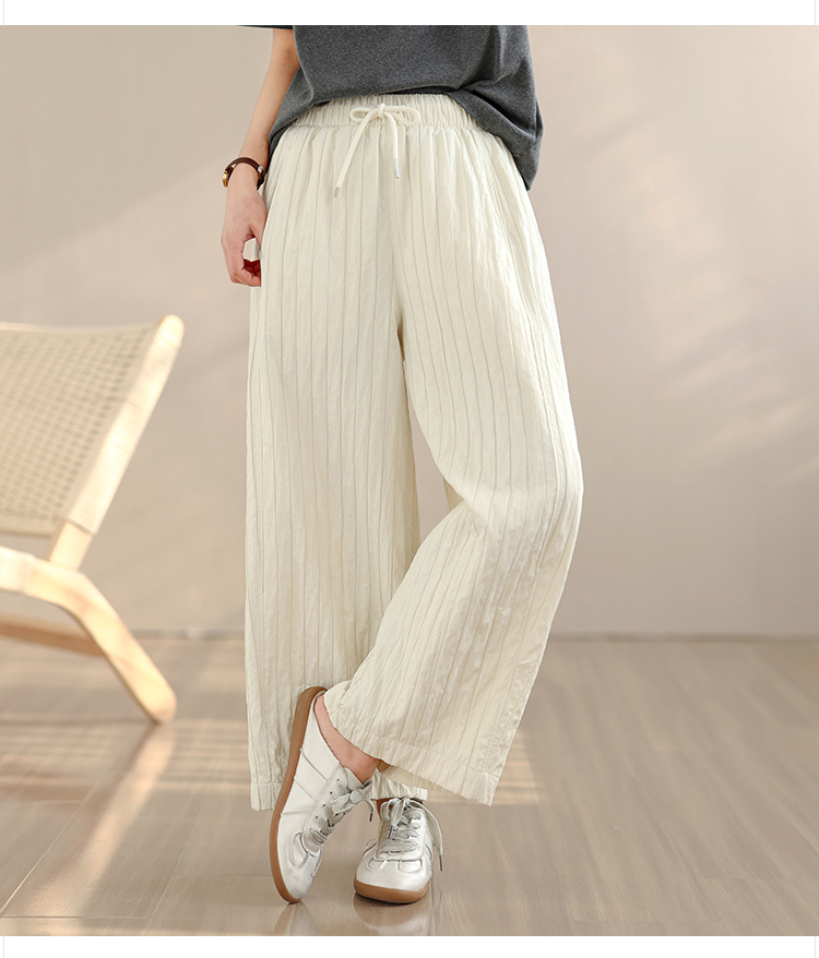 고급 센스 스트라이프 8 점 와이드 레깅스 바지 새로운 봄 여름 루즈핏 슬림해 보이는 캐주얼 다용도 스트레이트 웨이 바지