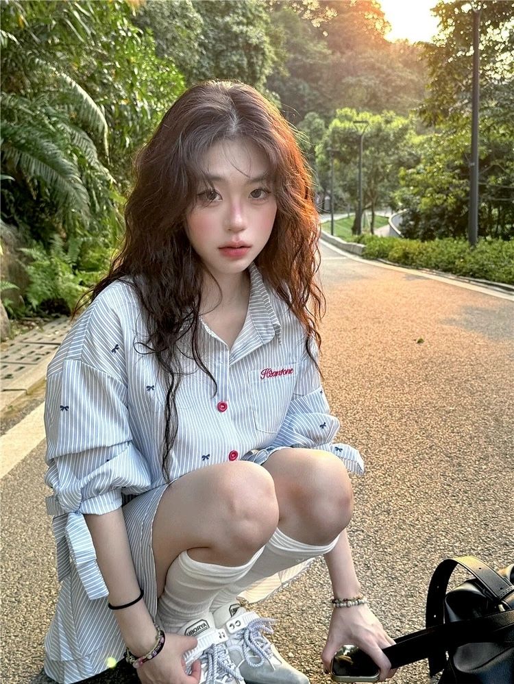 광저우 스트라이프 원단 오프숄더 긴팔 티셔츠 여성 루즈핏 행침 목 기본 셔츠 맨위