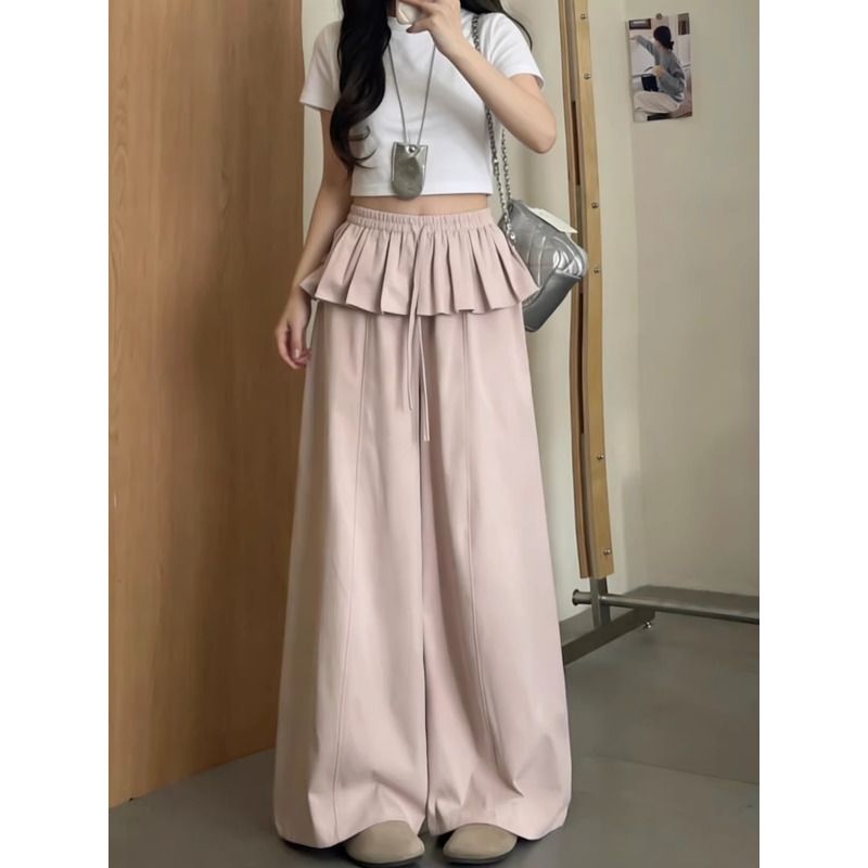 빅 사이즈 플리츠 방귀 커튼 와이드 레깅스 바지 300 근 지방 mm 봄 여름 새로운 슬림해 보이는 스트레이트 팬츠 페이크 레이어드 바지