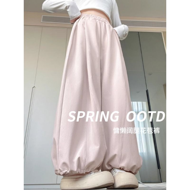 빅 사이즈 느긋한 바람 넓은 다리 꽃밭 바지 여성 200 kg 지방 mm 봄 여름 풍선 바지 도루 센스 슬림해 보이는 9 포인트 배기 바지