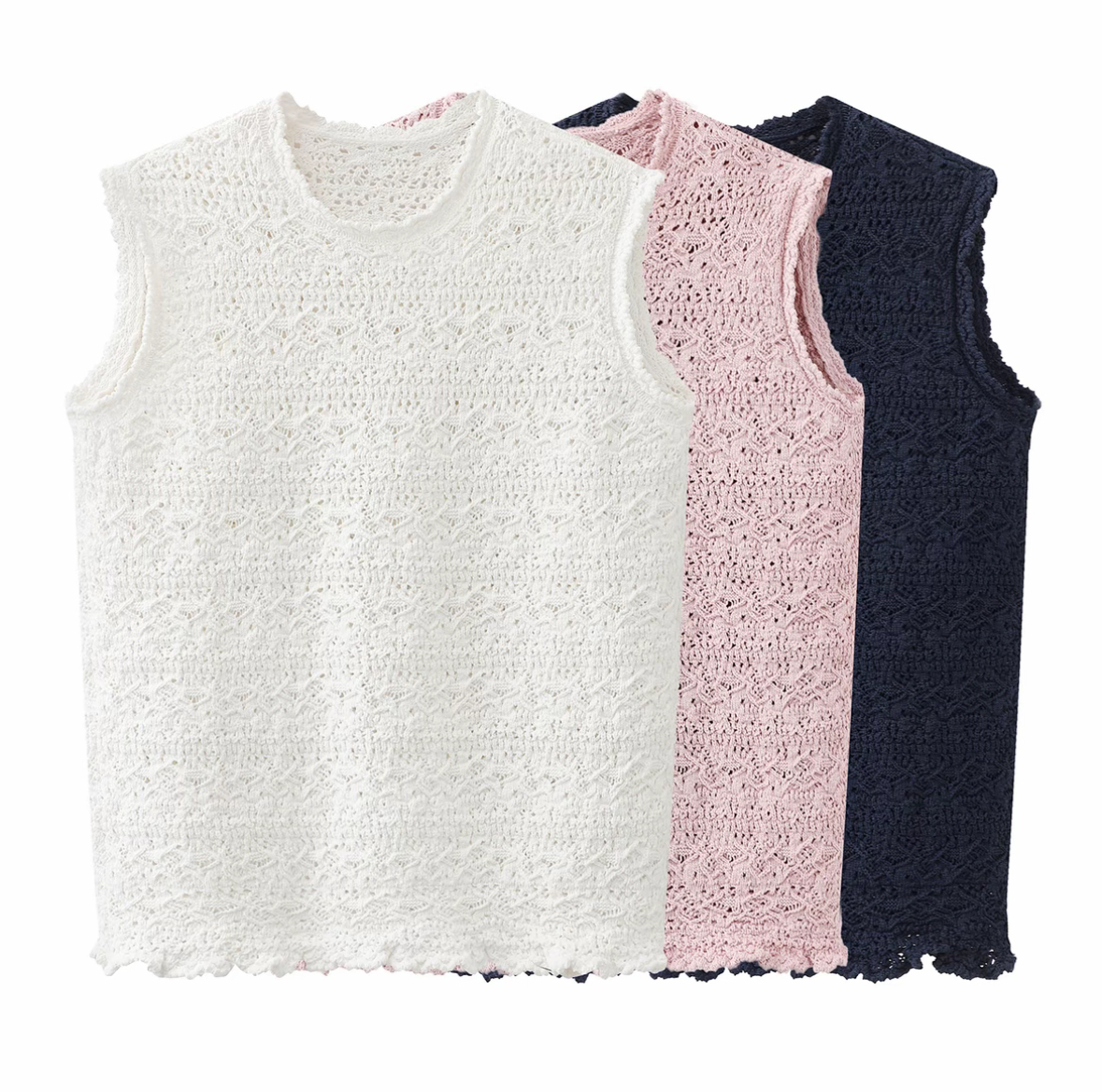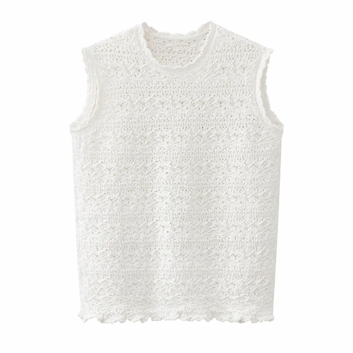 봄 단색 얇은 스타일 자수 홀로우 아웃 조끼 여자 2026 새로운 패션 캐주얼 느긋한 다용도 캐미솔