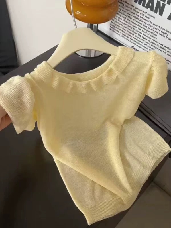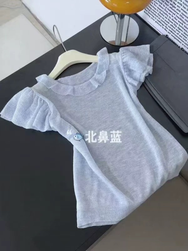 프랑스식 달콤함 프릴 Feifei 소매 라운드 넥 반팔 작은 셔츠 신제품 여성 의류 여름 루즈핏 얇은 스타일 다용도 맨위