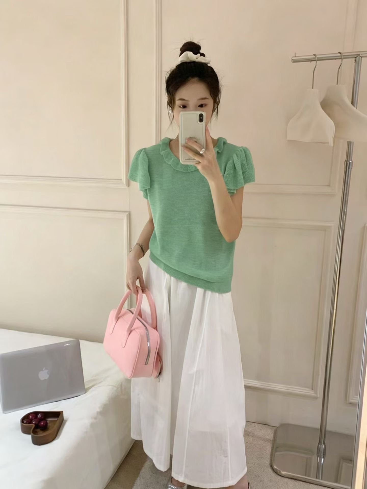 한 부서 착용 가져 가라. 반팔 니트 스웨터 여성 2026 새로운 여름 얇은 스타일 작은 셔츠 패션 슬림해 보이는 표지 고기 품격 맨위