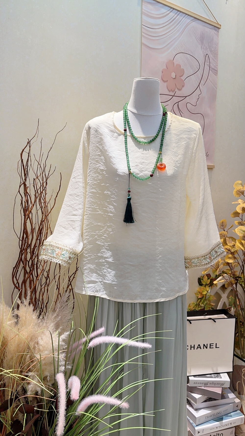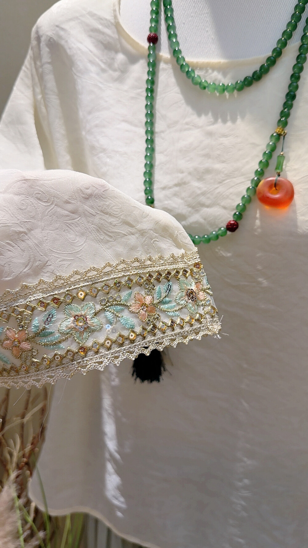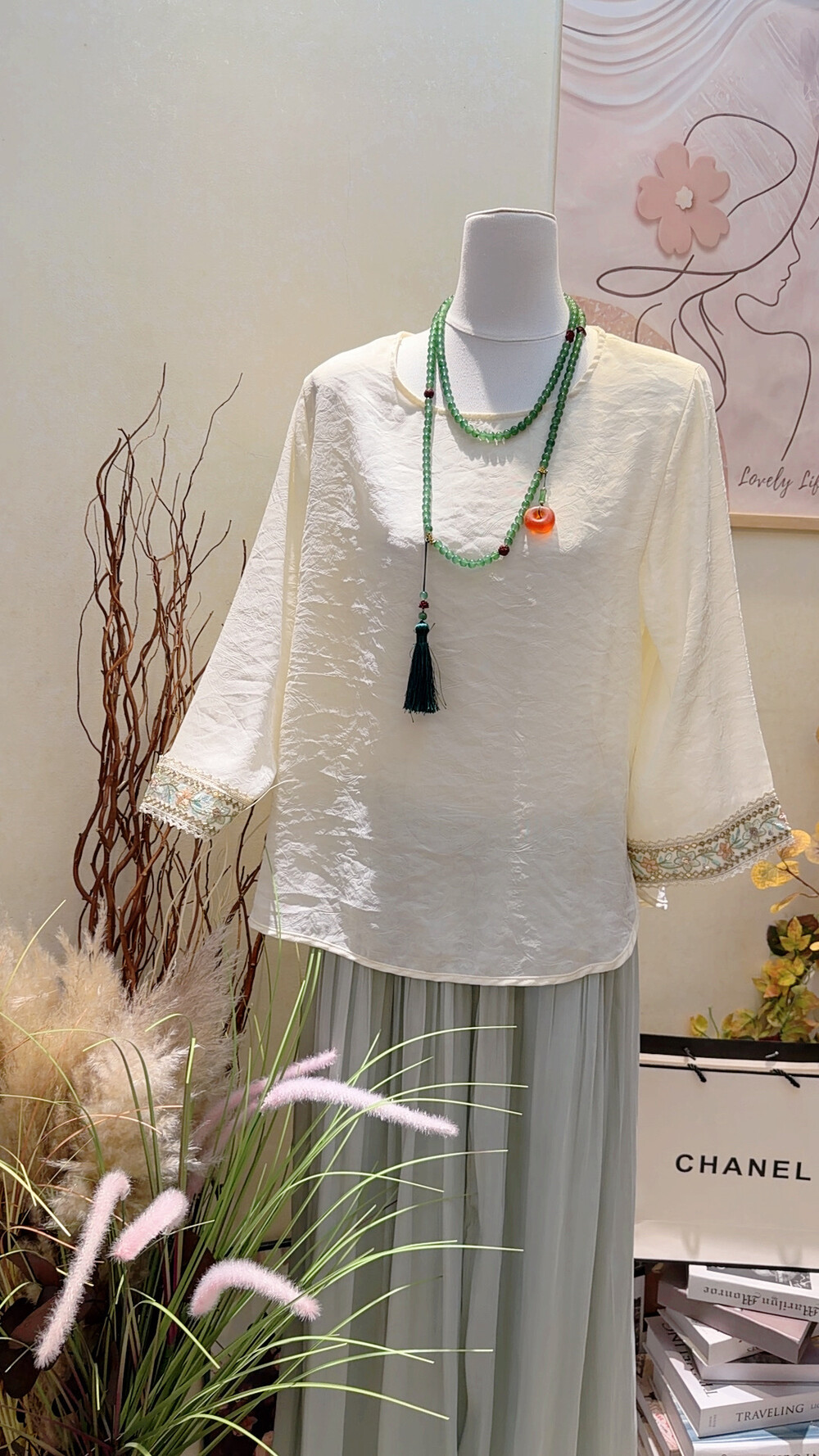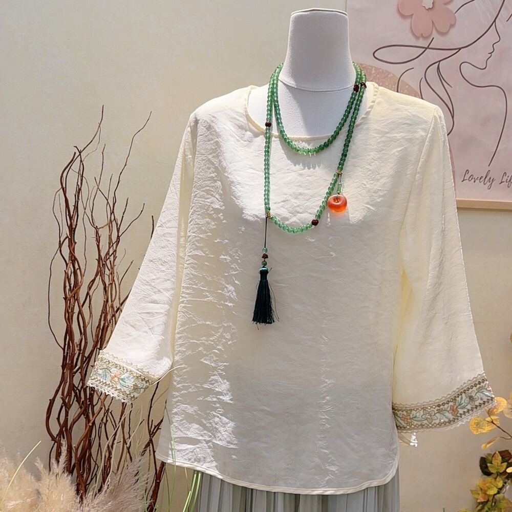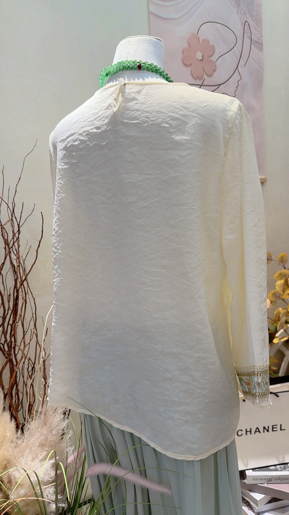 새로운 중식 국풍 실크 공단 셔츠 봄 드레스 새로운 2026 고귀한 레이스 외국 가스 아세트산 작은 셔츠 맨위
