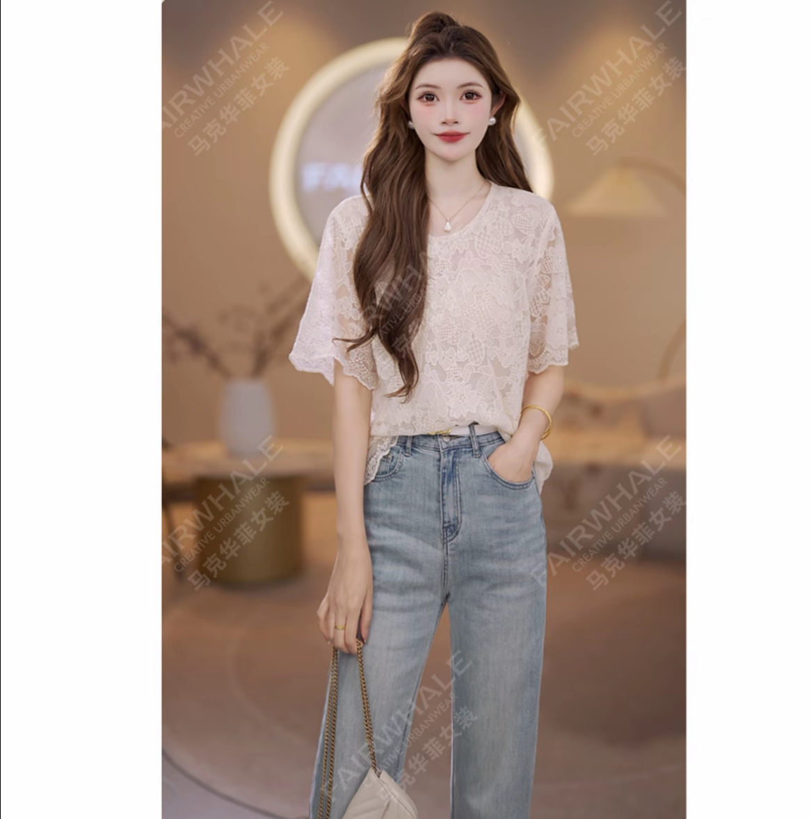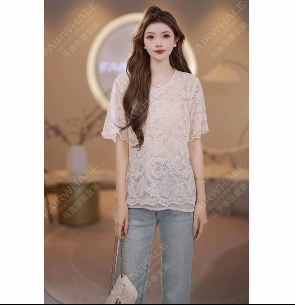 2026 여름 새로운 디자인 센스 작은 대중 패션 품격 여성 V넥 반팔 티셔츠 다용도 작은 레이스 치마
