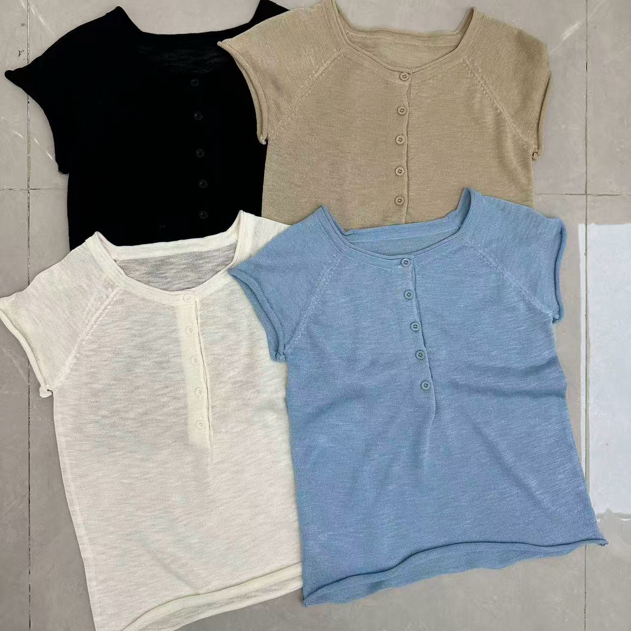 한 부서 느긋한 바람 하프 버클 니트 반팔 여성 2026 봄 새로운 몸매 가꾸기 슬림해 보이는 작은 키 풀오버 맨위 트렌디