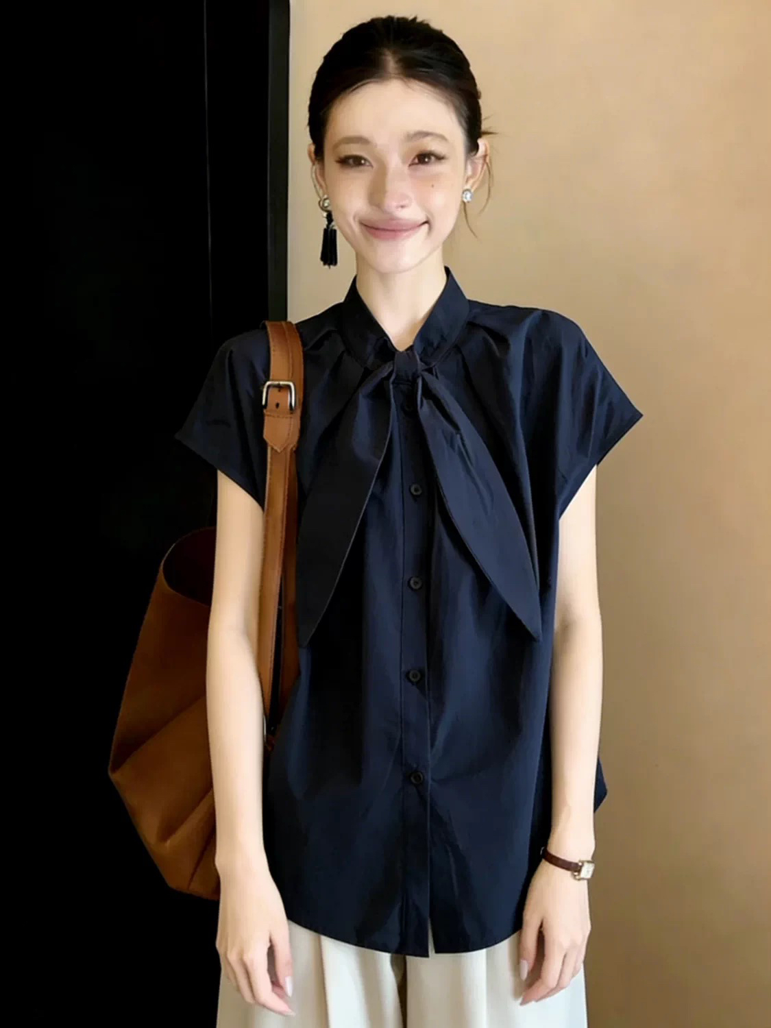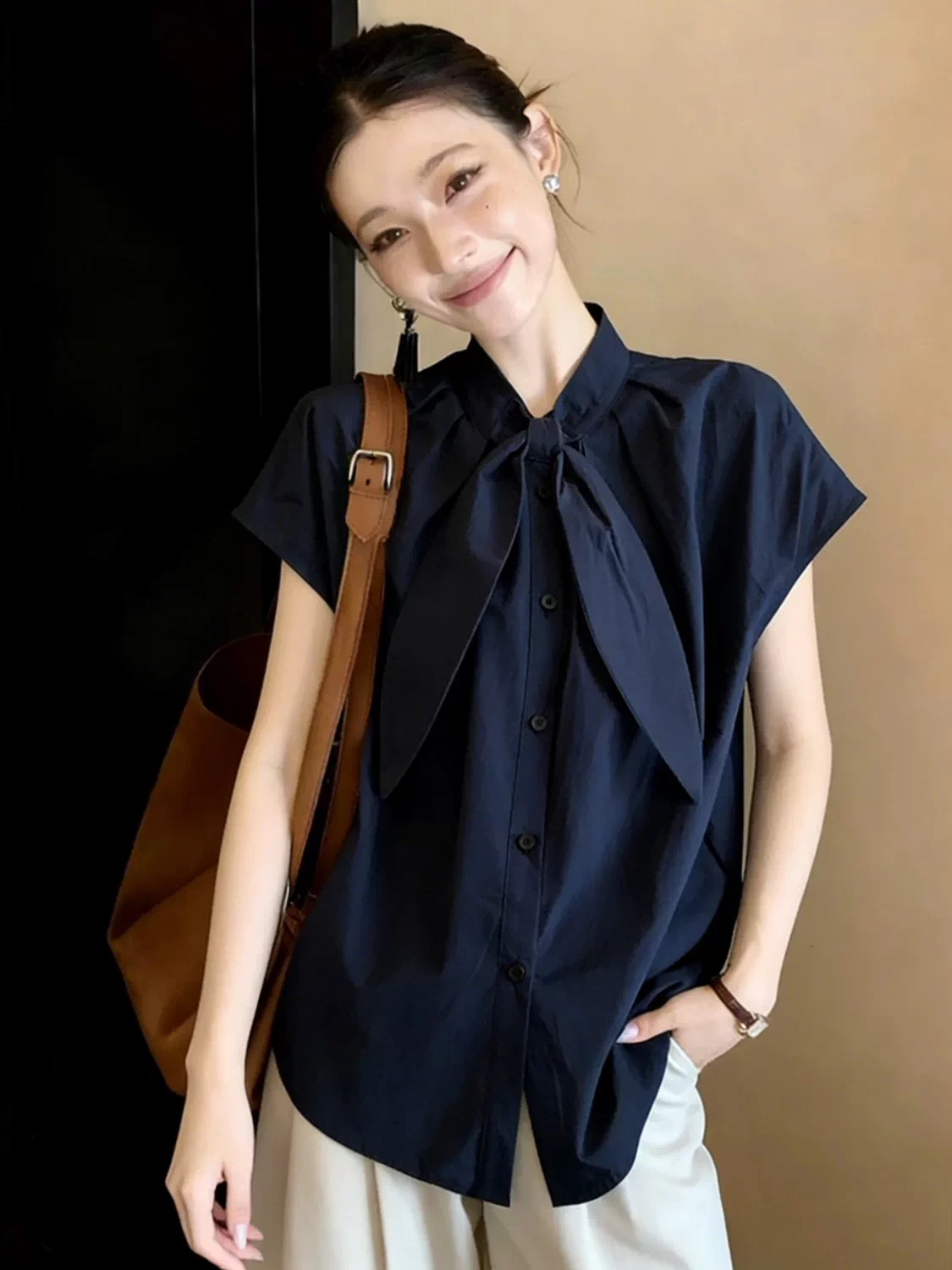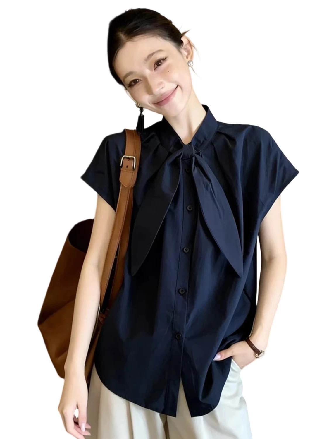 디자인 센스 순면 셔츠 여성용 짧은 소매 2026 여름 폭발 루즈핏 캐주얼 품격 슈퍼 화재 5 점 소매 맨위 얇은