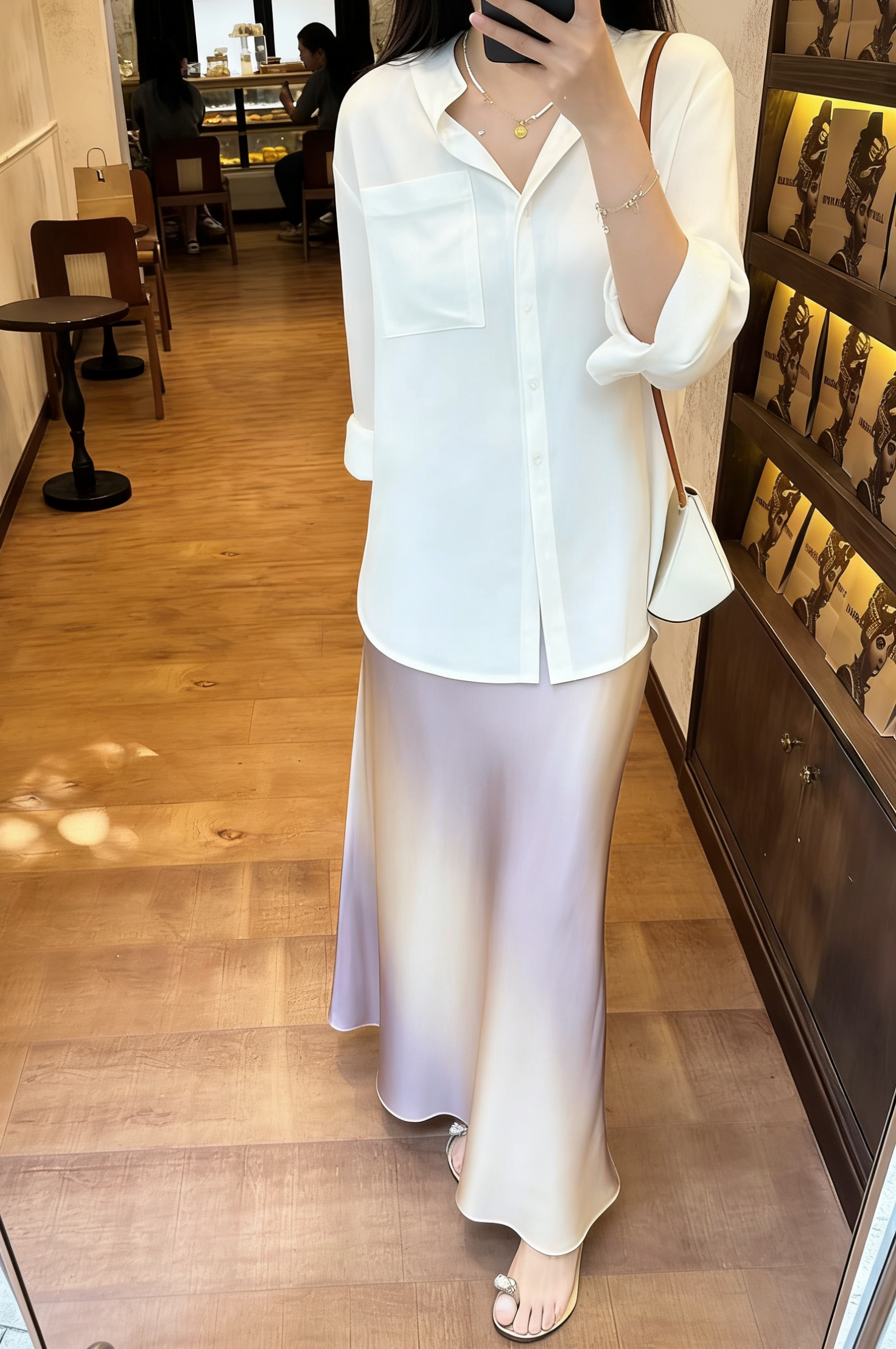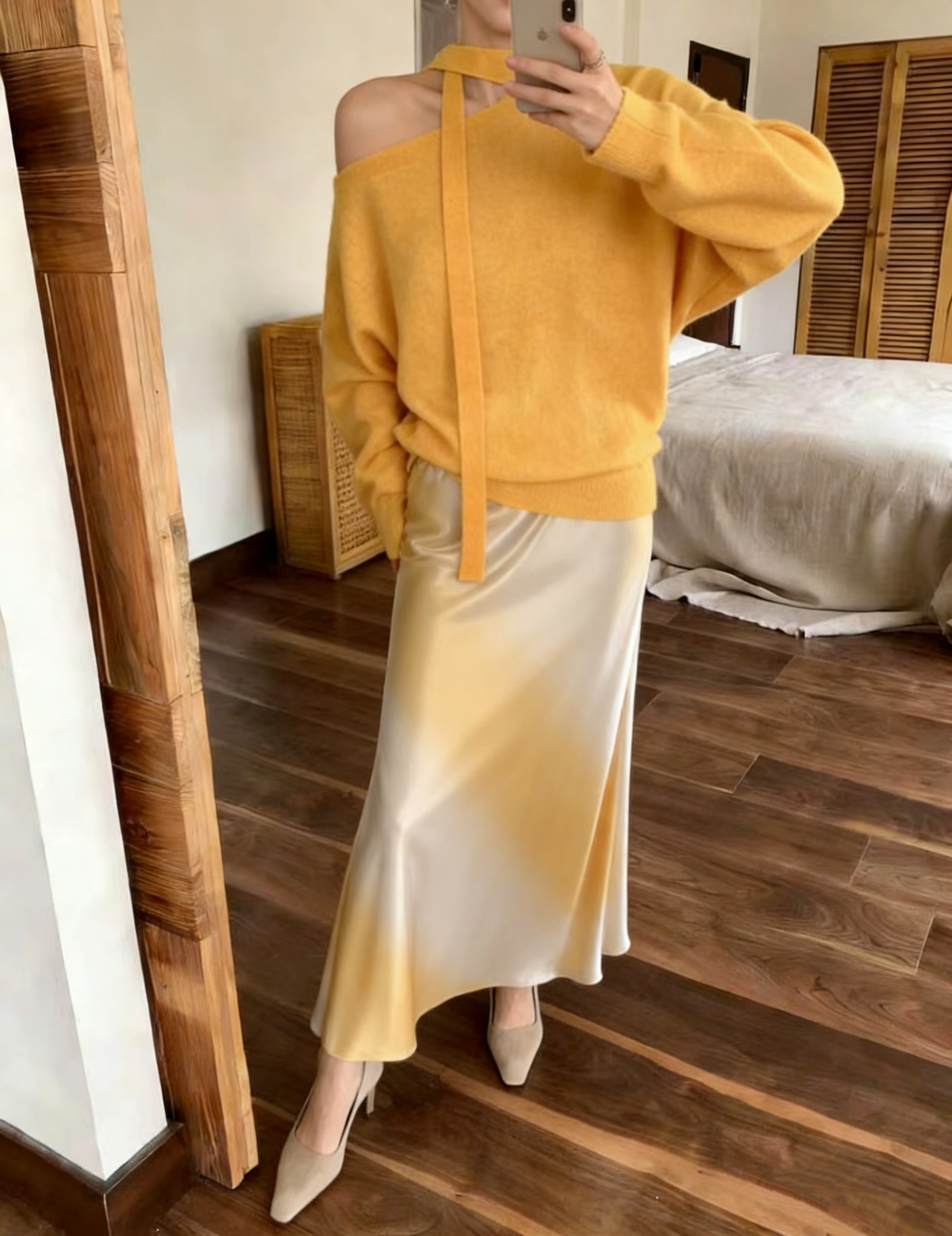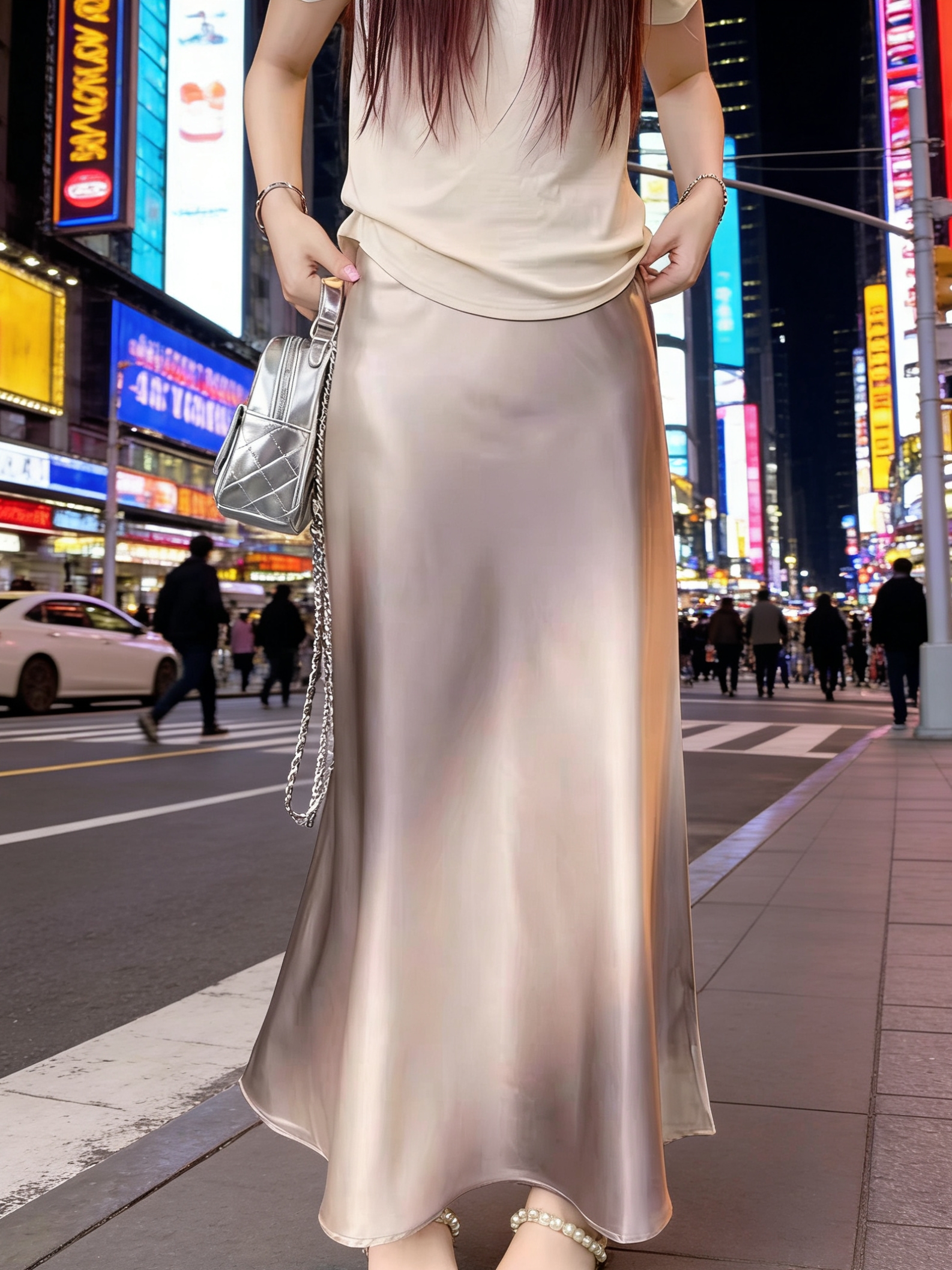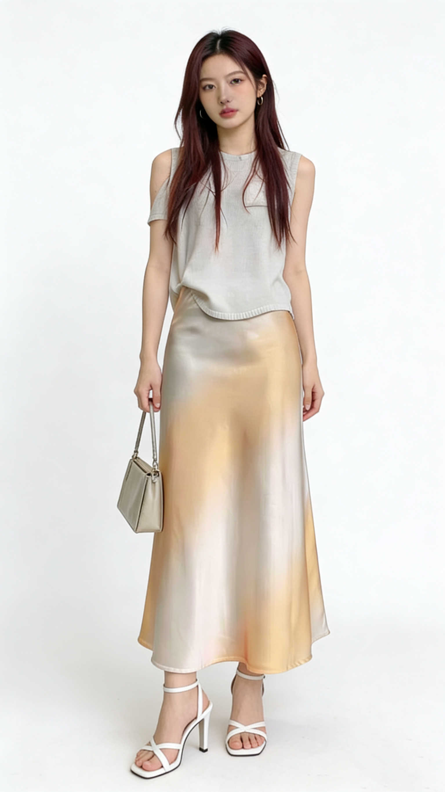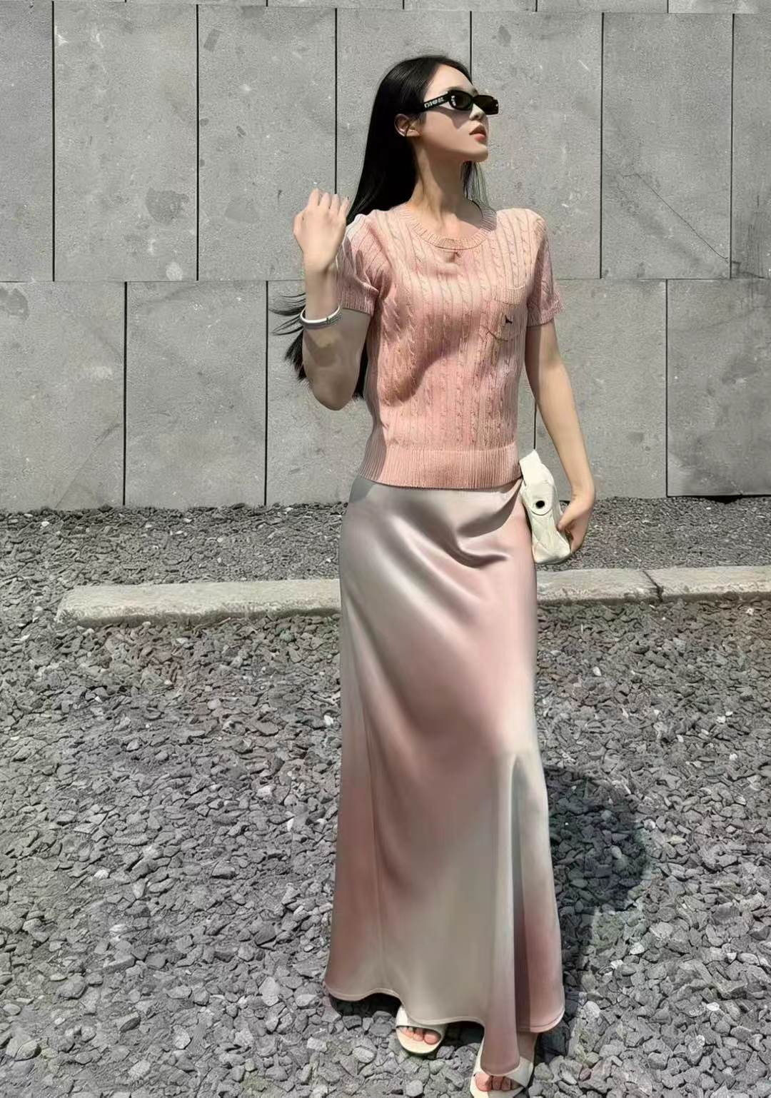 26 봄 여름 켜기 새로운 우아함 품격 새틴 점차적으로 숱이 플래시 광택 도루 가을 센스 슬림해 보이는 한 마디 중간 길이 반신 스커트 여성
