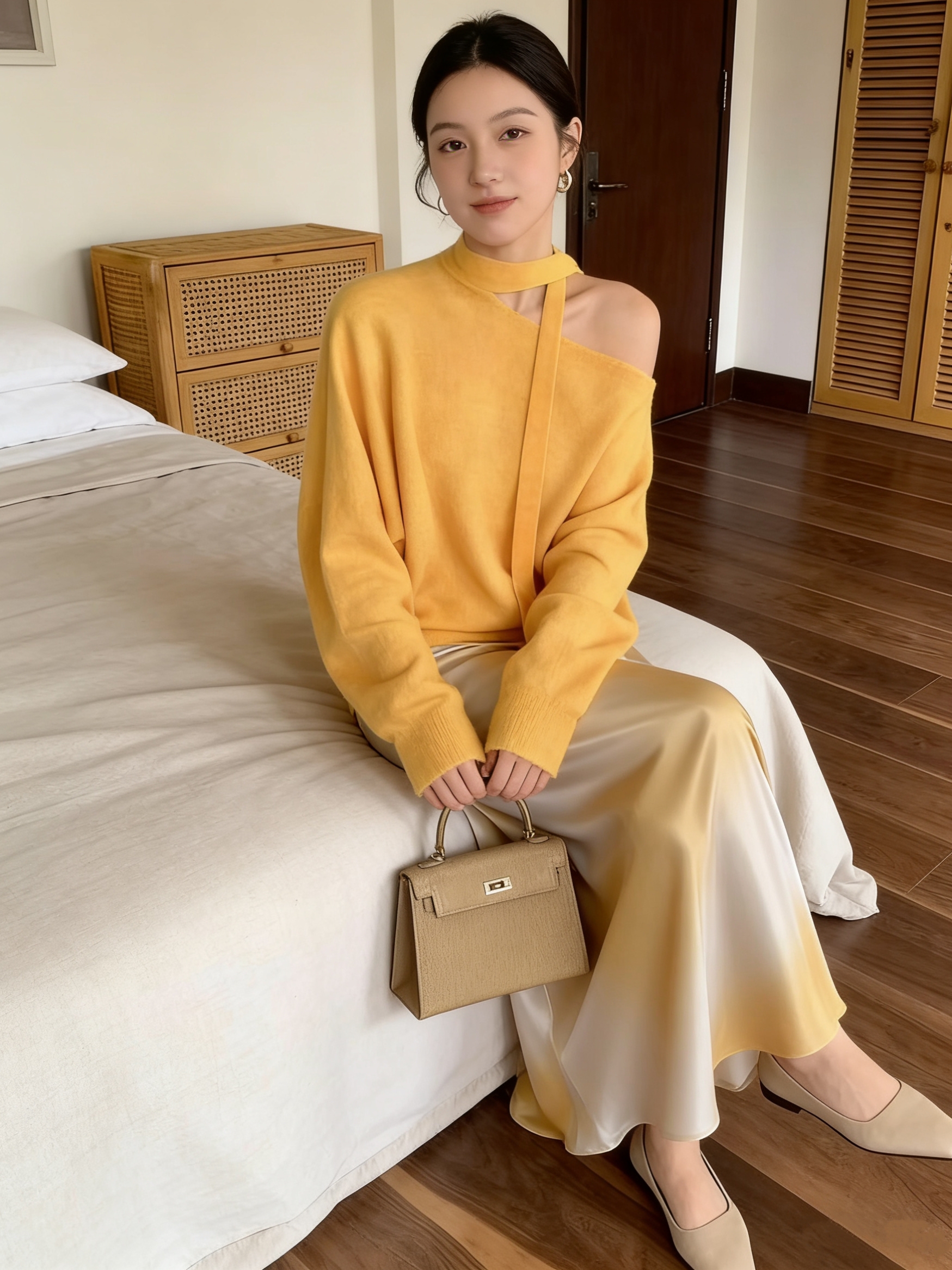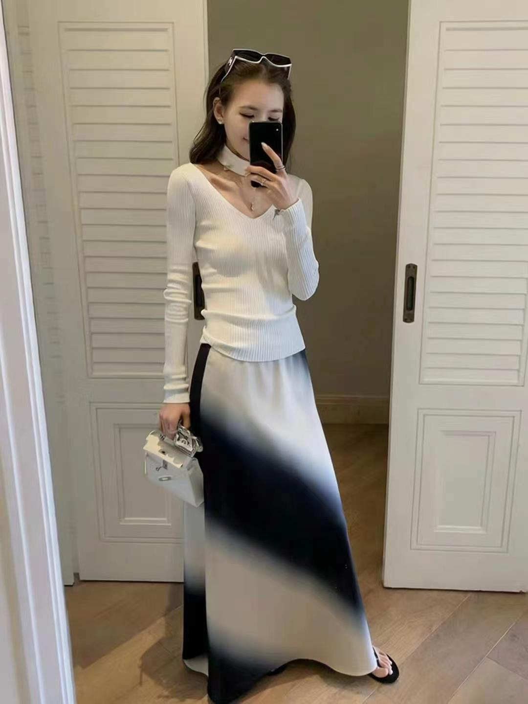 2026 년 봄 출퇴근 바람 새틴 도트 무늬 반신 스커트 여성 몸매 가꾸기 슬림해 보이는 한 마디 싸움 거즈 스커트 다용도 캐주얼 치마